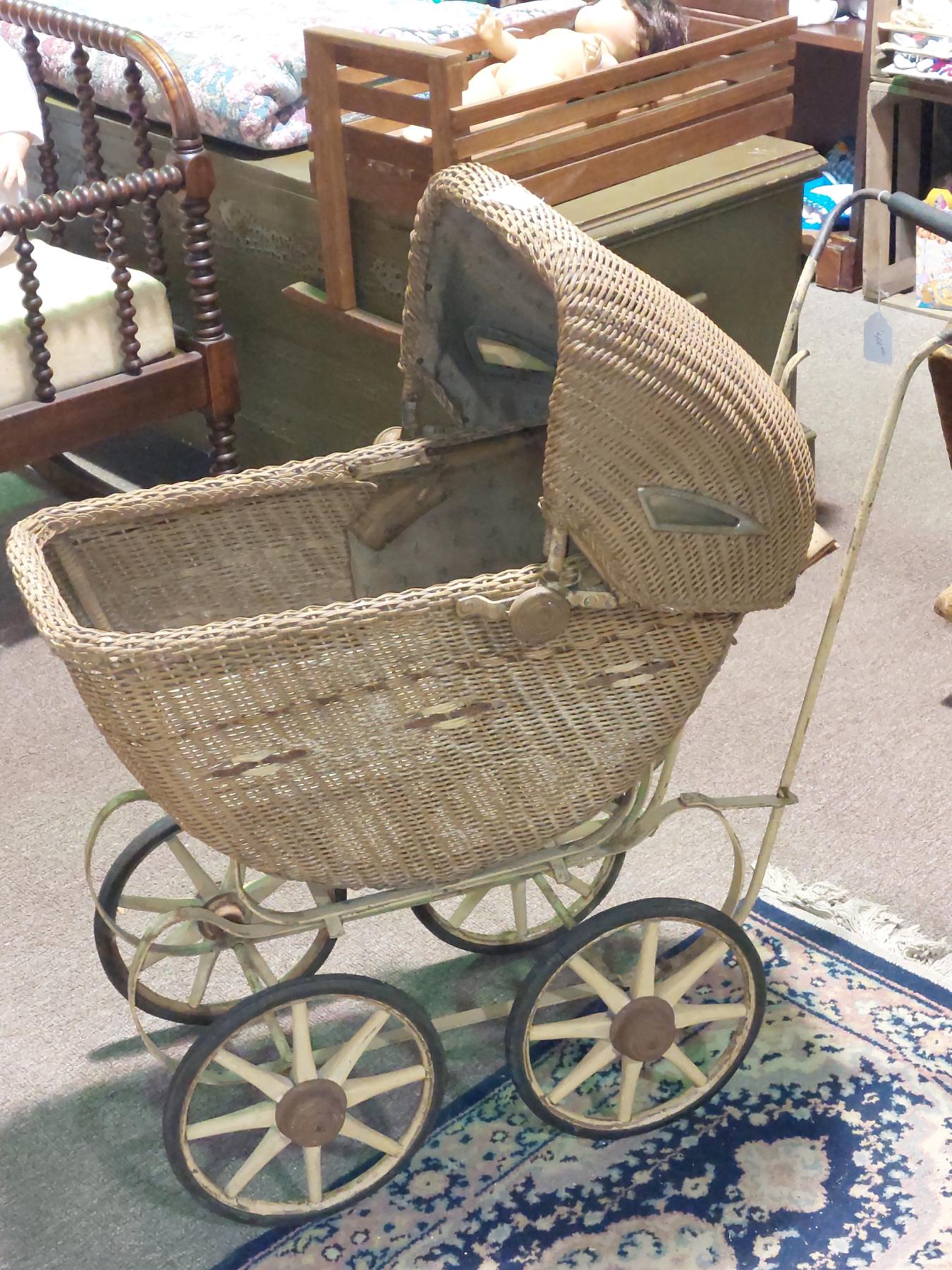 Antique Wicker Baby Carriage - Full Size
