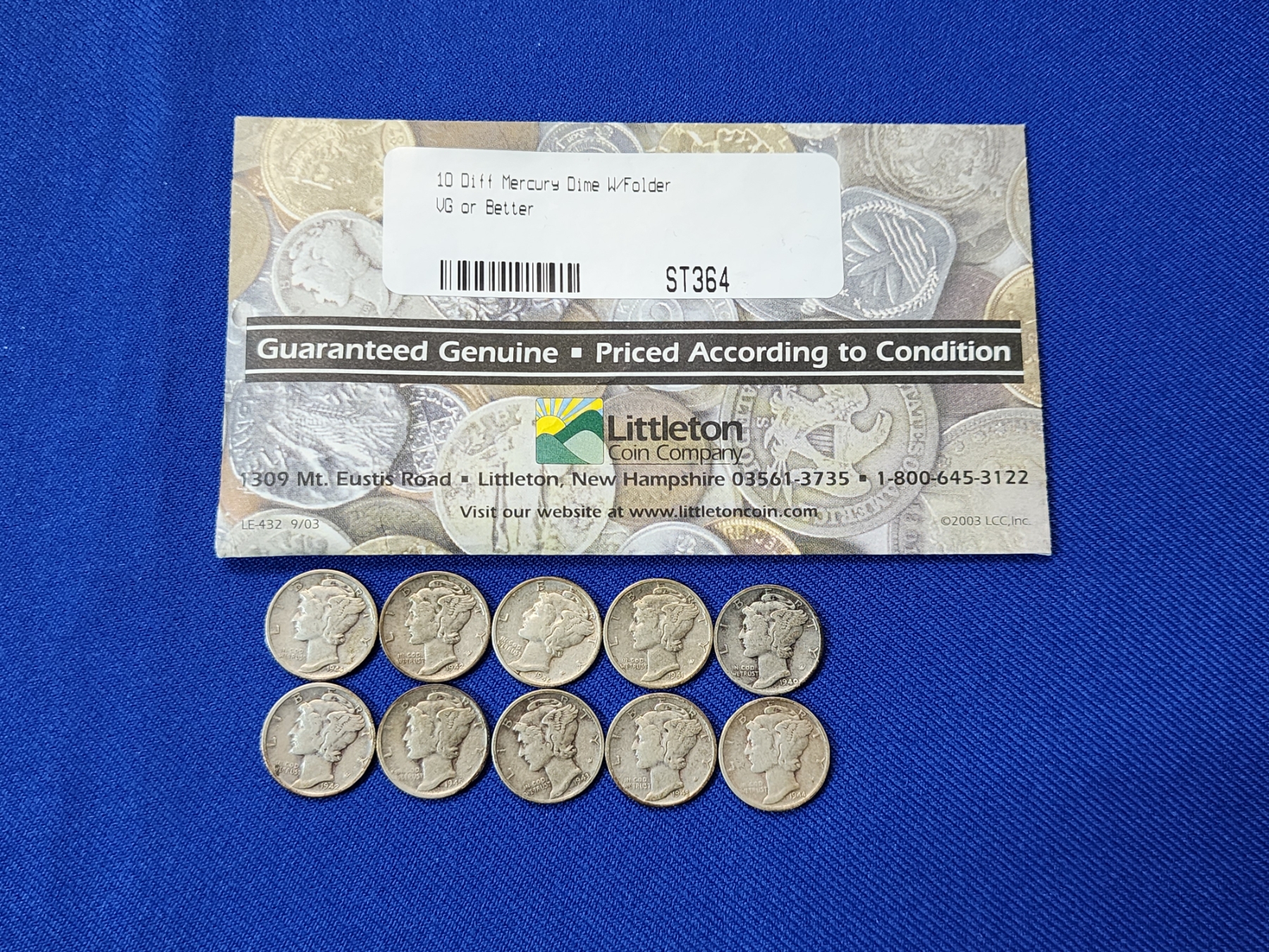 Assorted 1940's Silver Mercury Dimes FV: $1:00 - VG or Better Littleton Coin Company