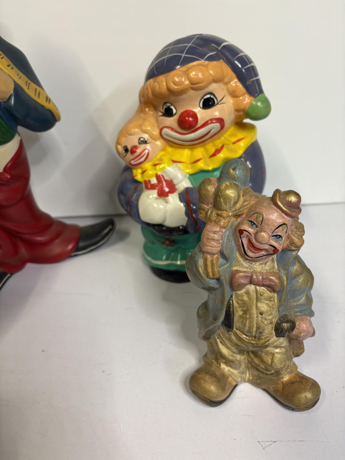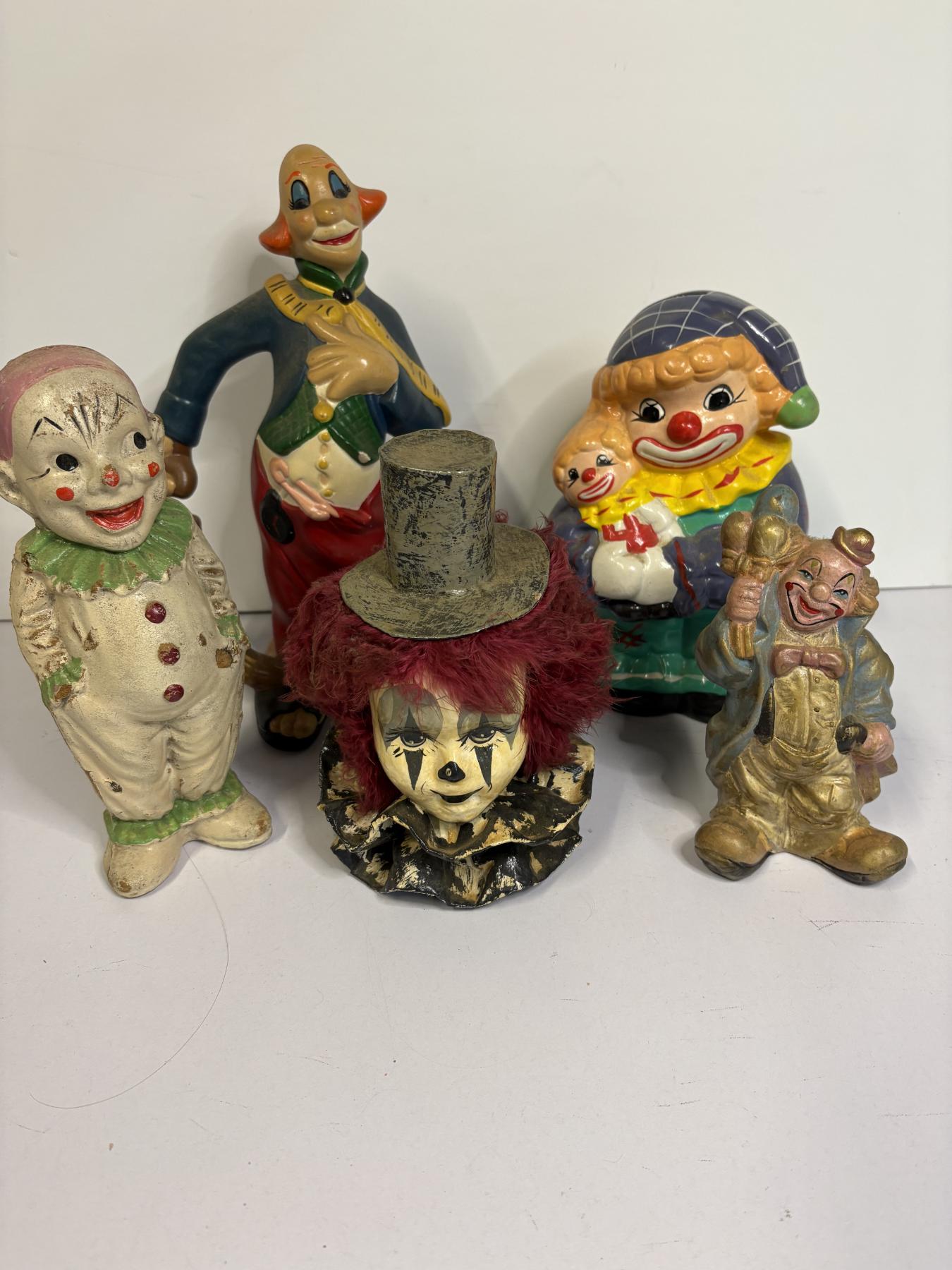 Assorted Clown Figurines - Total of 5 - One Piggy Bank Clown with Baby Clown