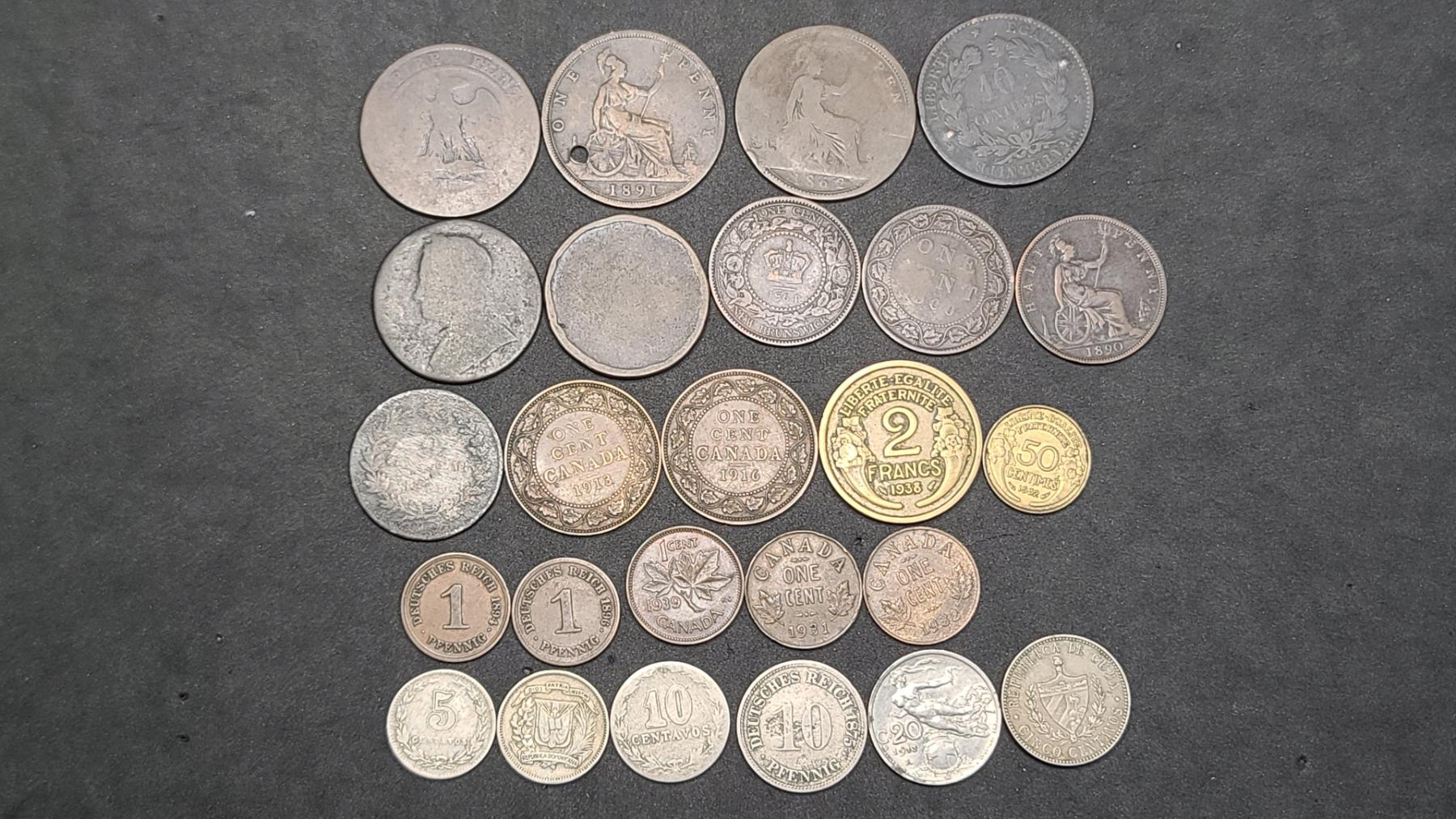 Assorted Foreign Coins Including Canadian, British & More