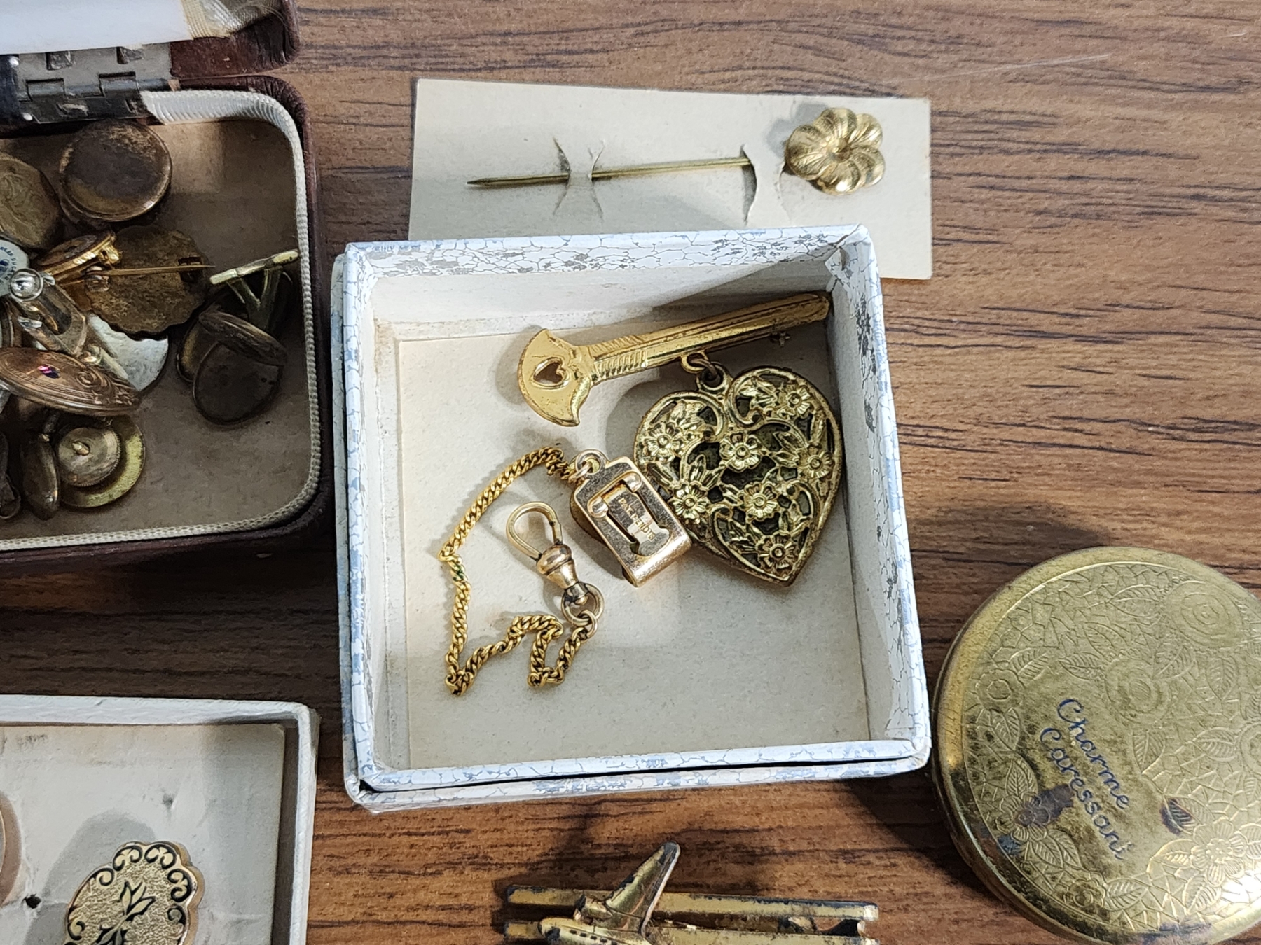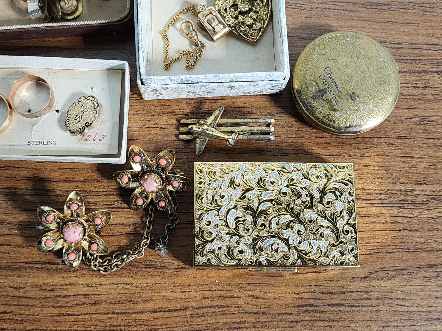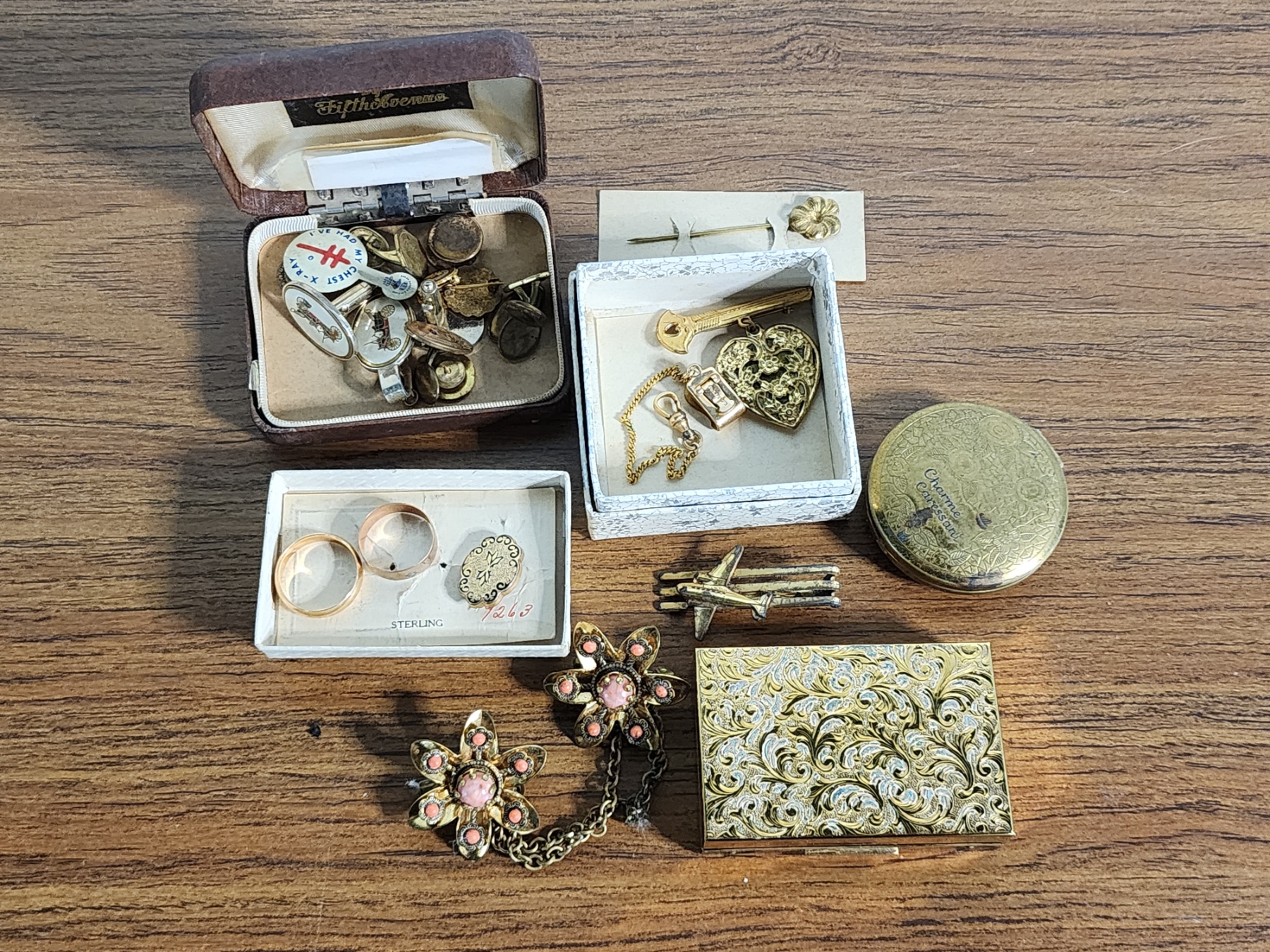 Assorted Gold-Tone Jewelry/Collectibles Including Gold-Plated Ring, Vintage Makeup Compact, & More!
