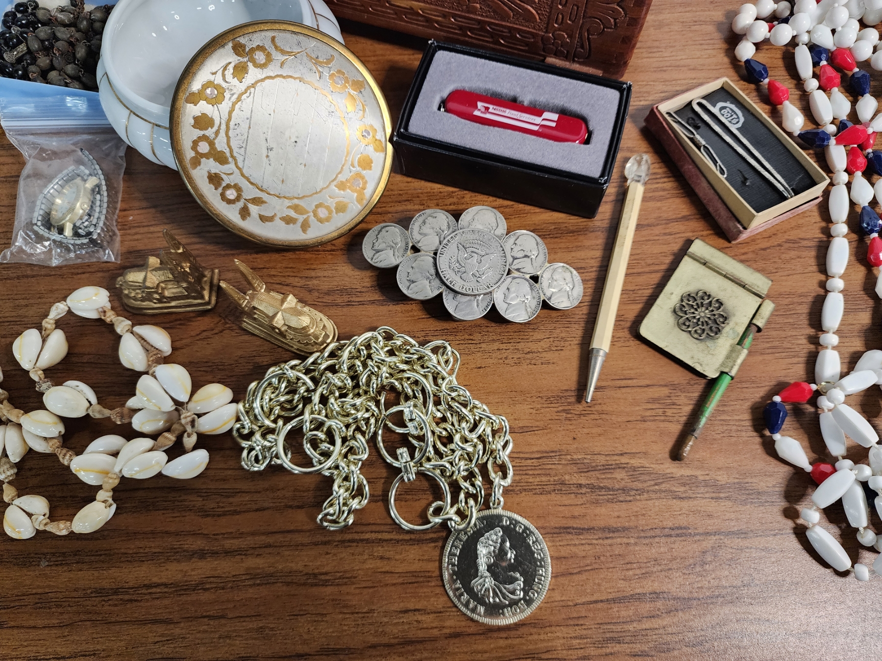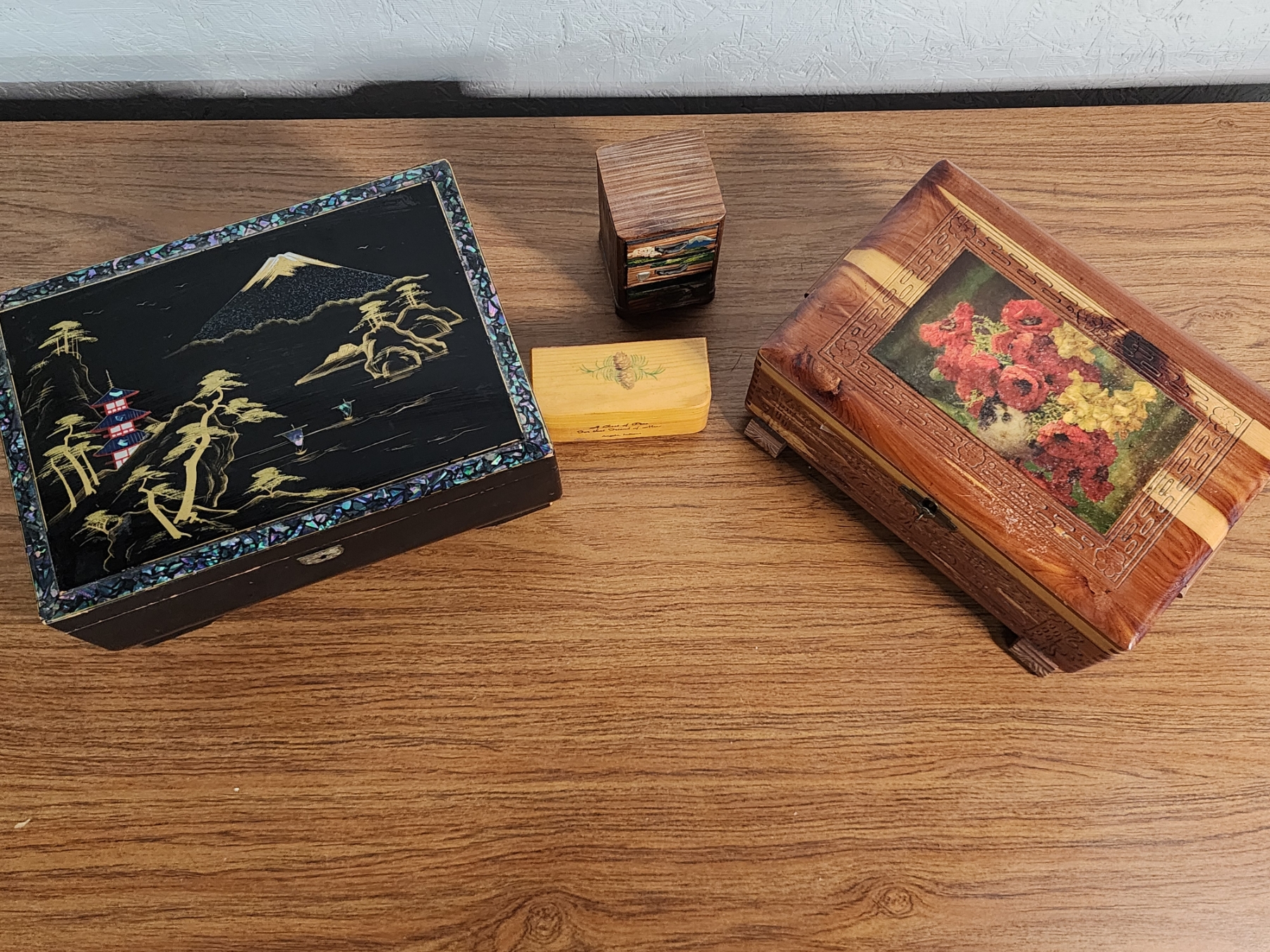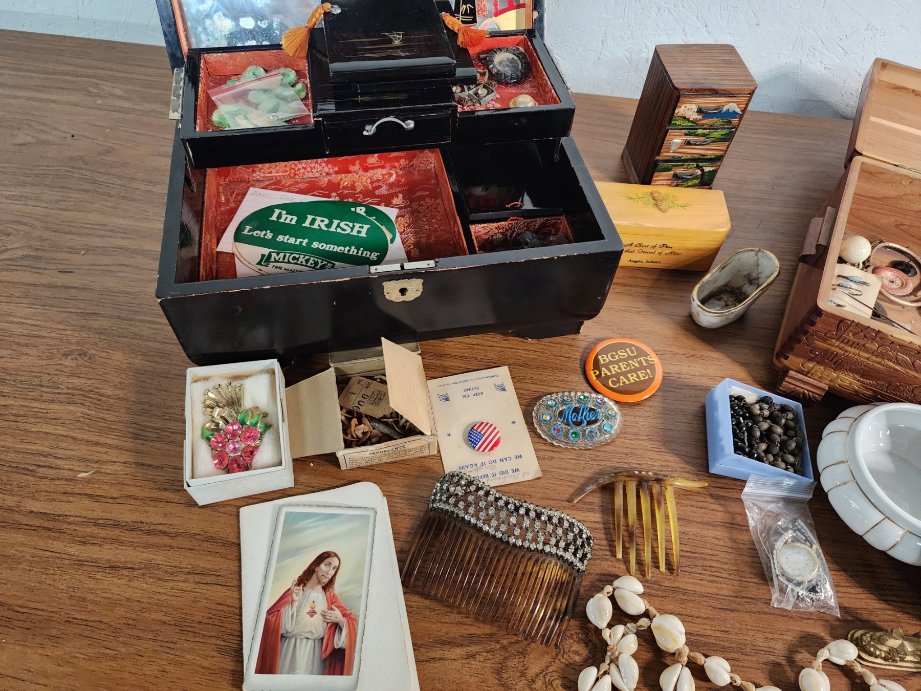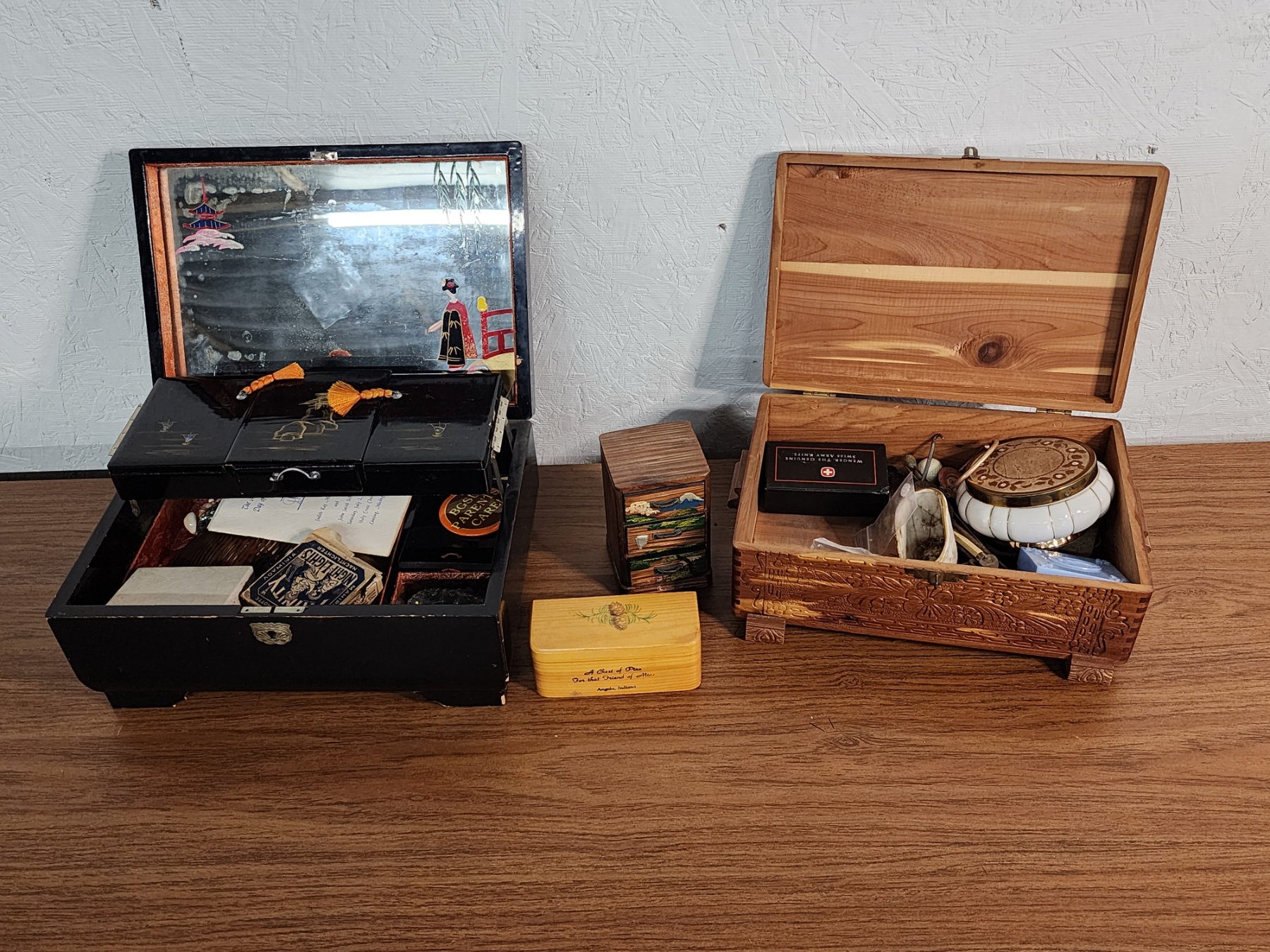 Assorted Jewelry Boxes, Working Music Box, With Contents - See Photos!