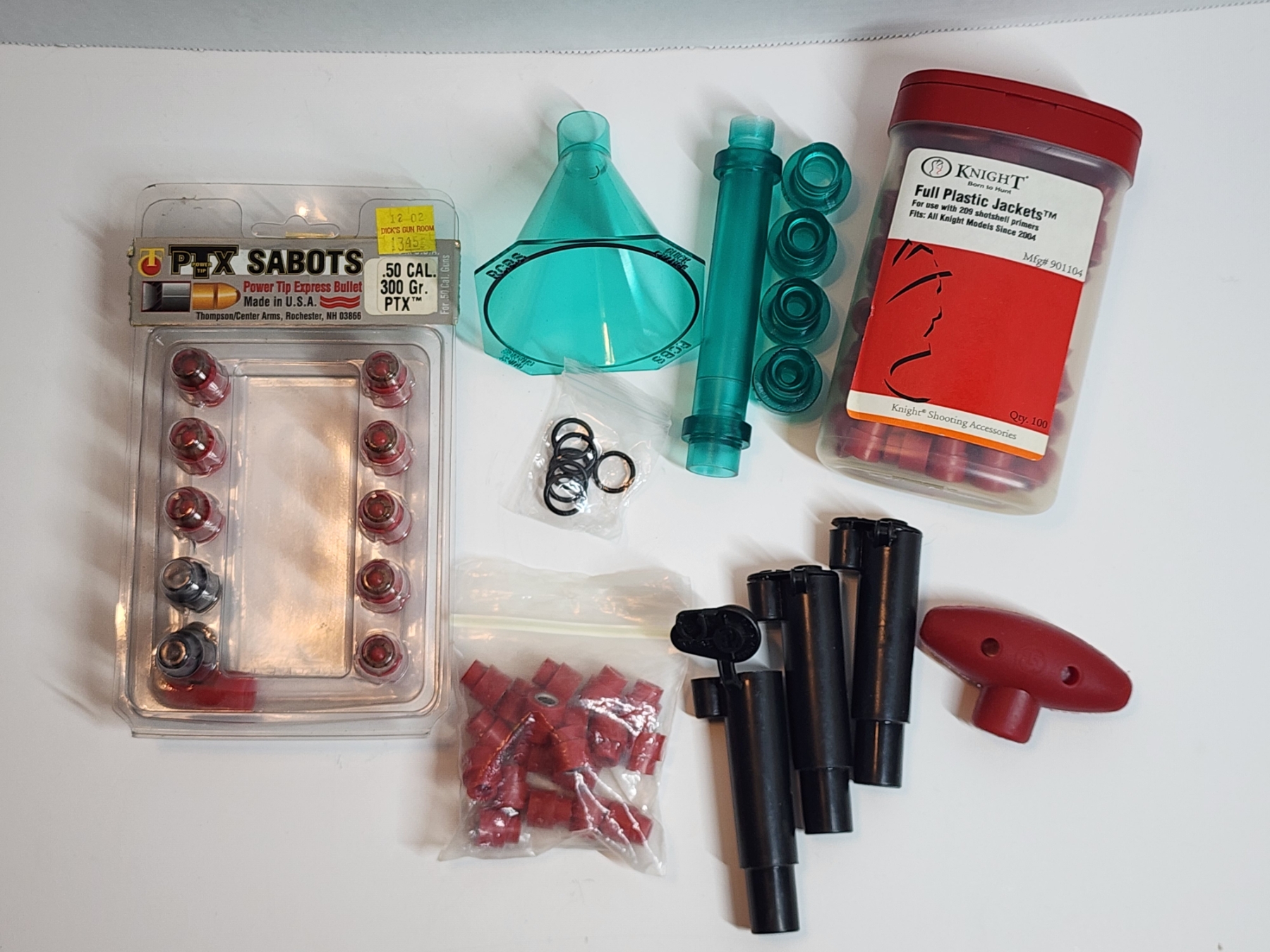 Assorted Muzzleloader Items: Power Tip Express Bullets, Funnel, Jackets, & More - See Photos!