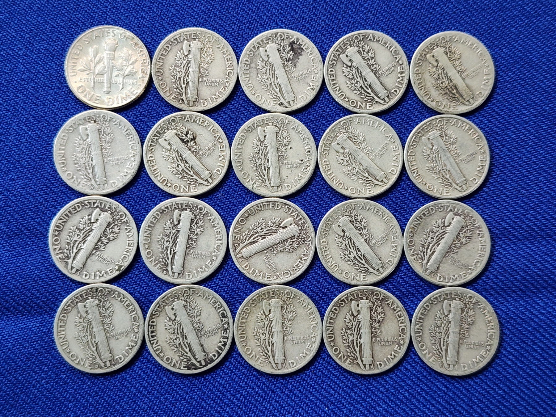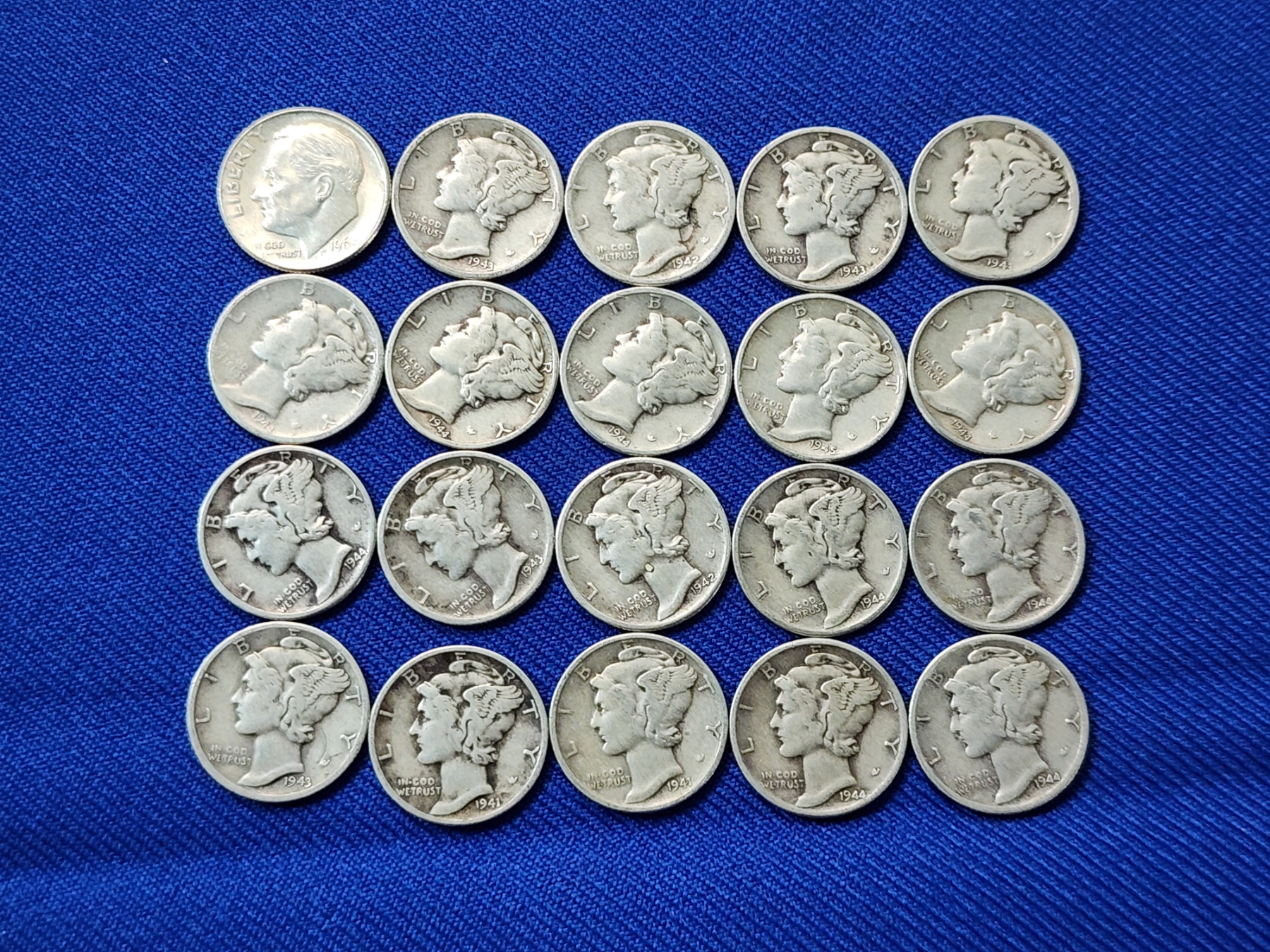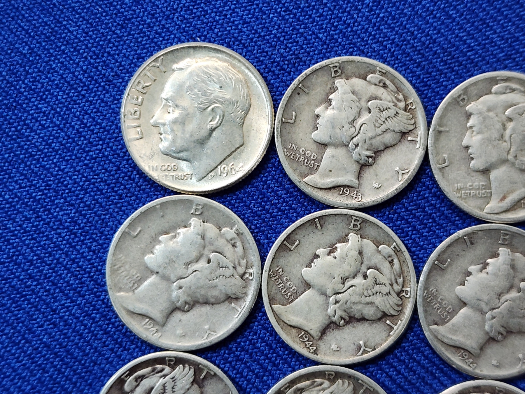 Assorted Silver Dimes: (1) Roosevelt 1964 & Assorted Mercury Face Value: $2.00