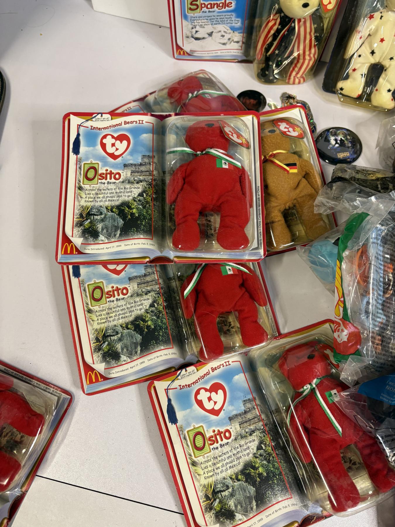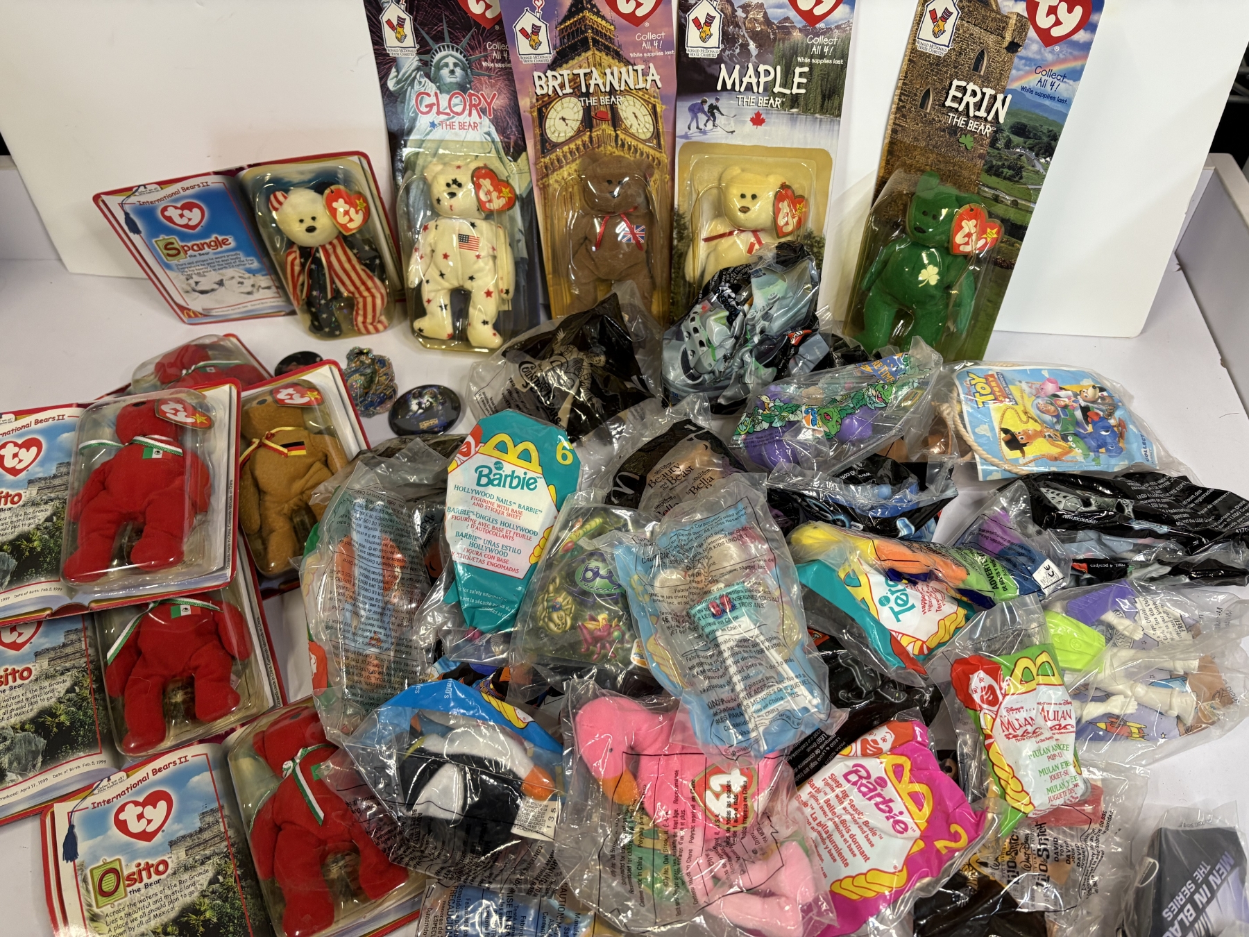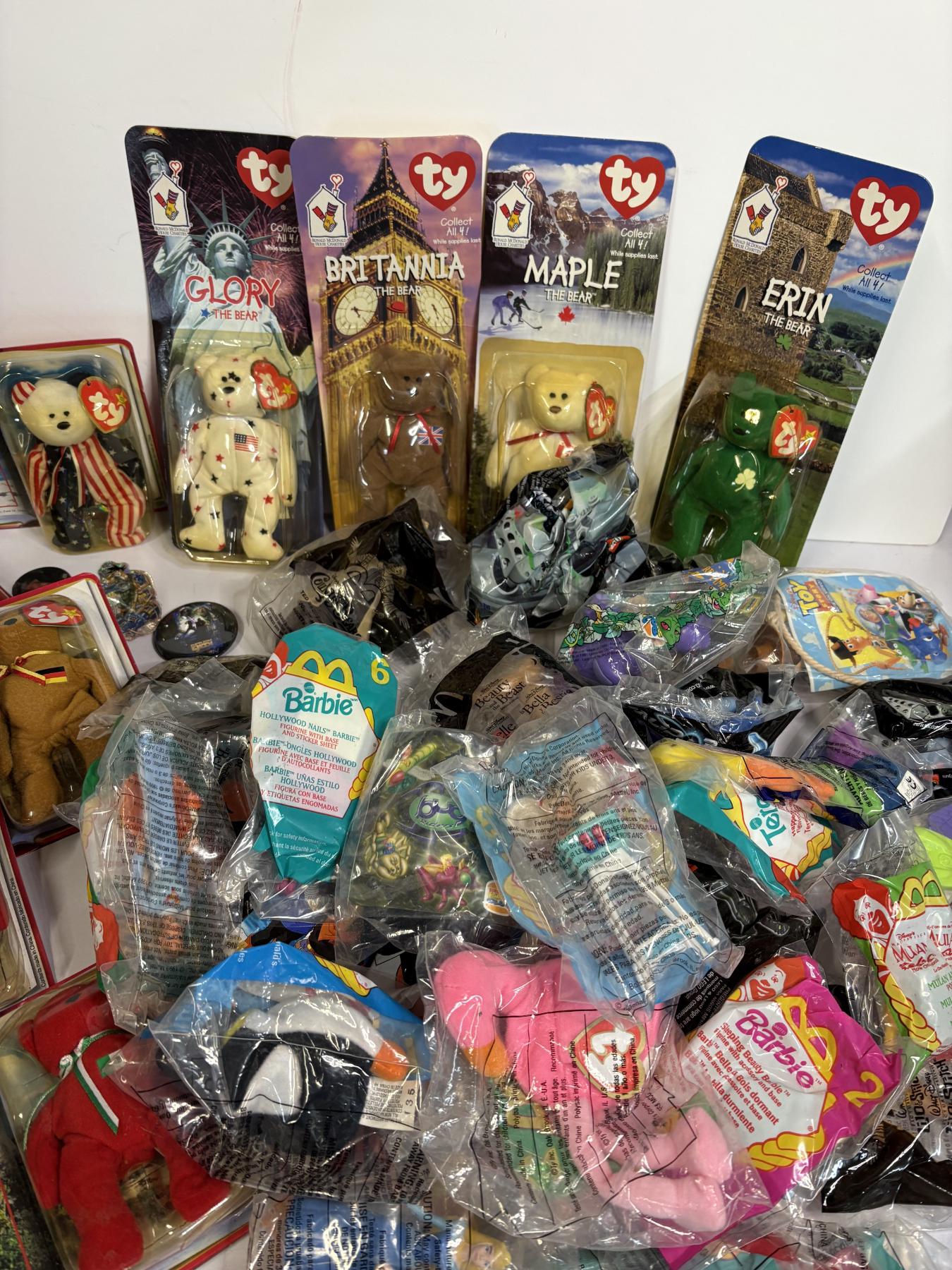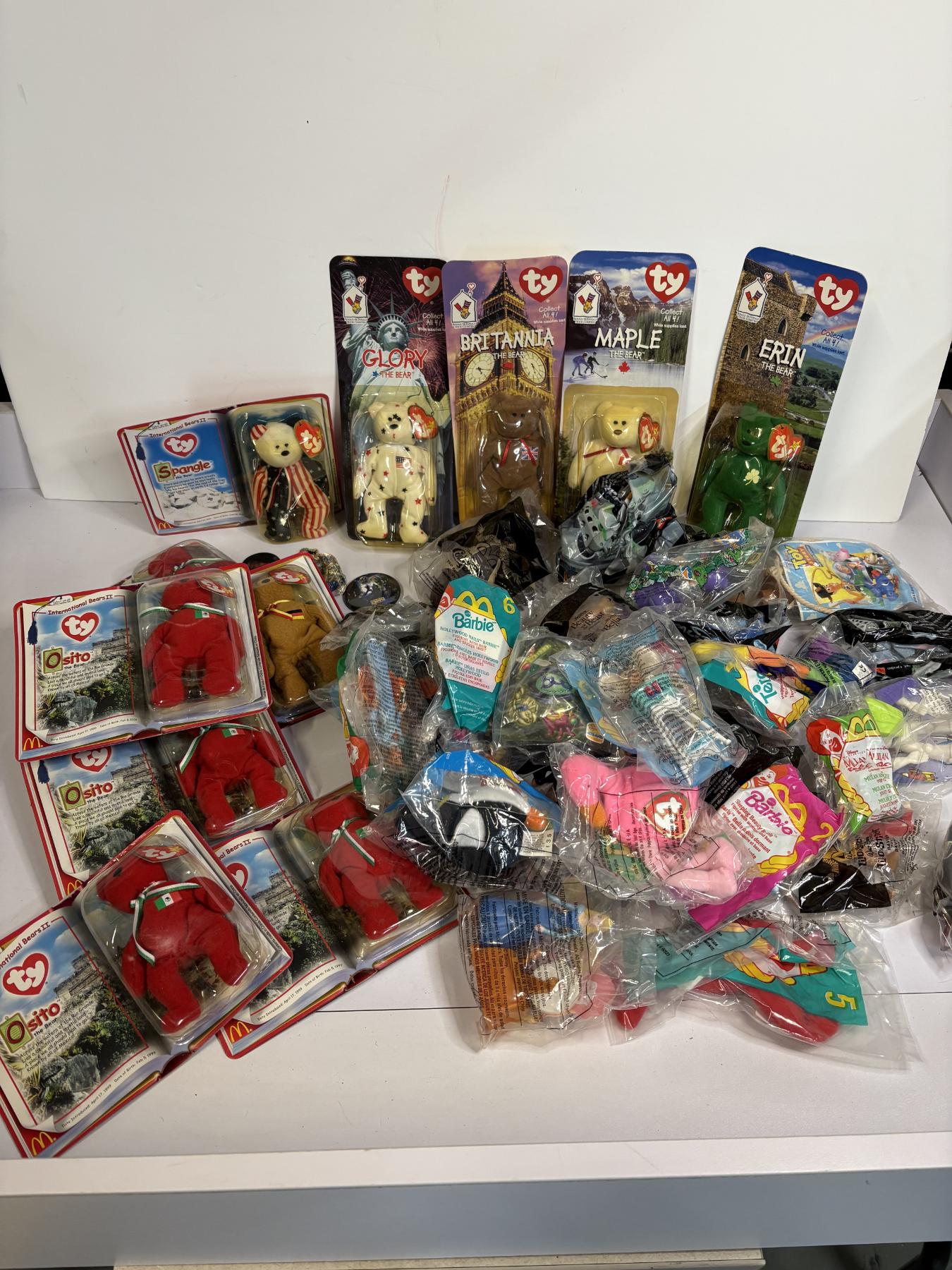 Assorted TY Beanie Babies - Glory - Britannia - Maple - Erin - Osito - Barbie - Men in Black - Beauty & The Beast - Flamingo