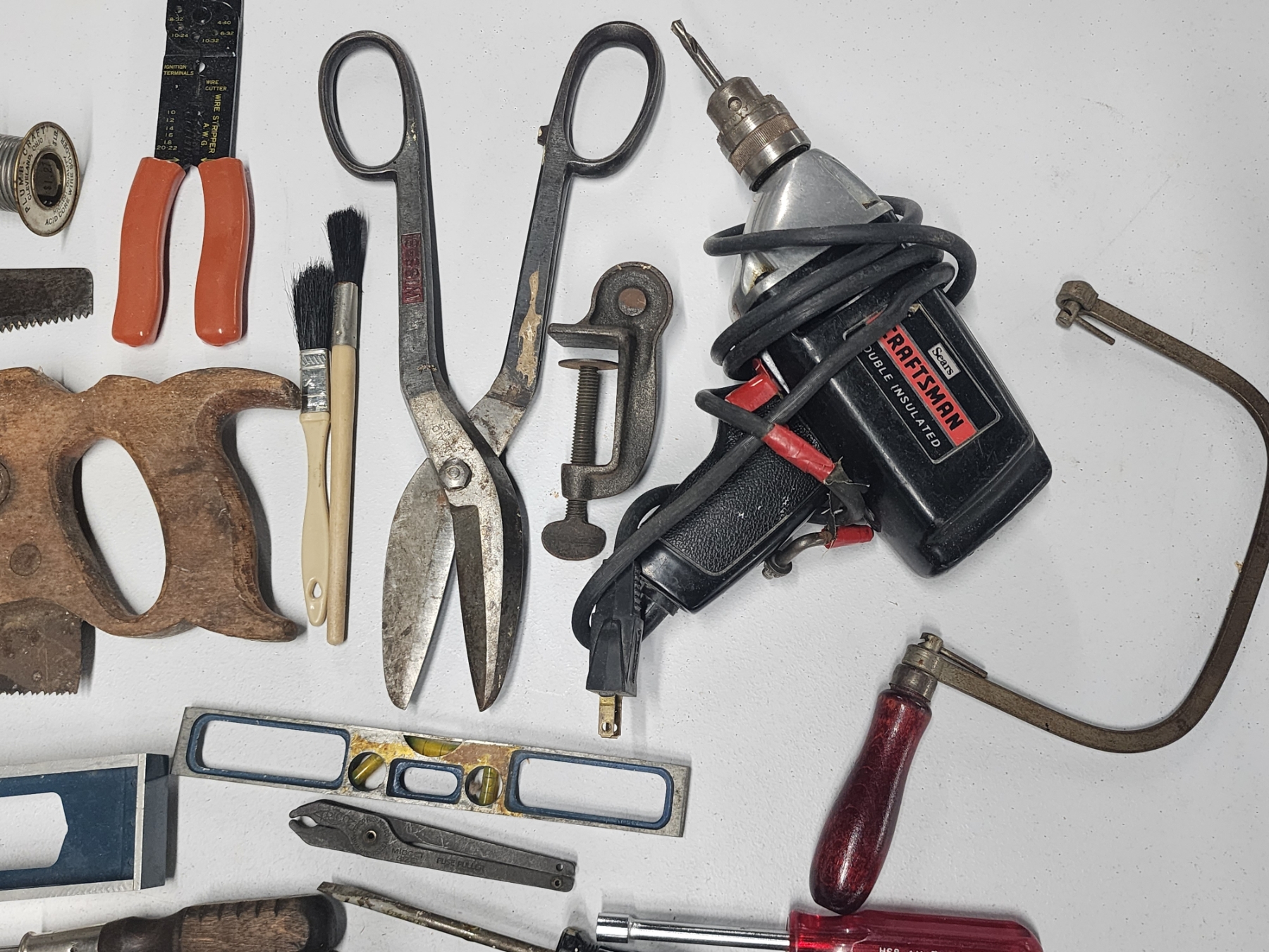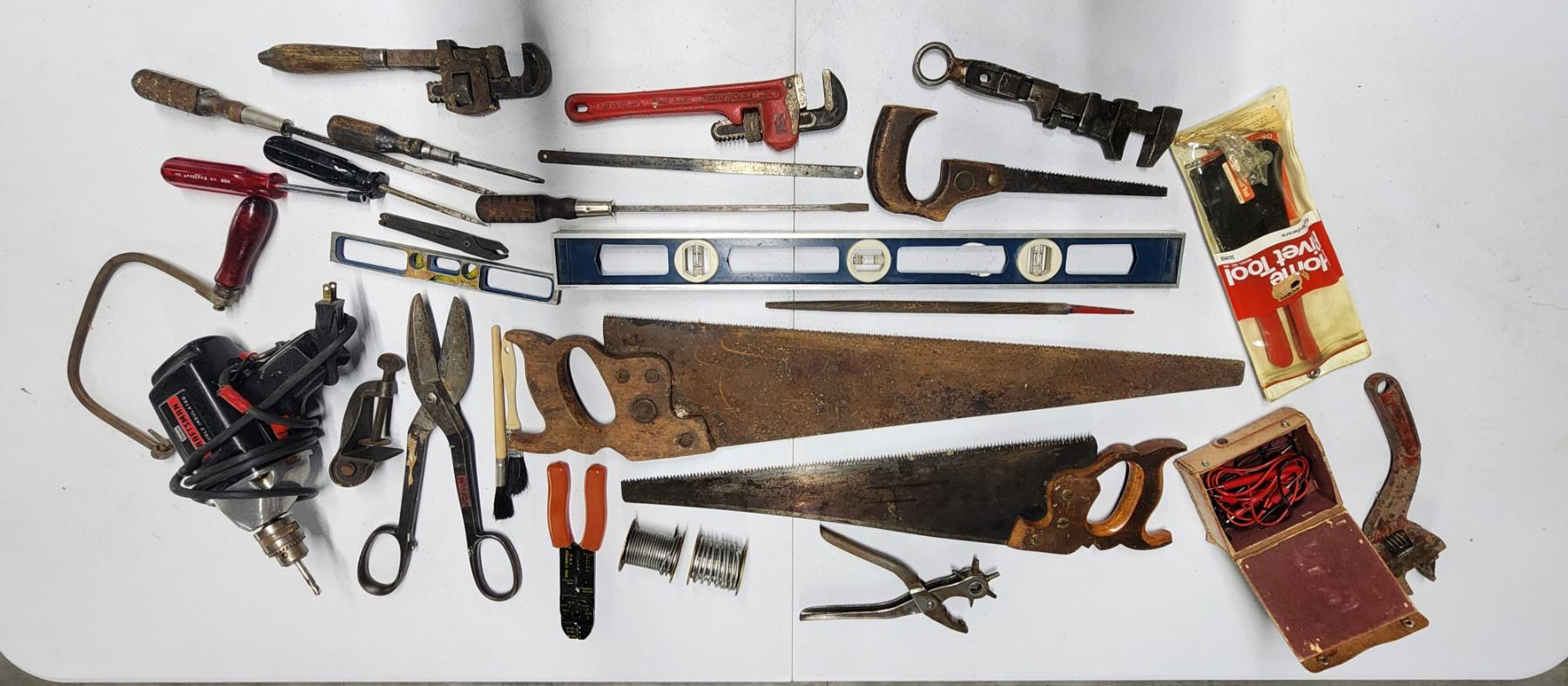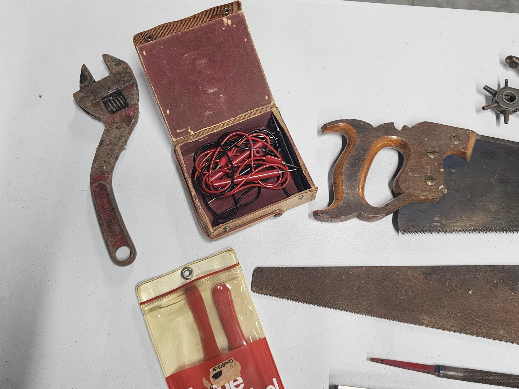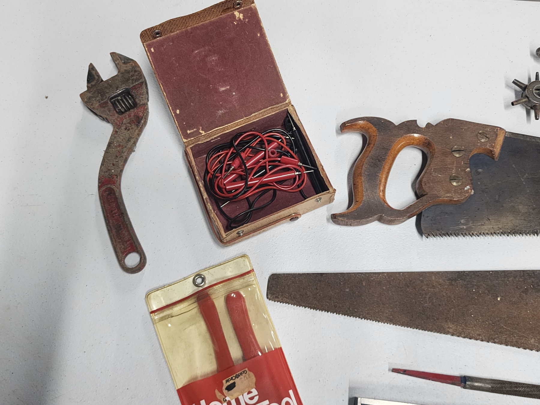 Assorted Tools Including Saws, Levels, Tin Snips, Pipe Wrenches, & More - See Photos!