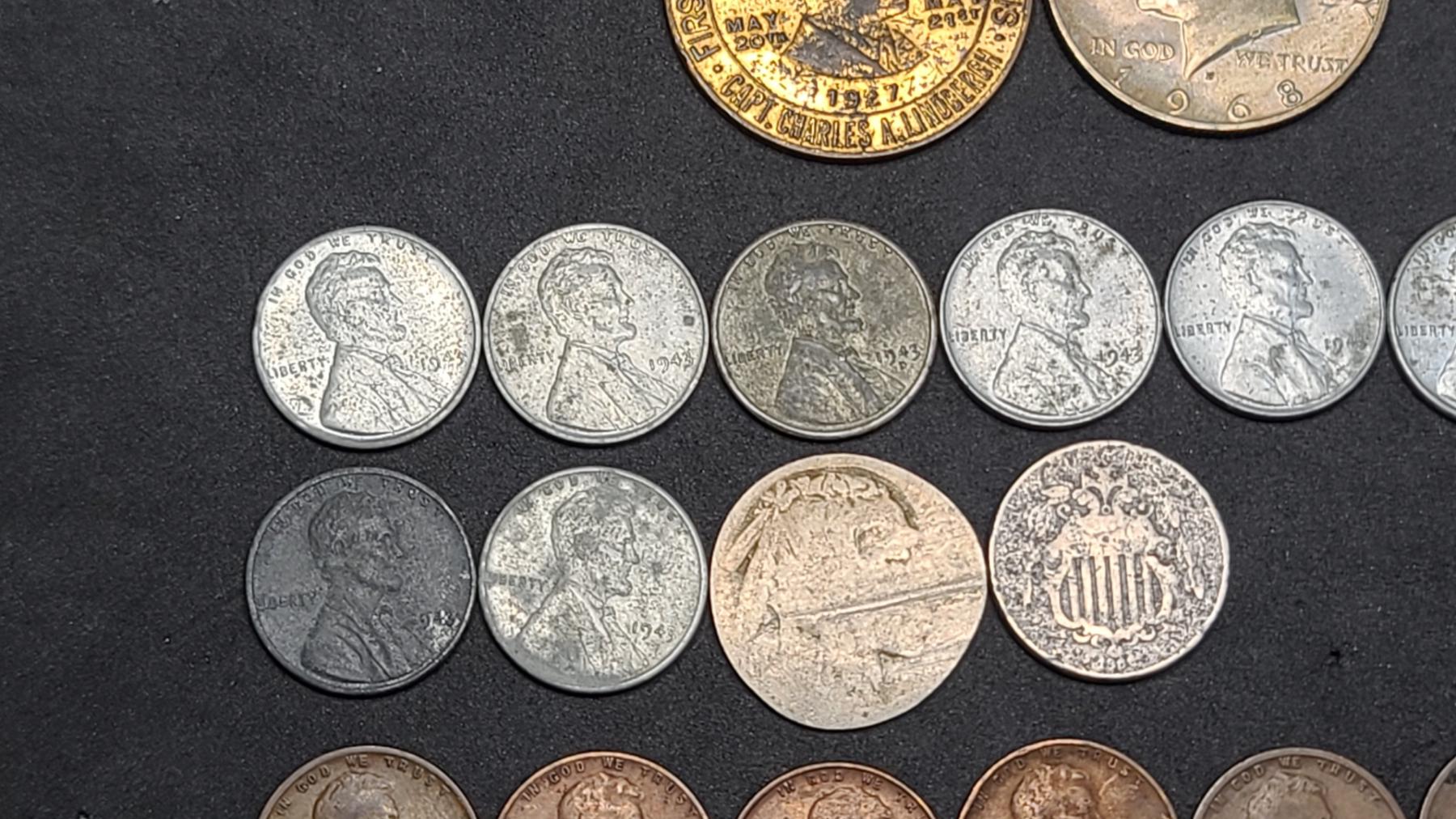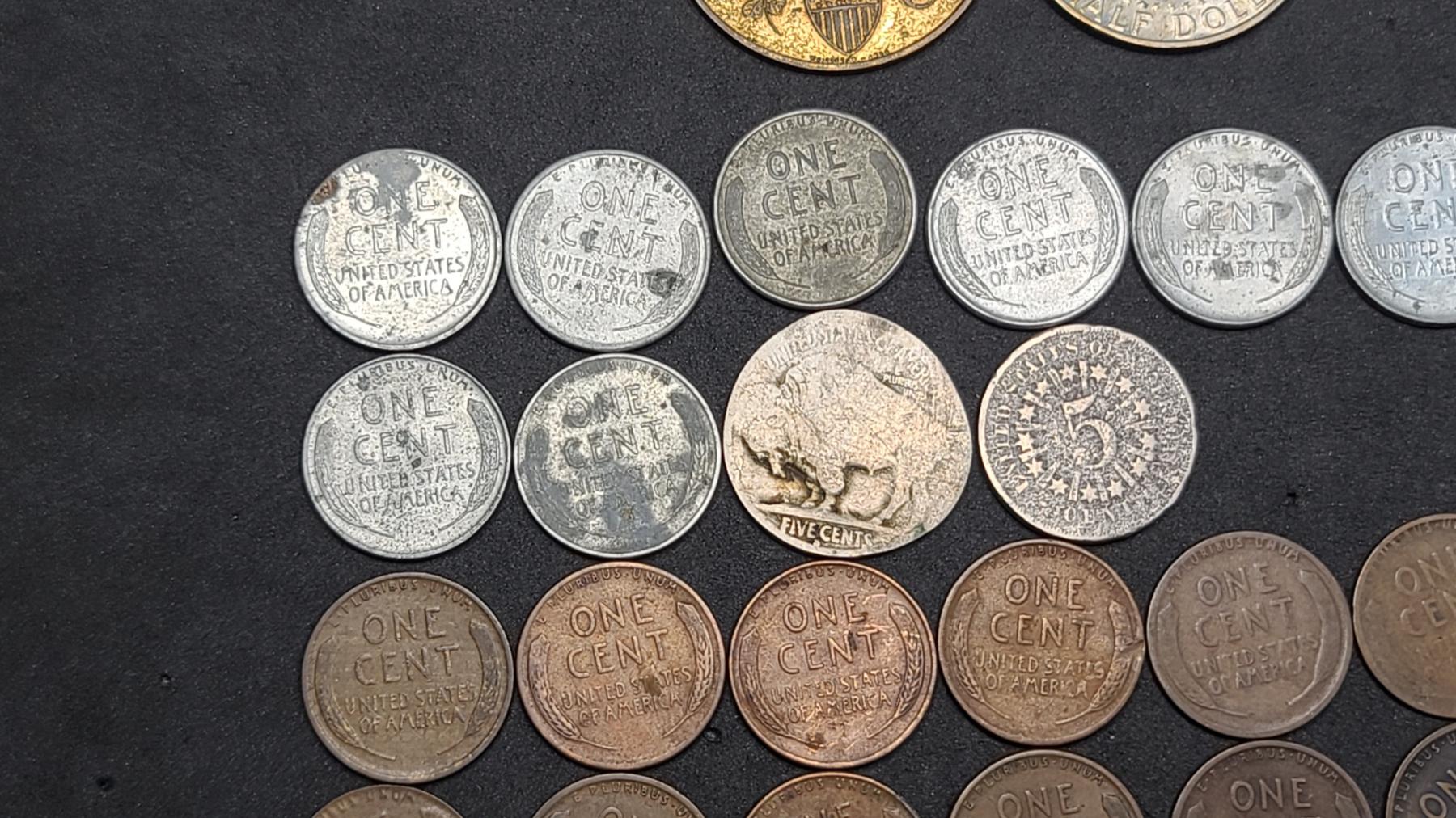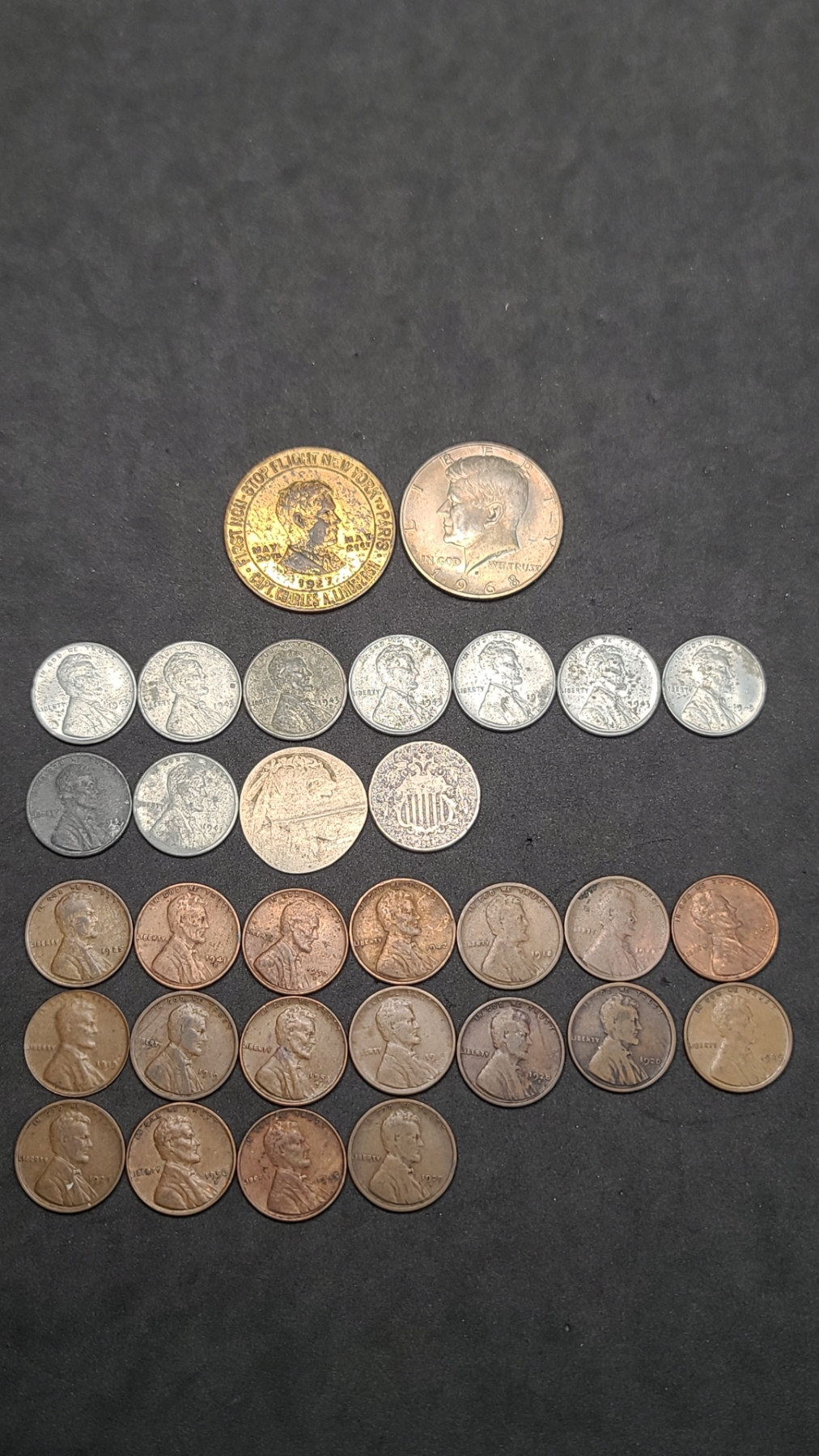 Assorted US Coins/Token Including Kennedy Half Dollar, Steel Wheat Pennies & More - Face Value: $0.87