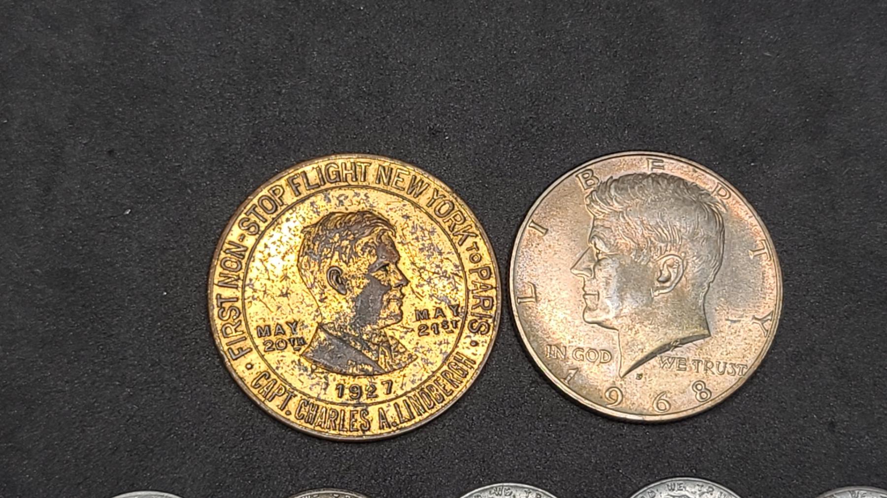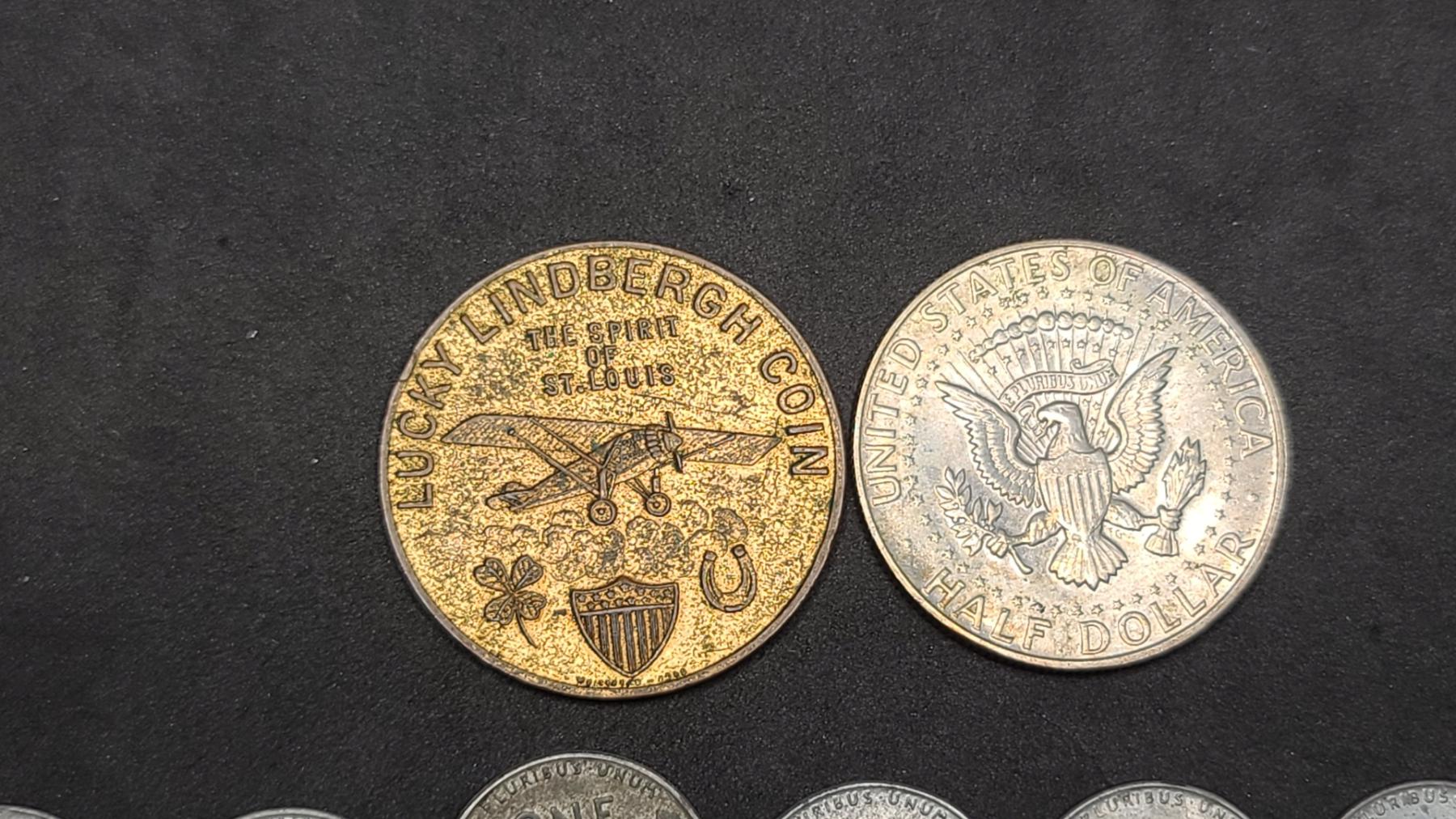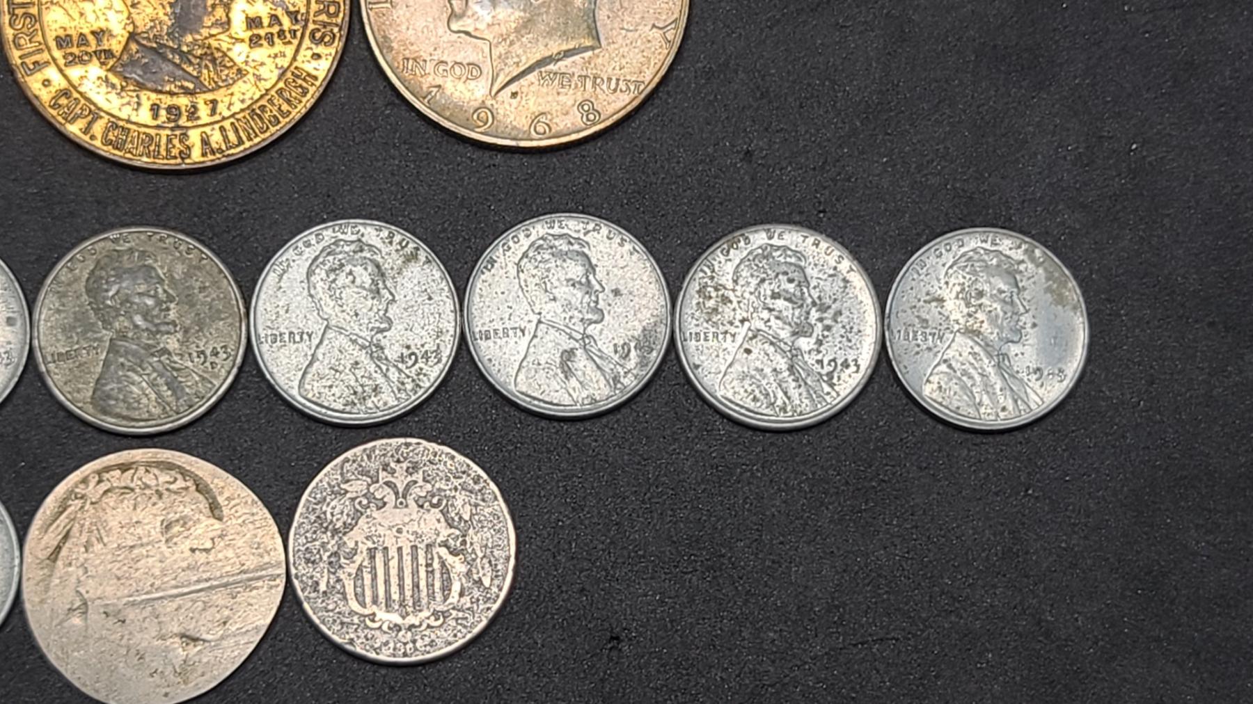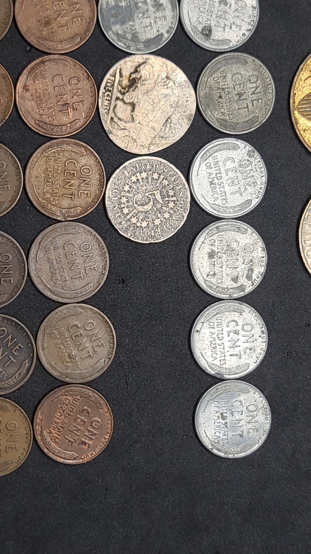 Assorted US Coins/Token Including Kennedy Half Dollar, Steel Wheat Pennies & More - Face Value: $0.87