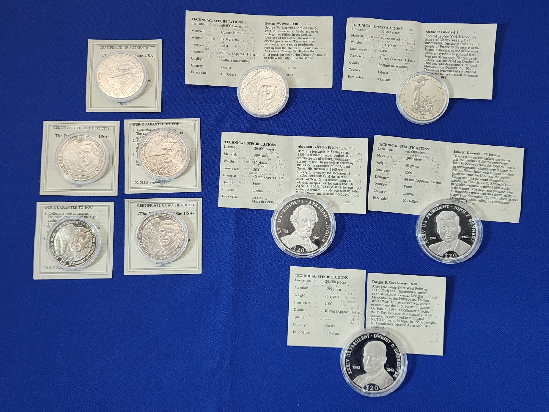 Assorted U.S. Liberia Presidential Coins Including Silver Proofs, Brilliant Uncirculated - See Description!