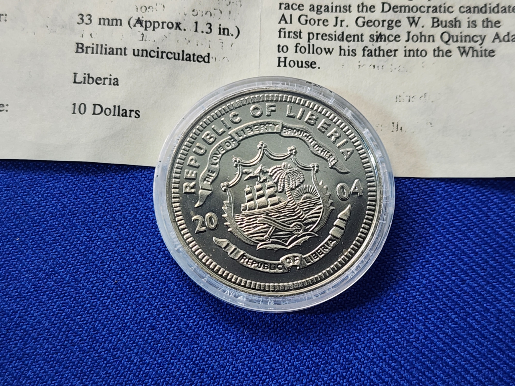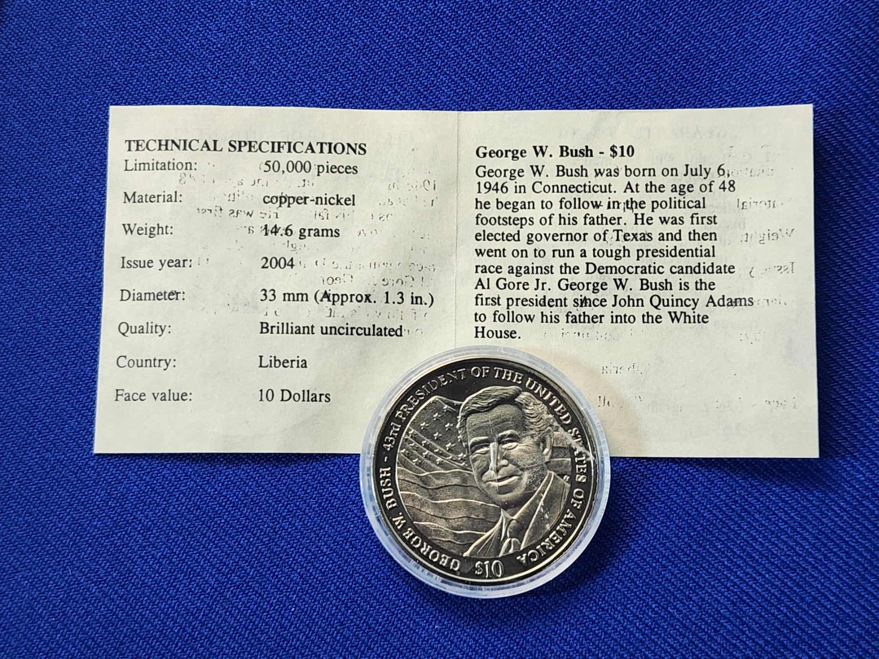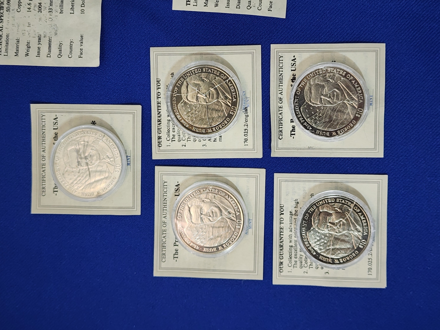 x6 George W. Bush Copper-Nickel Liberia $10 Coins