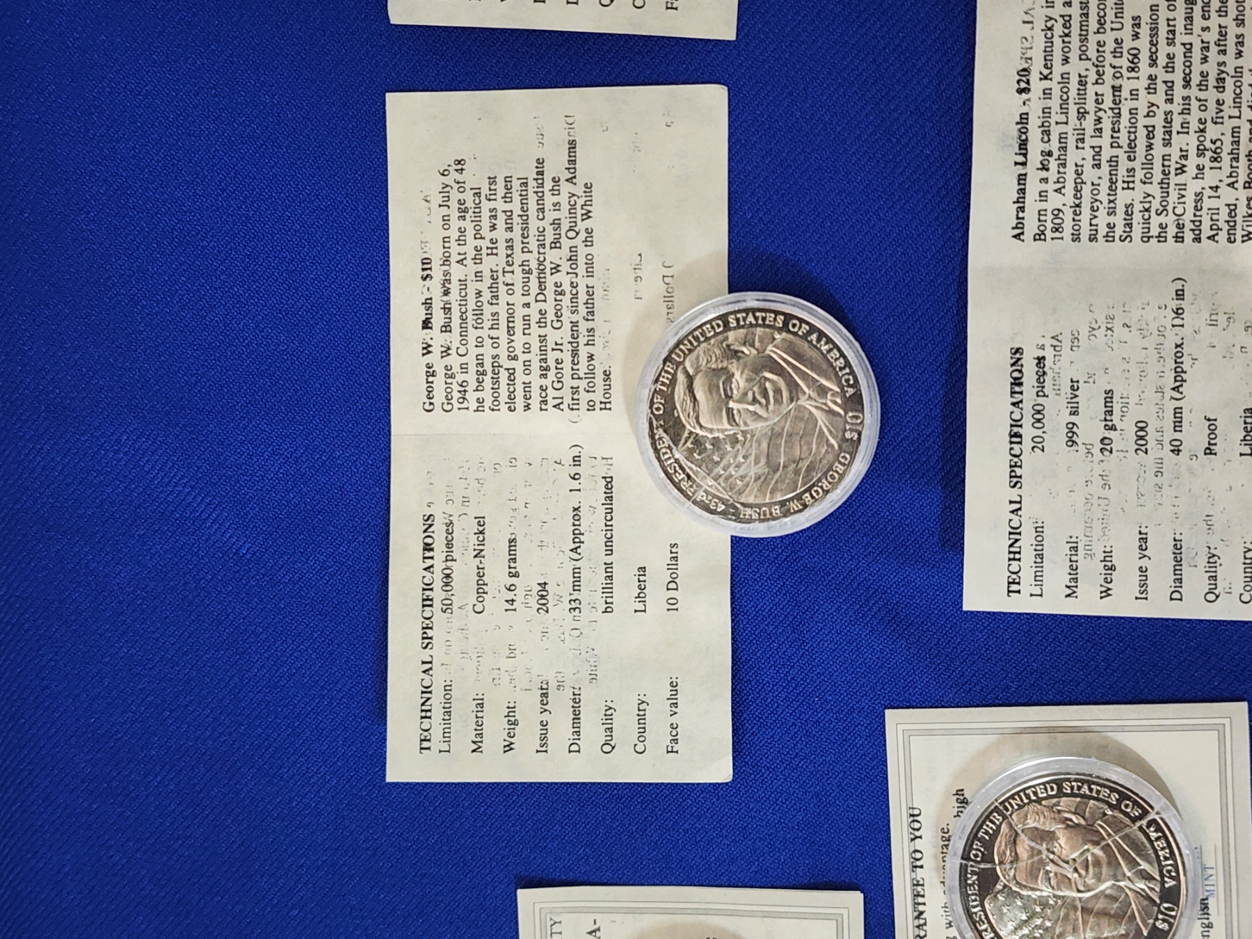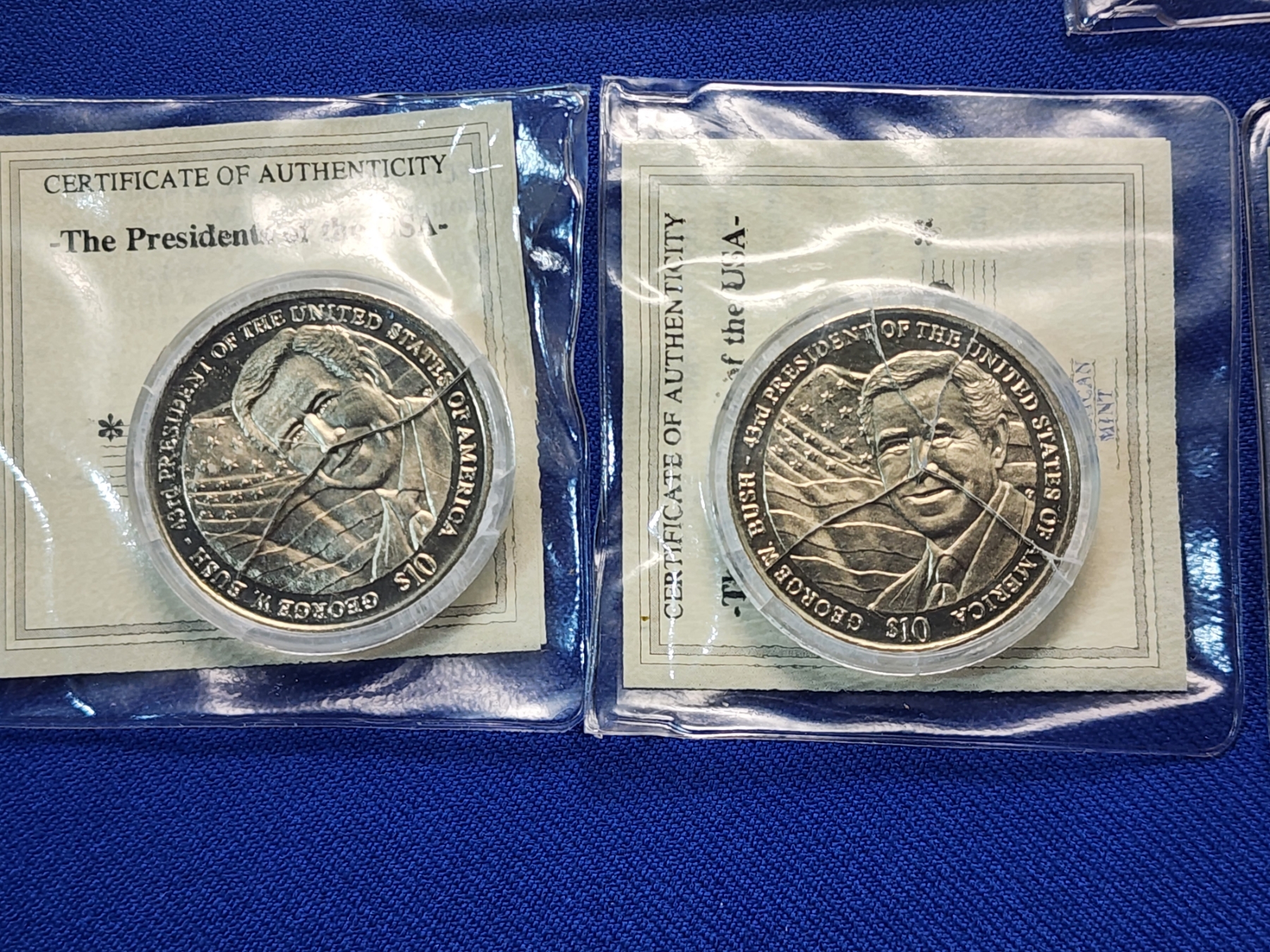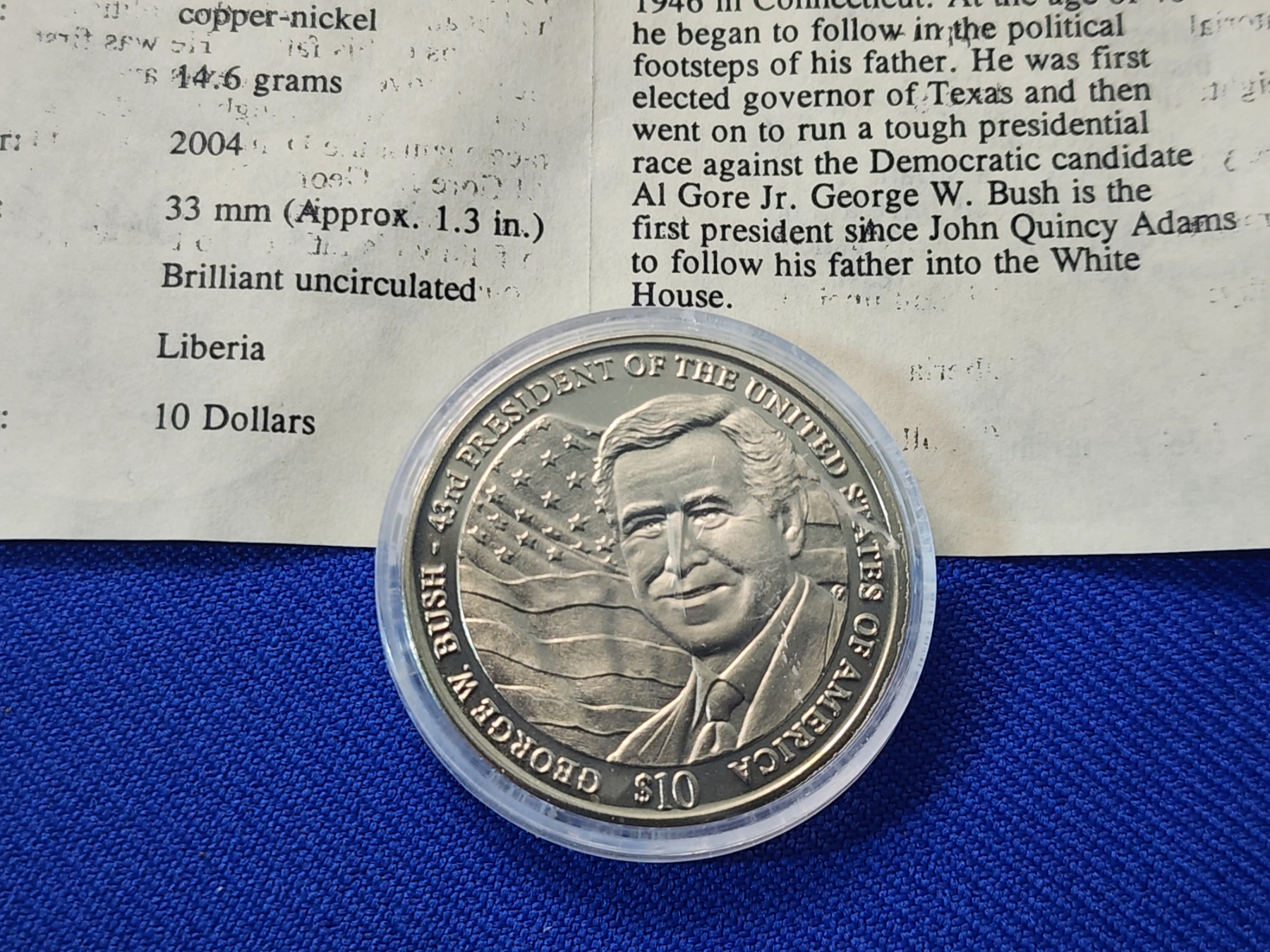 x6 George W. Bush Copper-Nickel Liberia $10 Coins