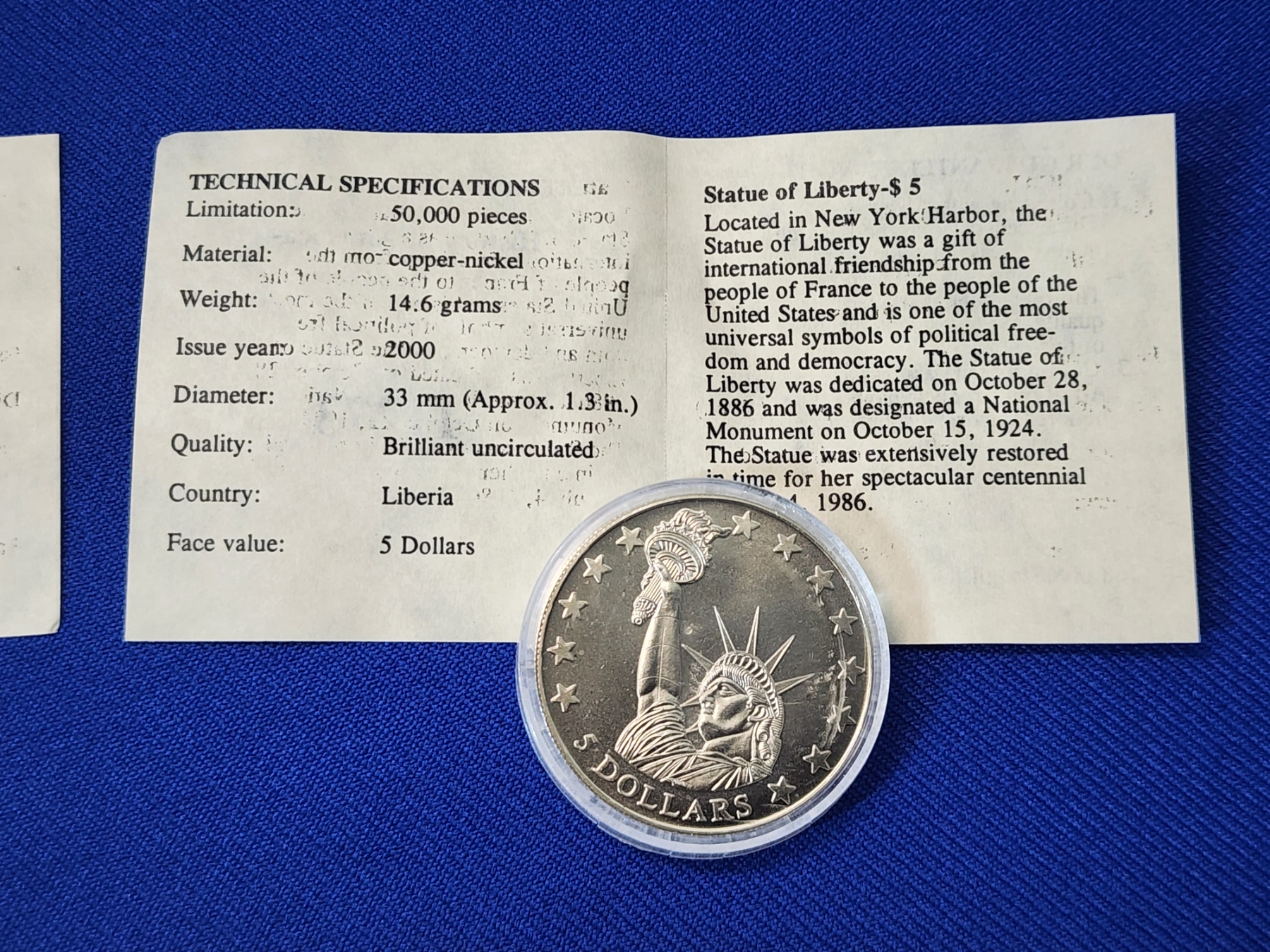Statue of Liberty Cooper-Nickel Liberia $5 Coin