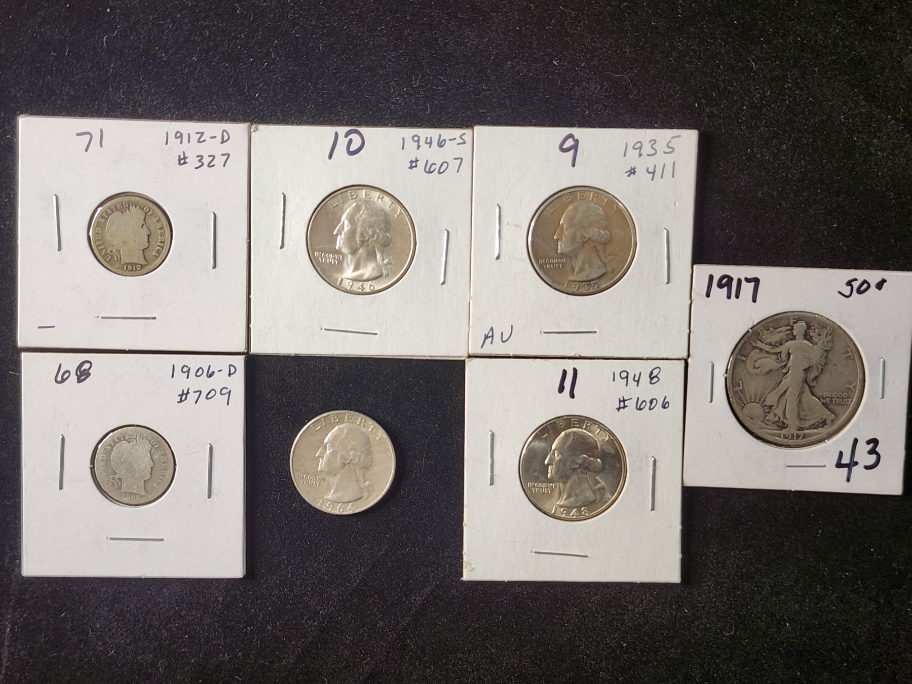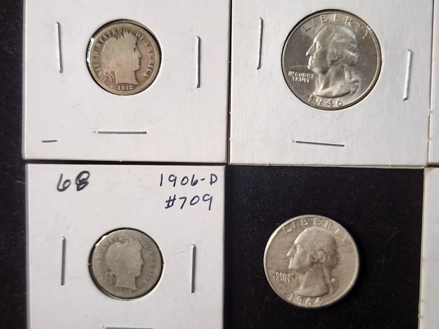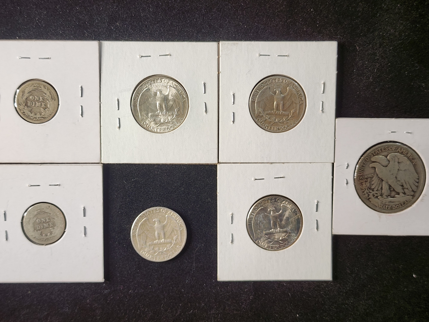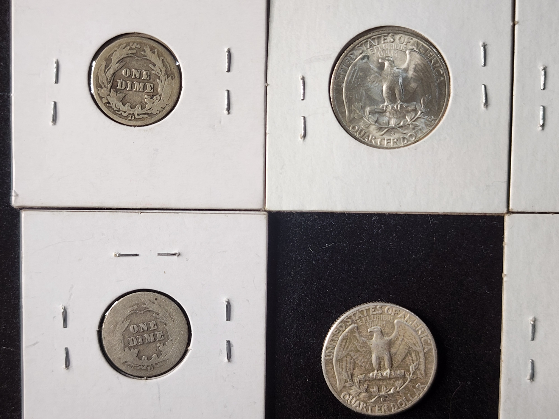 Assorted United States 90% Silver Coins Ft. Barber Dimes, Washington Quarters & Walking Liberty Half! $1.70 FV Total