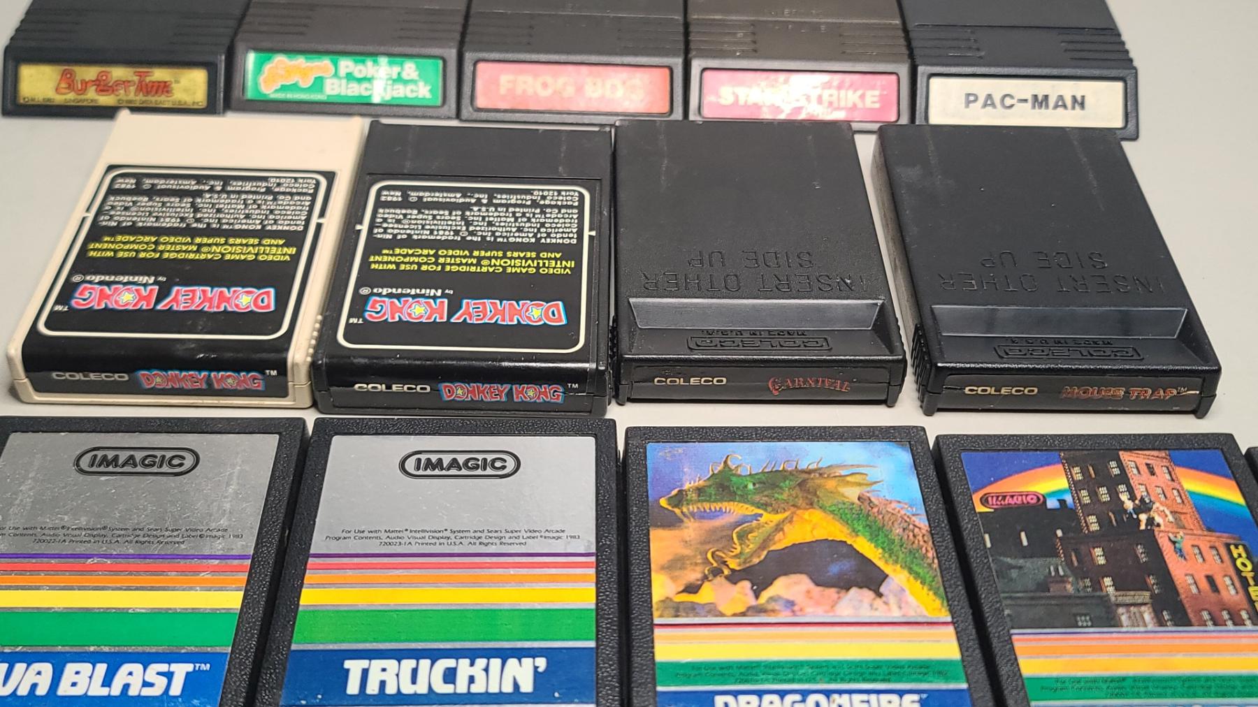 Assorted Vintage Atari 2600 And Intellivision Game & Game Overlays - Untested