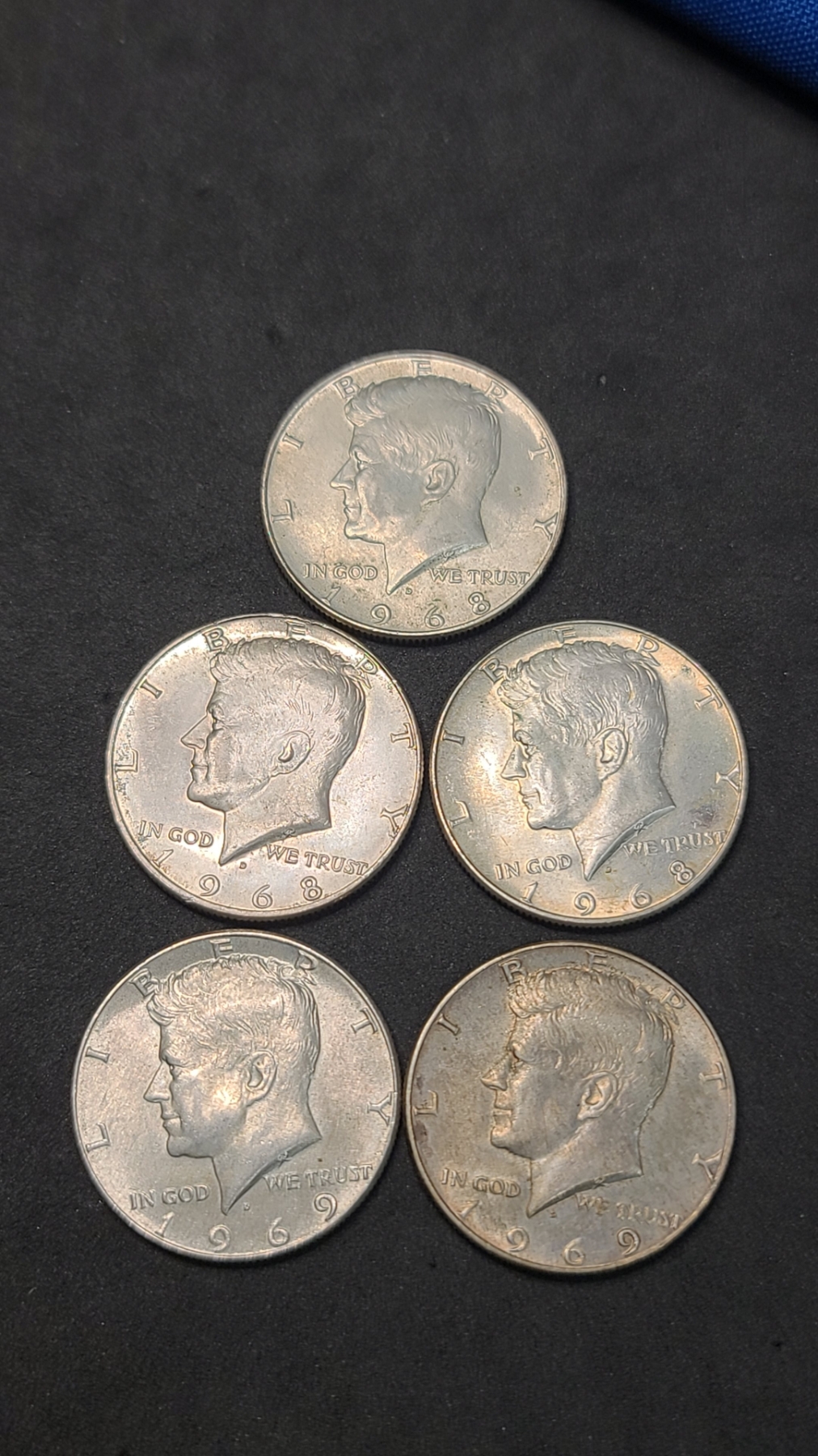 Assorted Years 40% Silver Kennedy Half Dollars - Face Value: $2.50