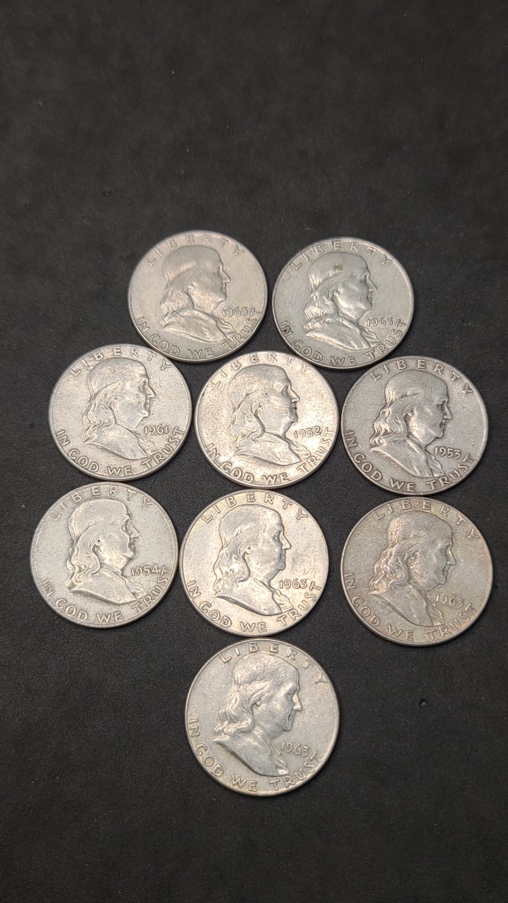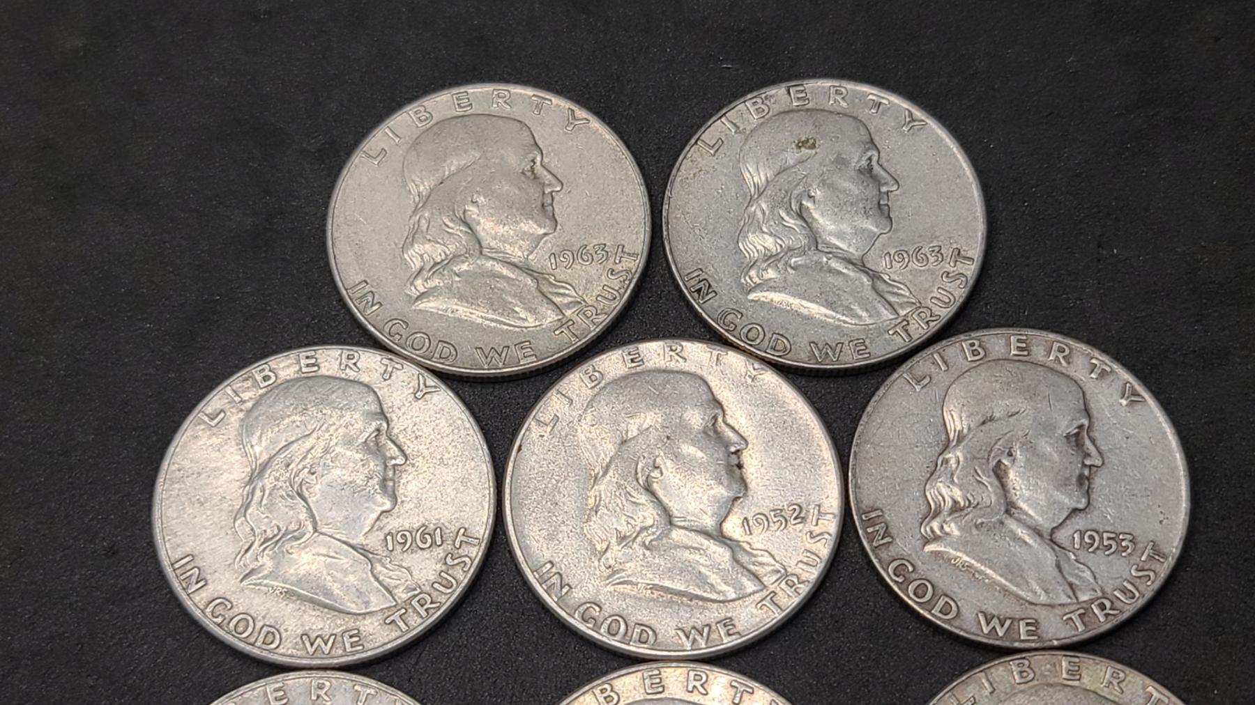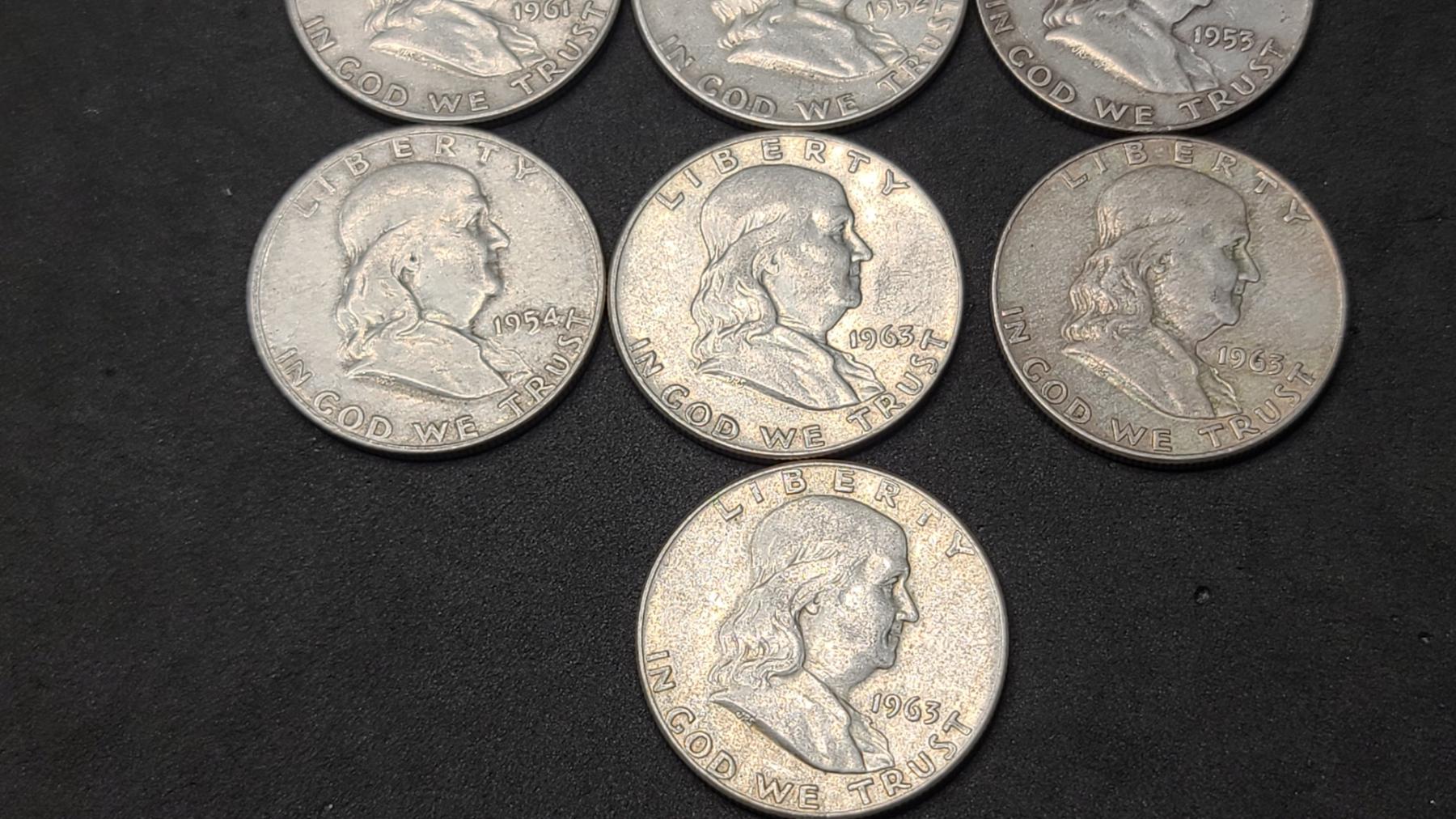 Assorted Years 90% Silver Franklin Half Dollars - Face Value: $4.50