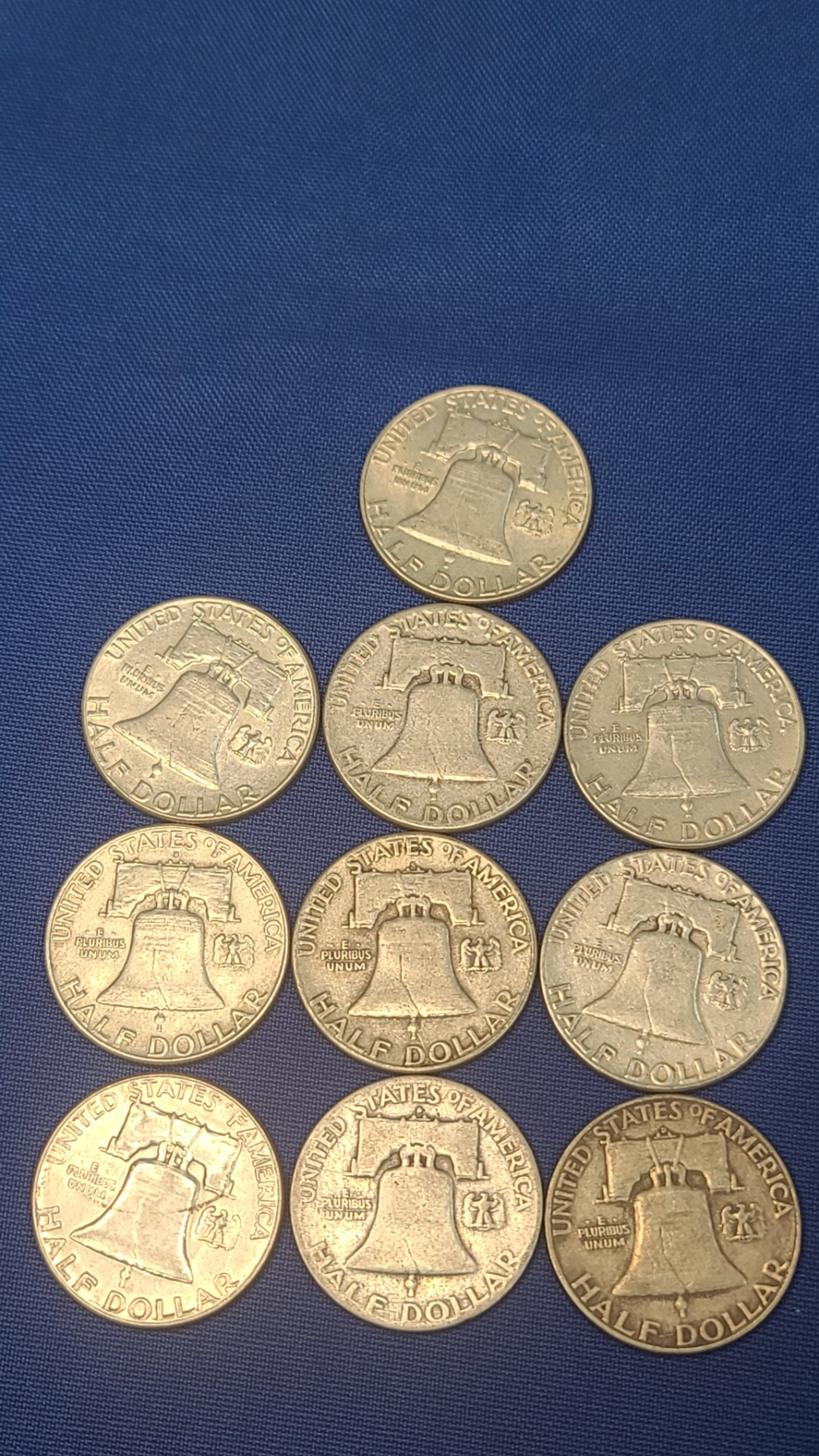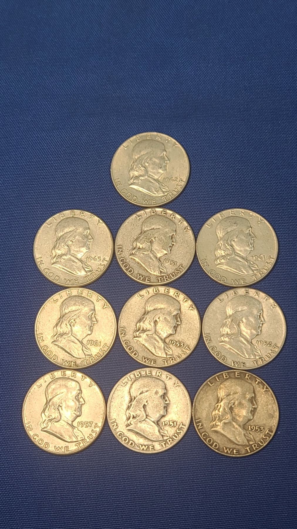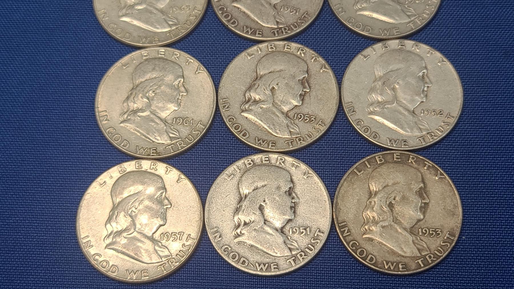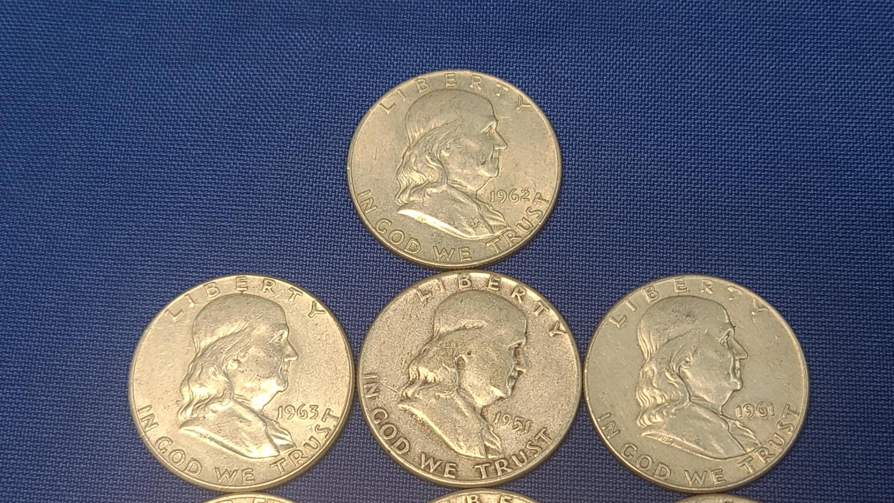 Assorted Years 90% Silver Franklin Half Dollars - Face Value: $5.00