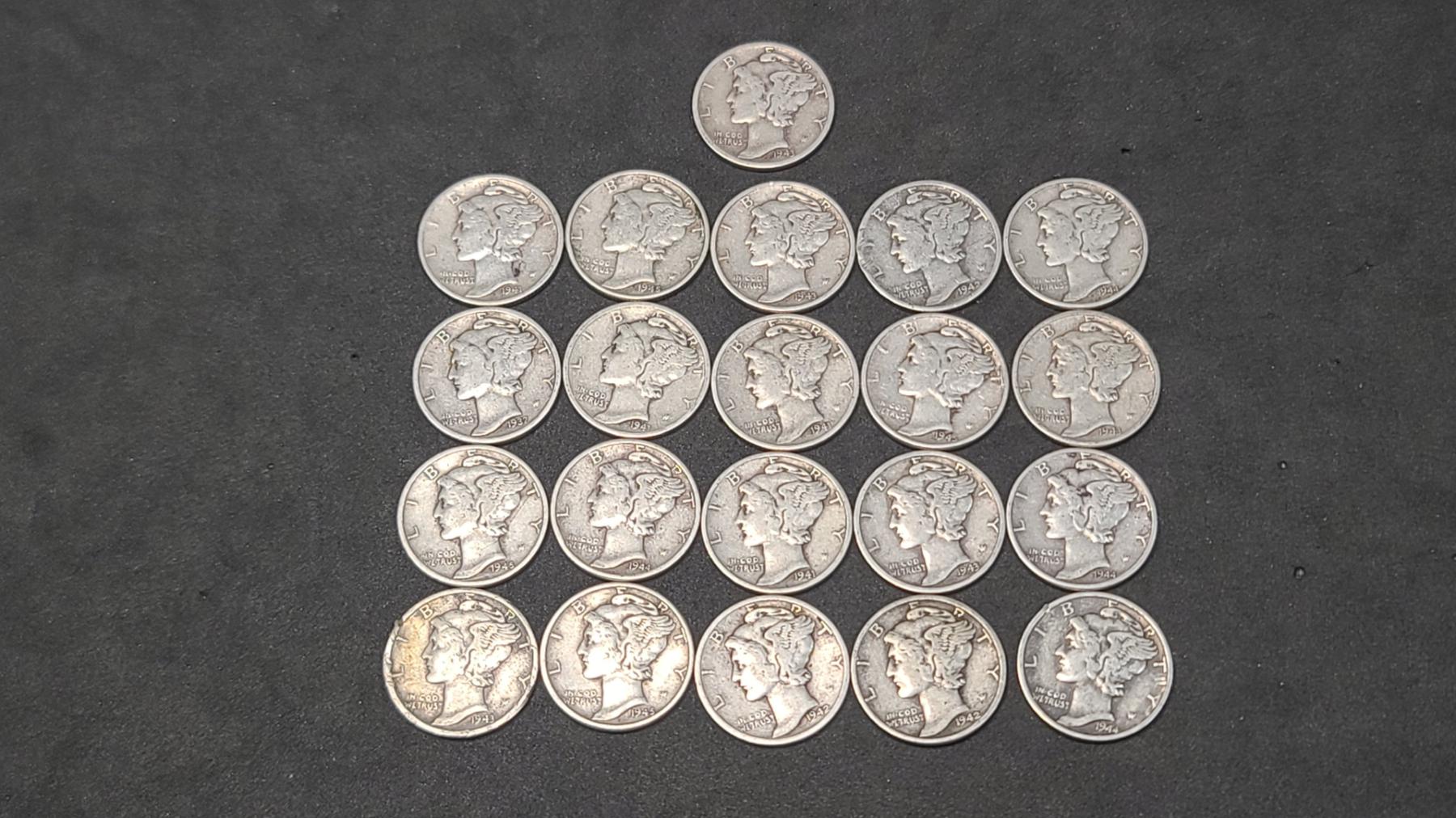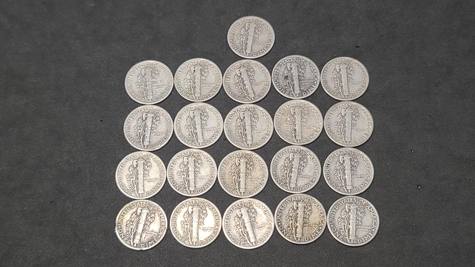 Assorted Years 90% Silver Mercury Head Dimes - Face Value: $2.10