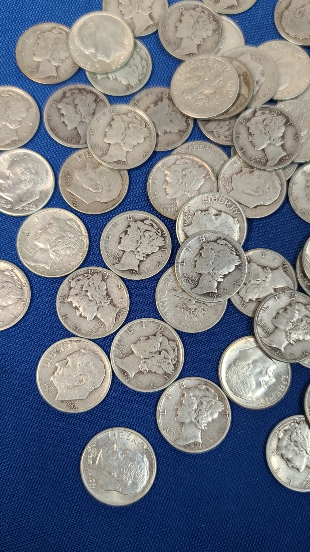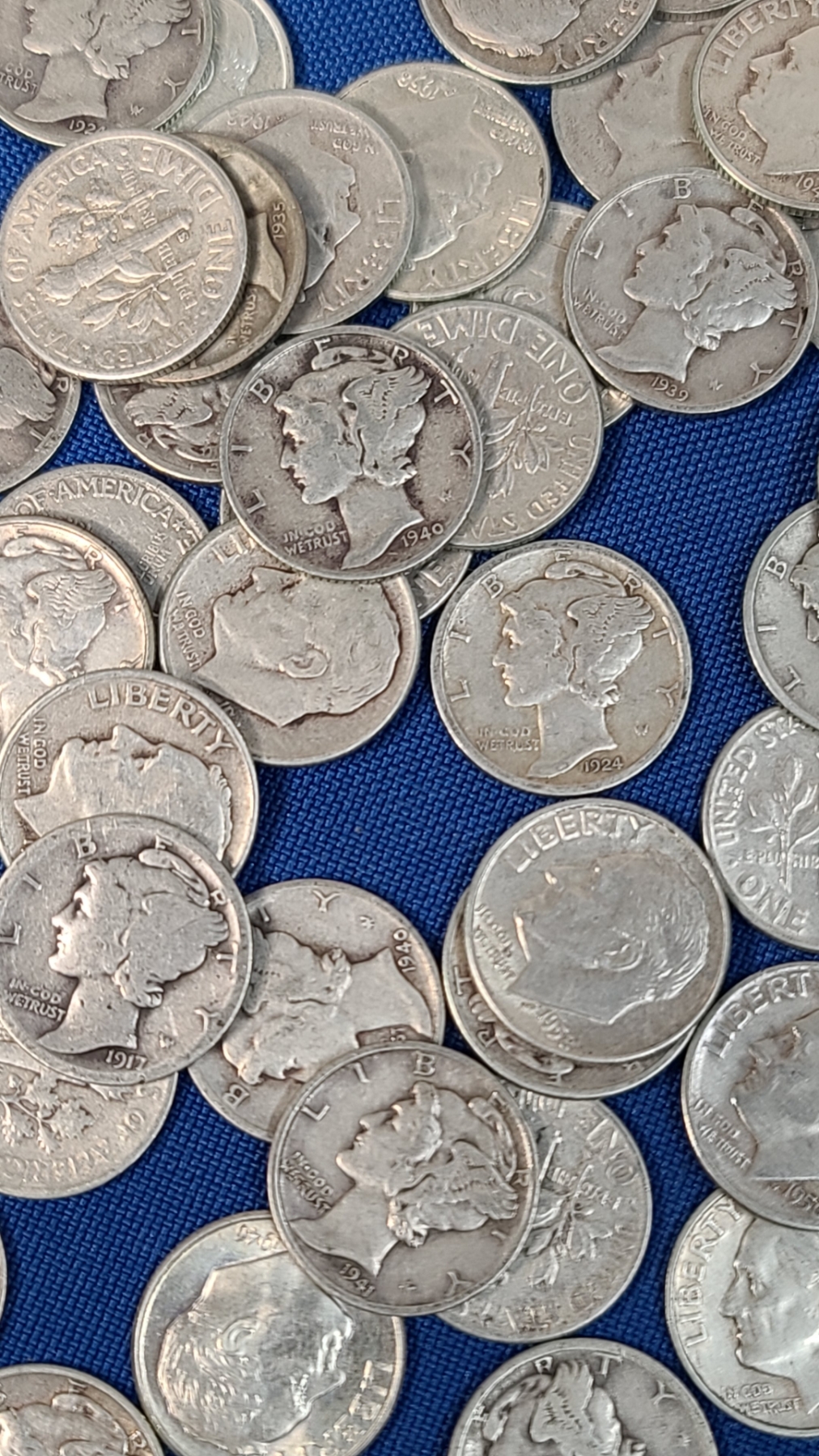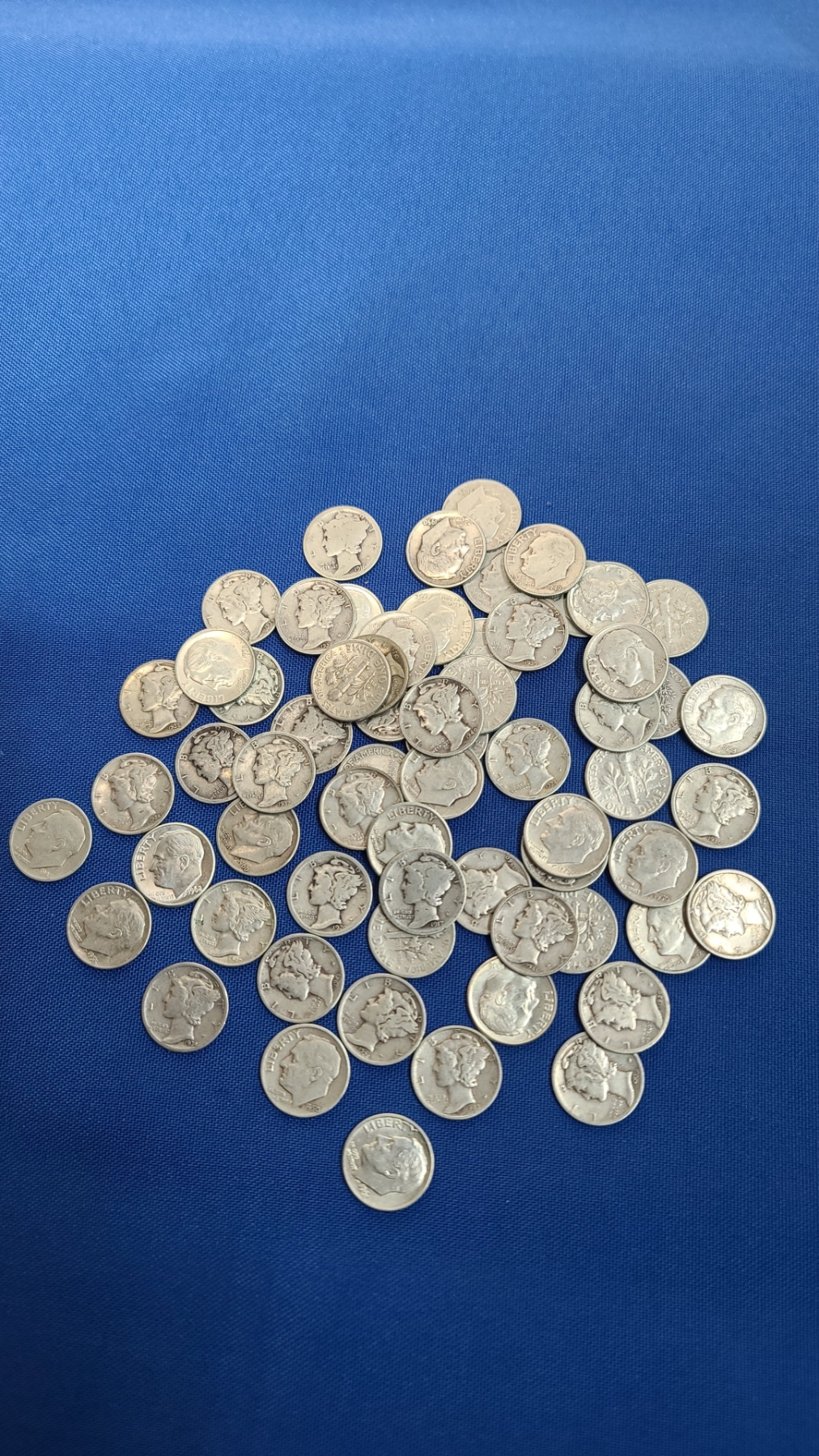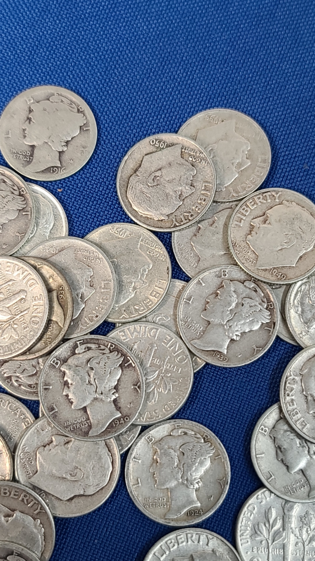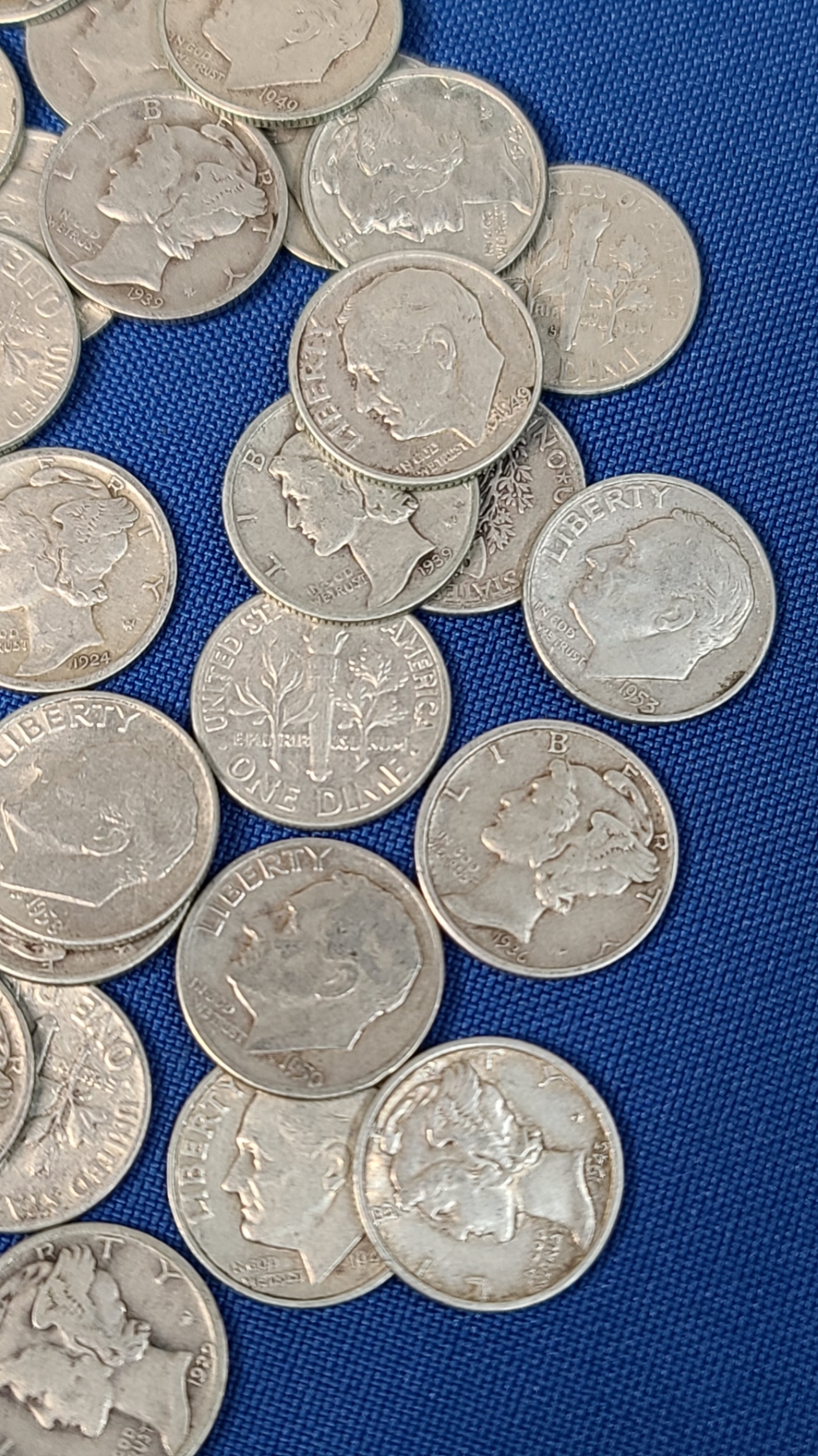 Assorted Years 90% Silver Mercury Head/Roosevelt Dimes - Face Value: $6.40