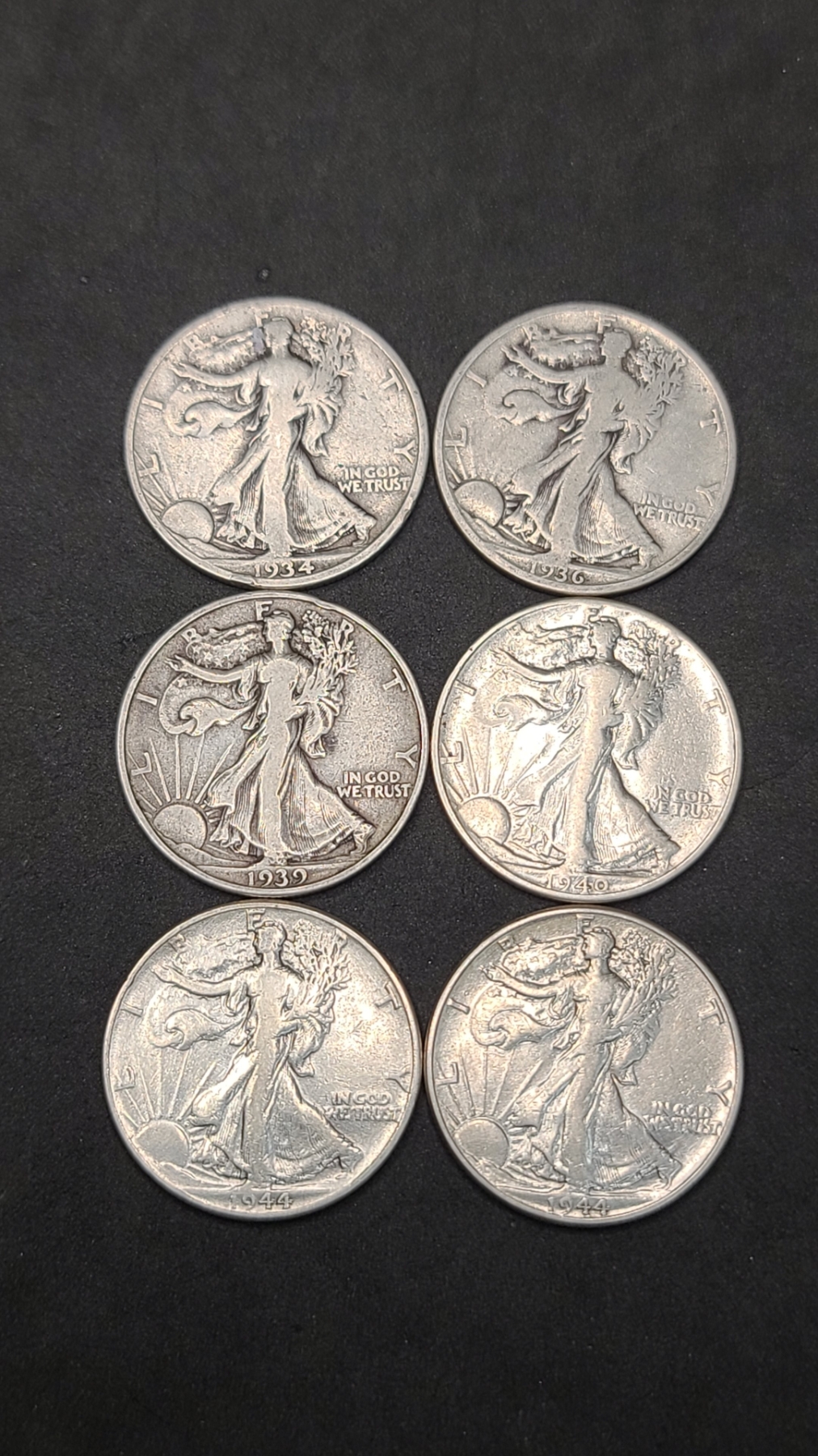 Assorted Years 90% Silver Walking Liberty Half Dollars - Face Value: $3.00