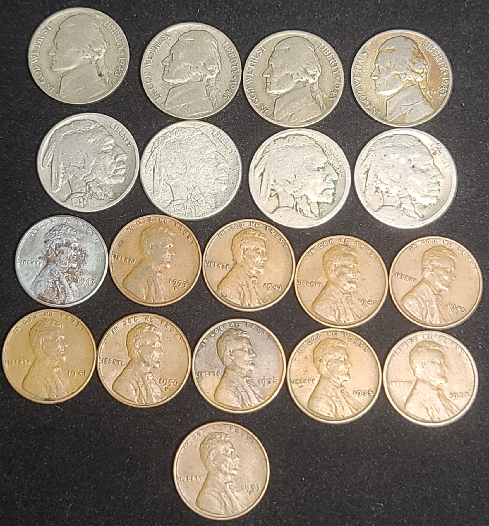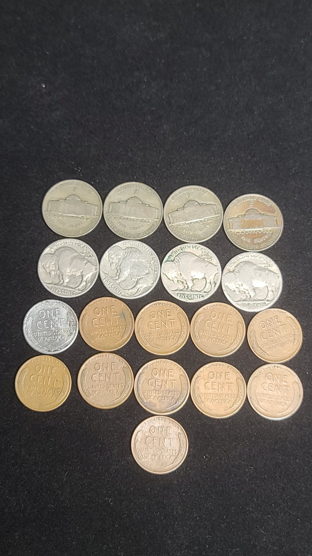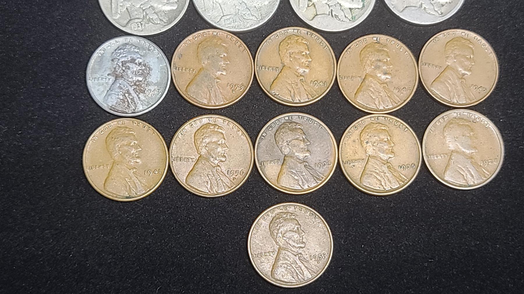 Assorted Years Jefferson 35% Silver War-Time Nickels, Buffalo Nickels & Wheat Pennies - Face Value: $0.51
