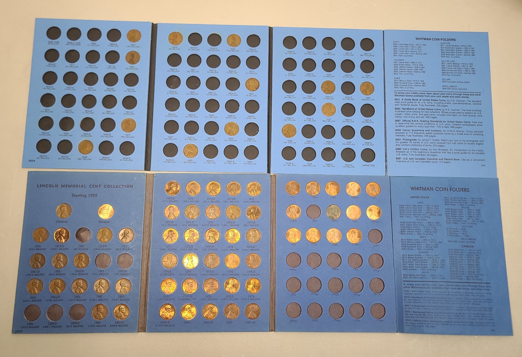Assorted Years Lincoln Cents/ Lincoln Memorial Cents In Whitman Coin Collection Books - Face Value: $0.72