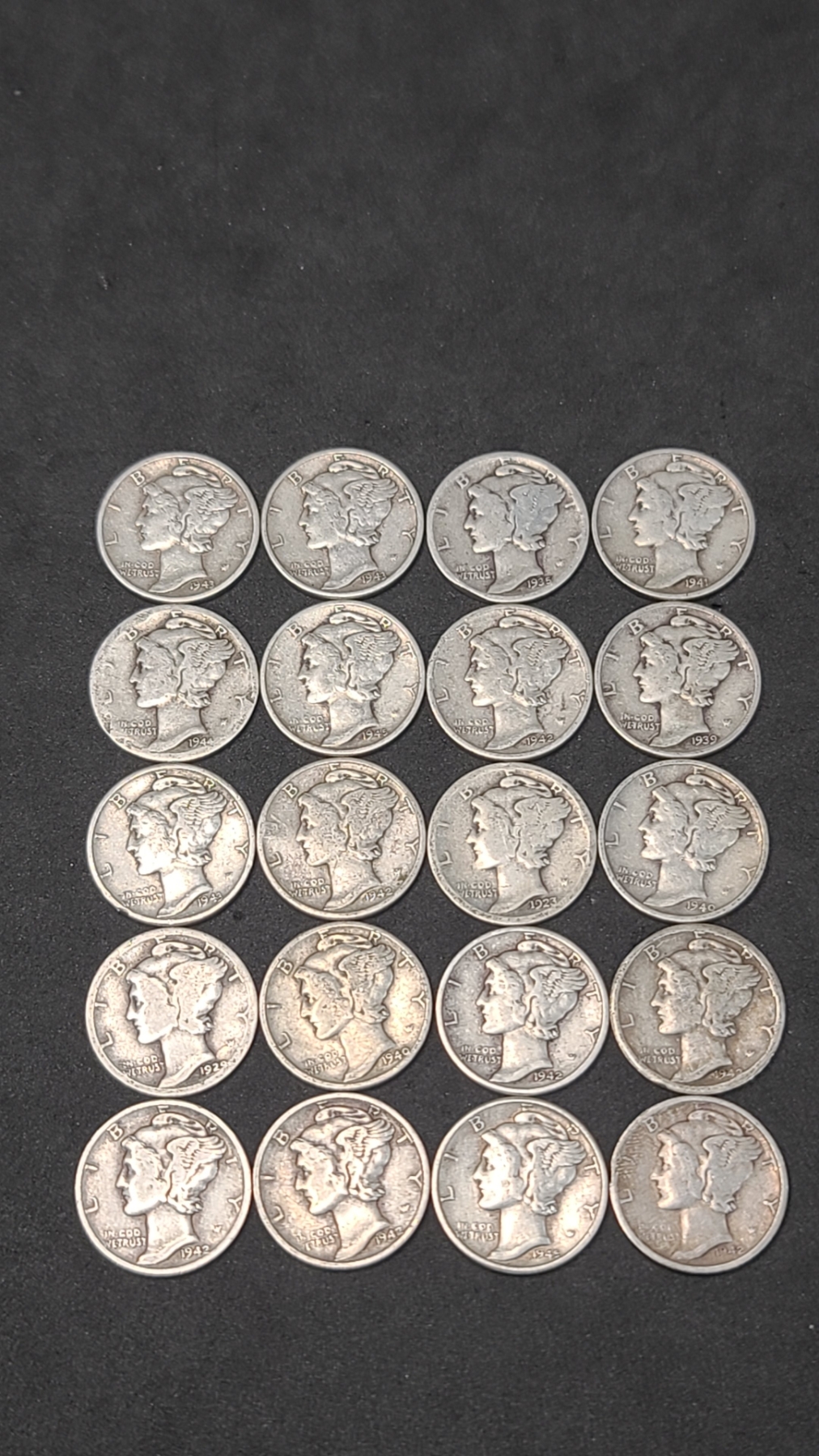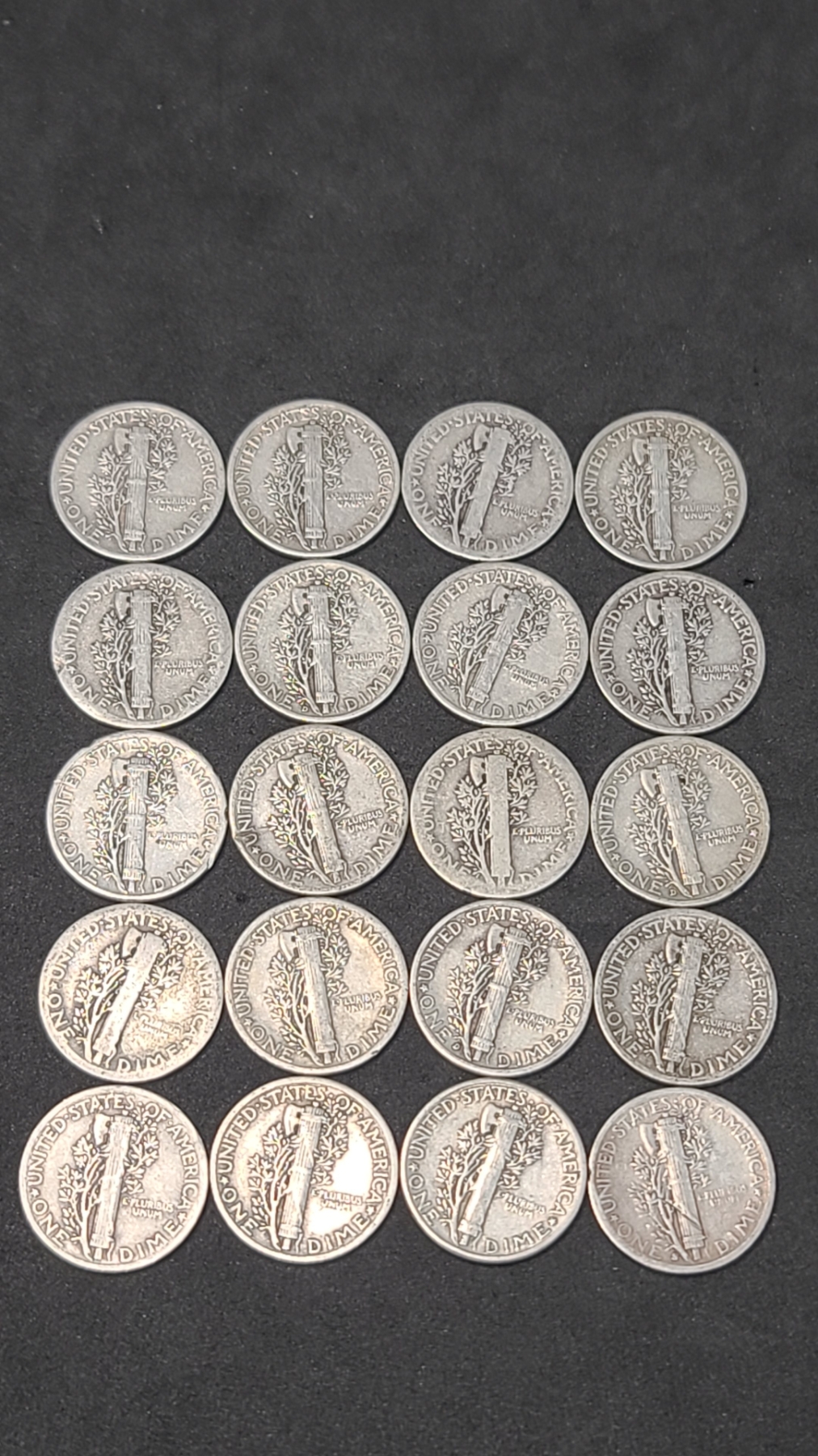 Assorted Years & Mint Marks 90% Silver Mercury Head Dimes - Face Value: $2.00