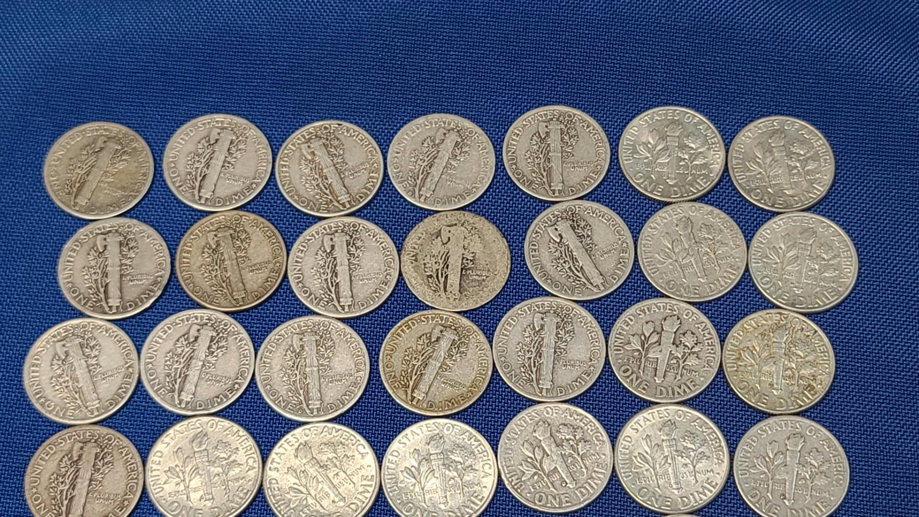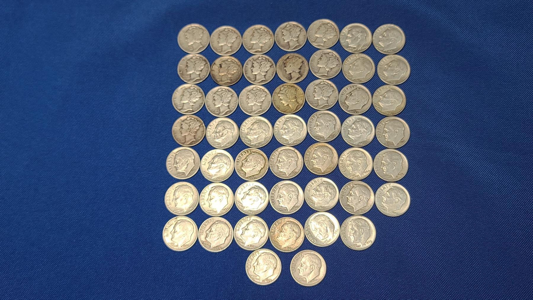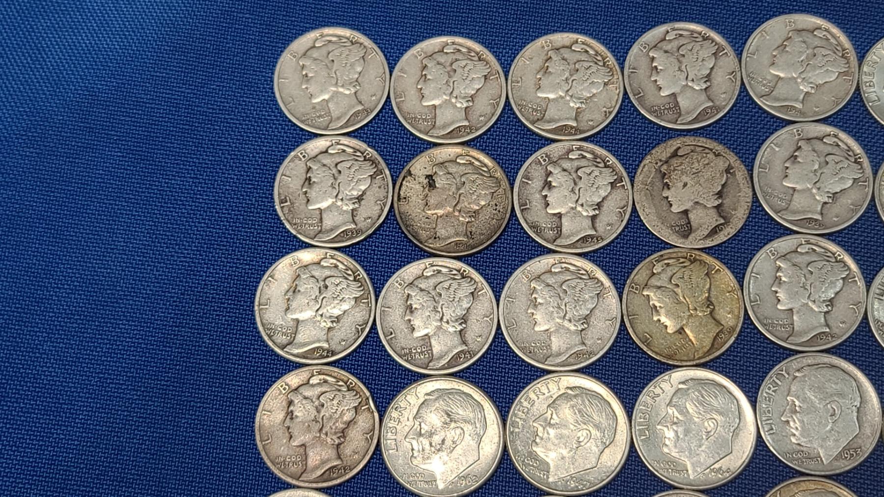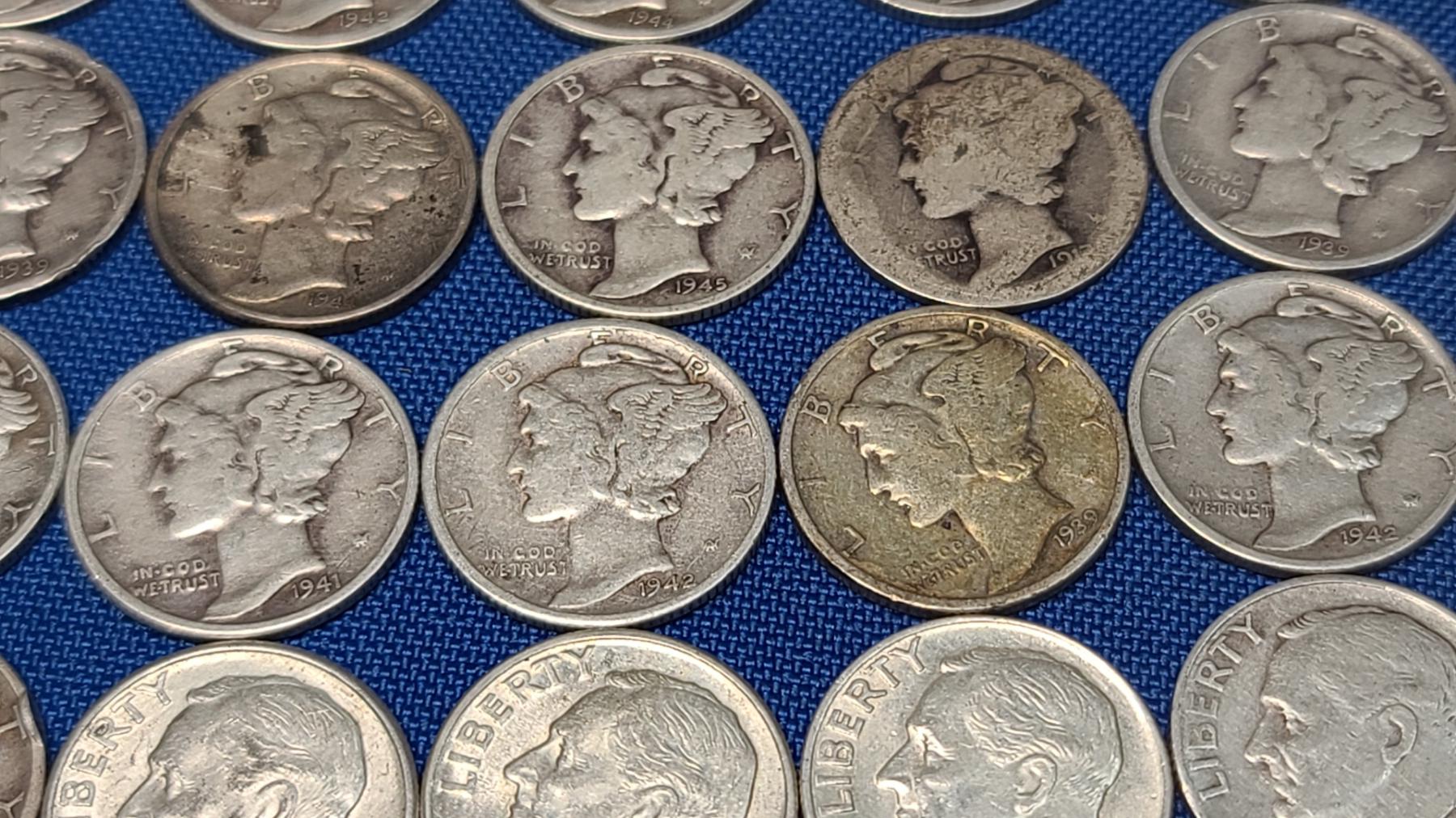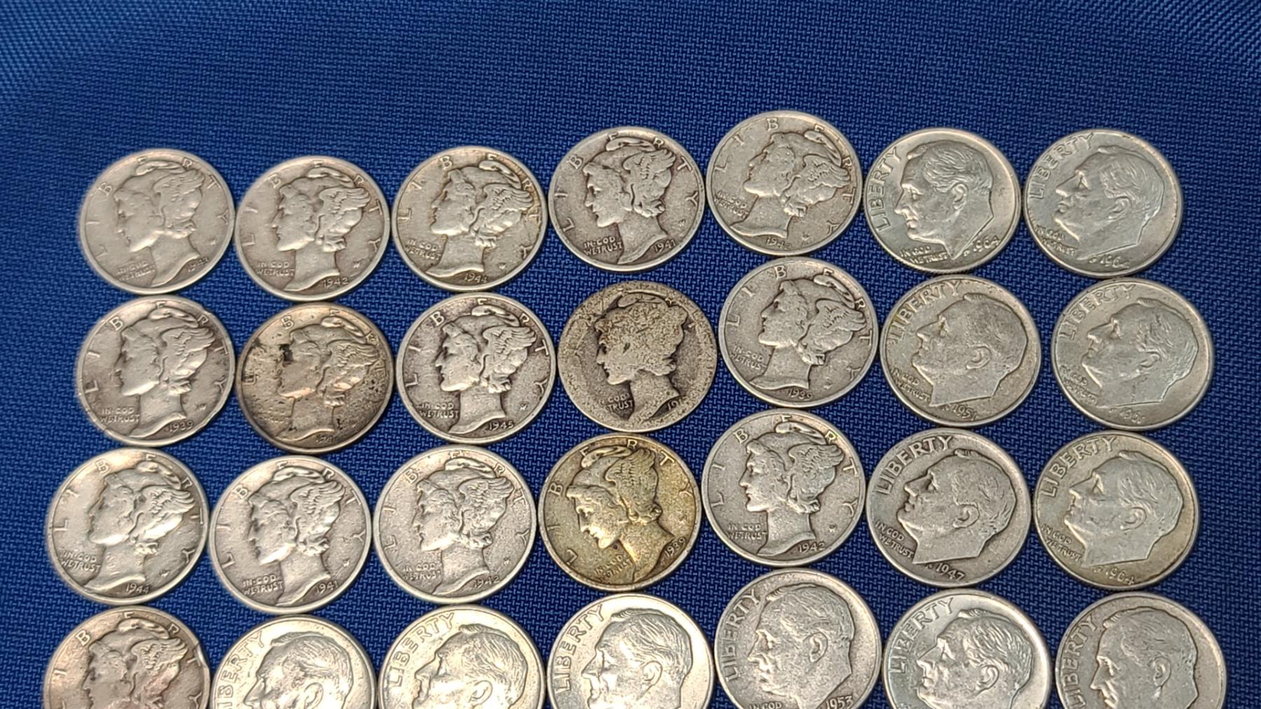 Assorted Years & Mint Marks 90% Silver Mercury Head/Roosevelt Dimes - Face Value: $5.00