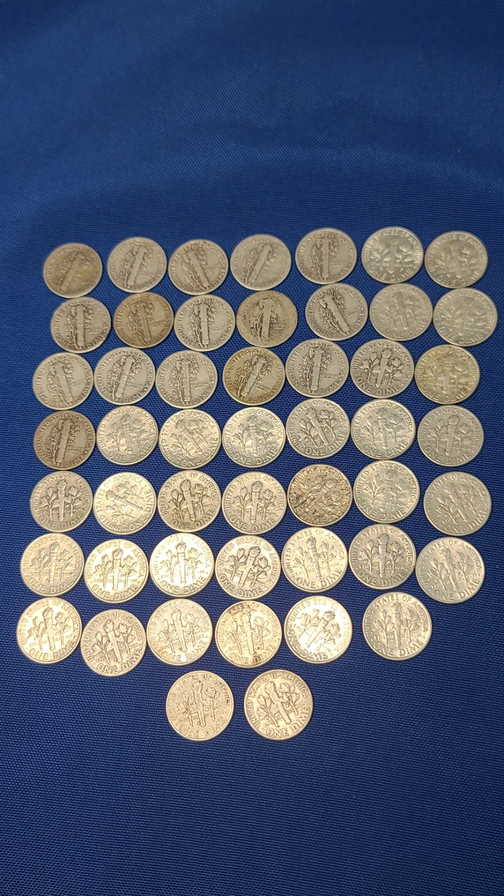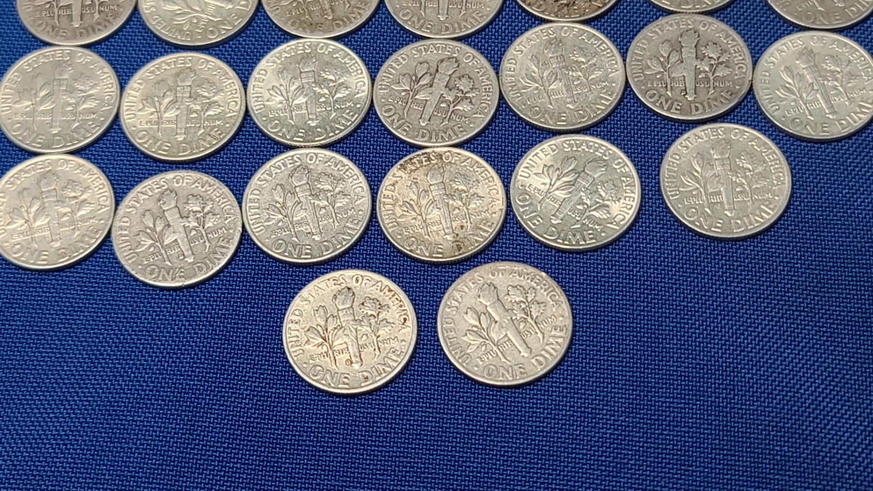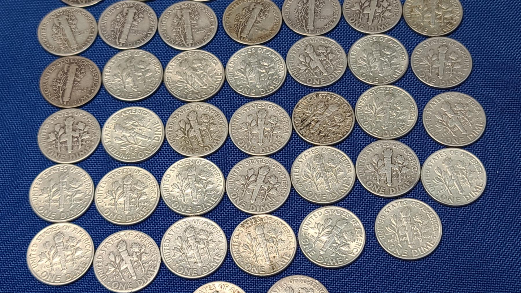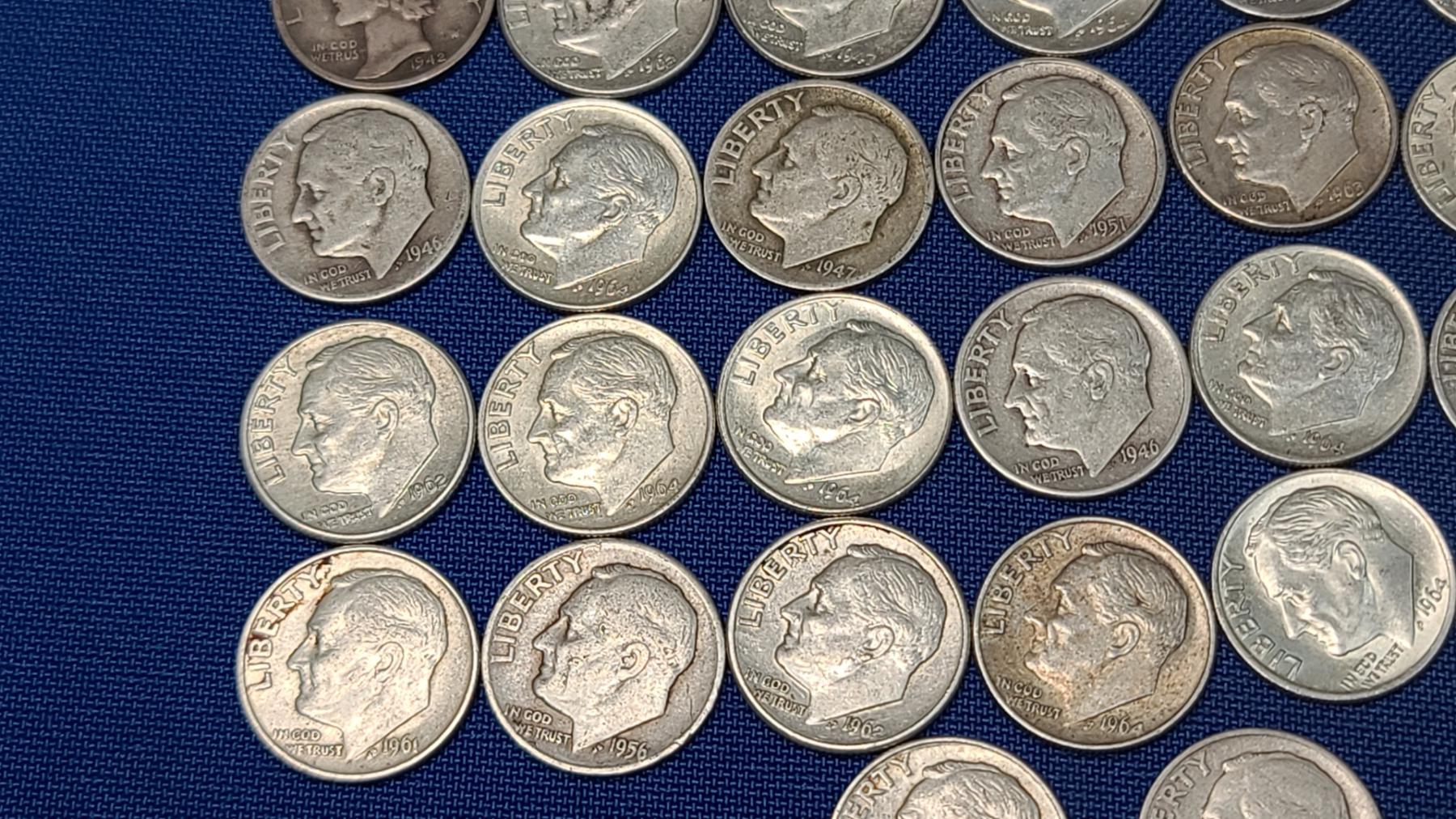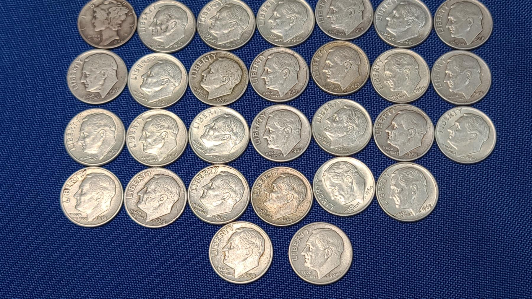 Assorted Years & Mint Marks 90% Silver Mercury Head/Roosevelt Dimes - Face Value: $5.00