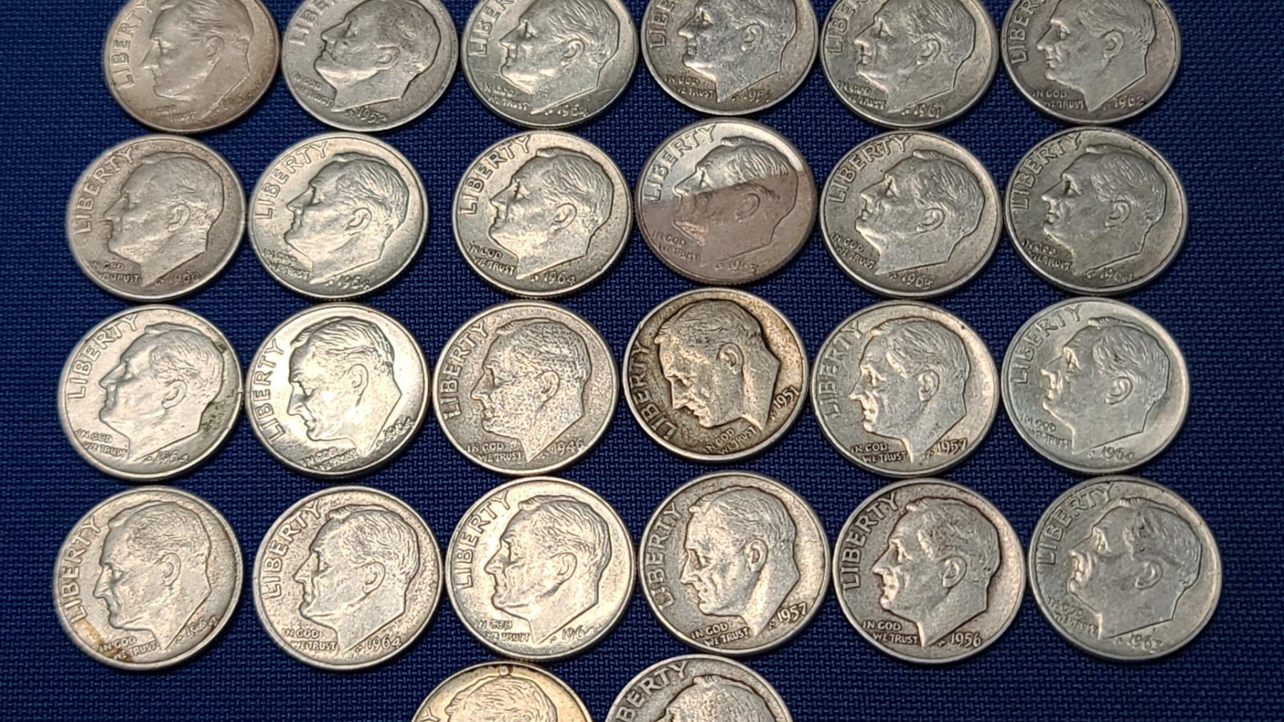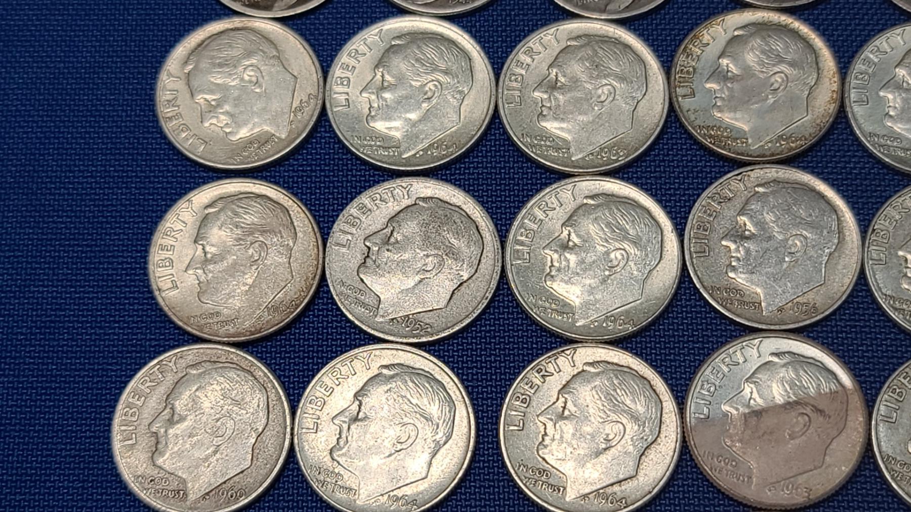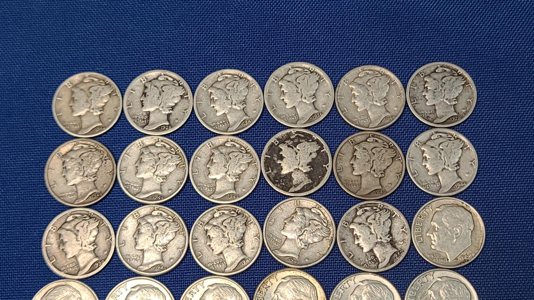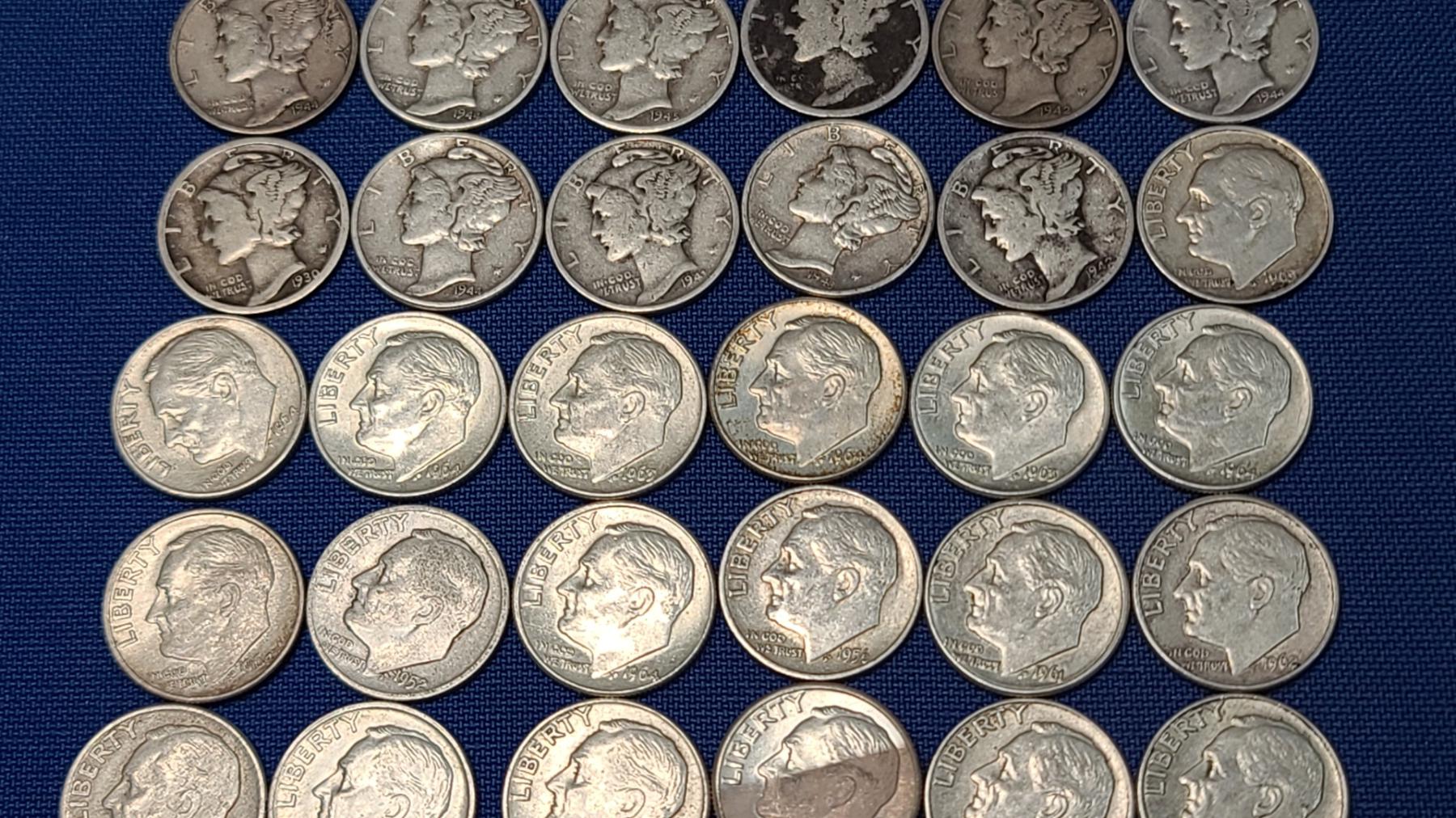 Assorted Years & Mint Marks 90% Silver Mercury Head/Roosevelt Dimes - Face Value: $5.00