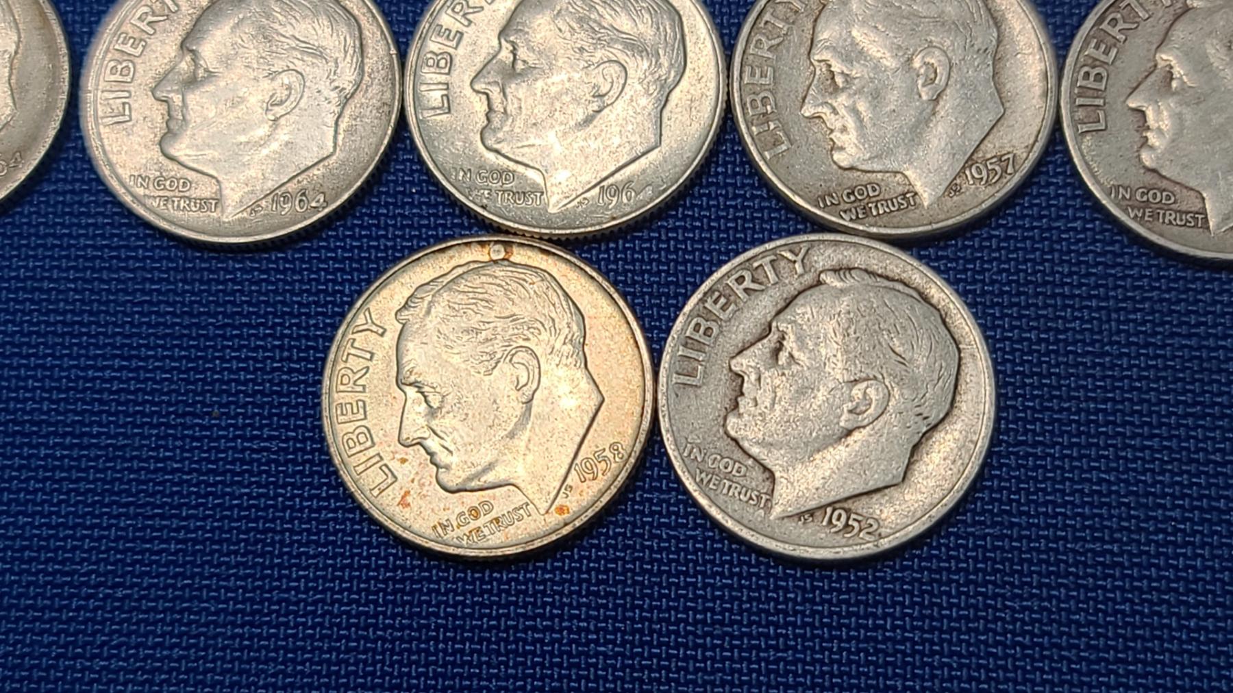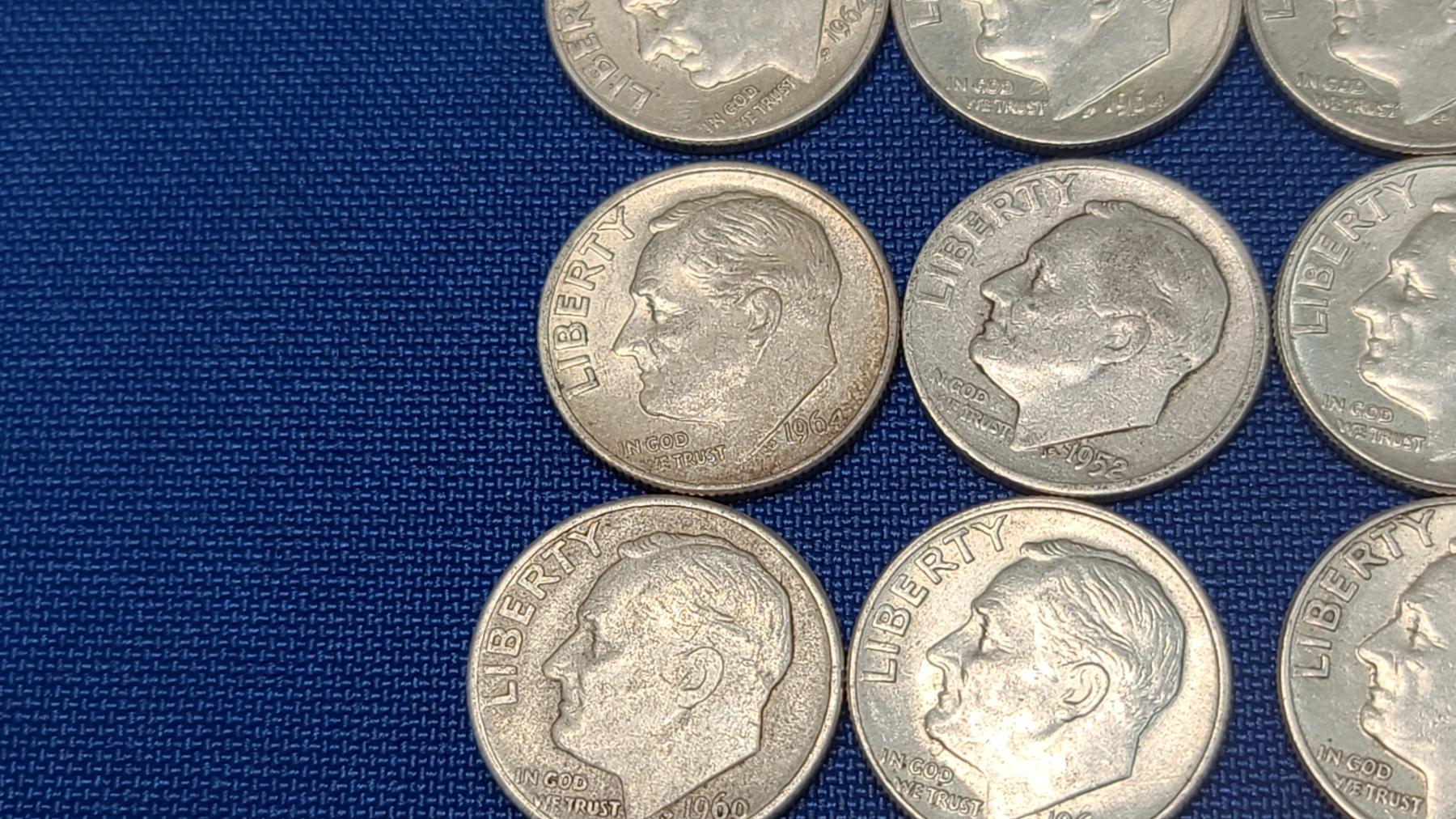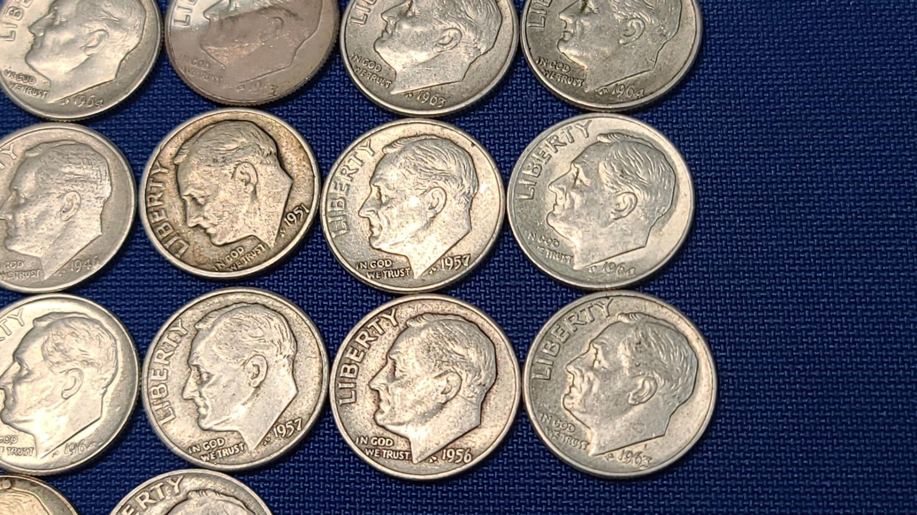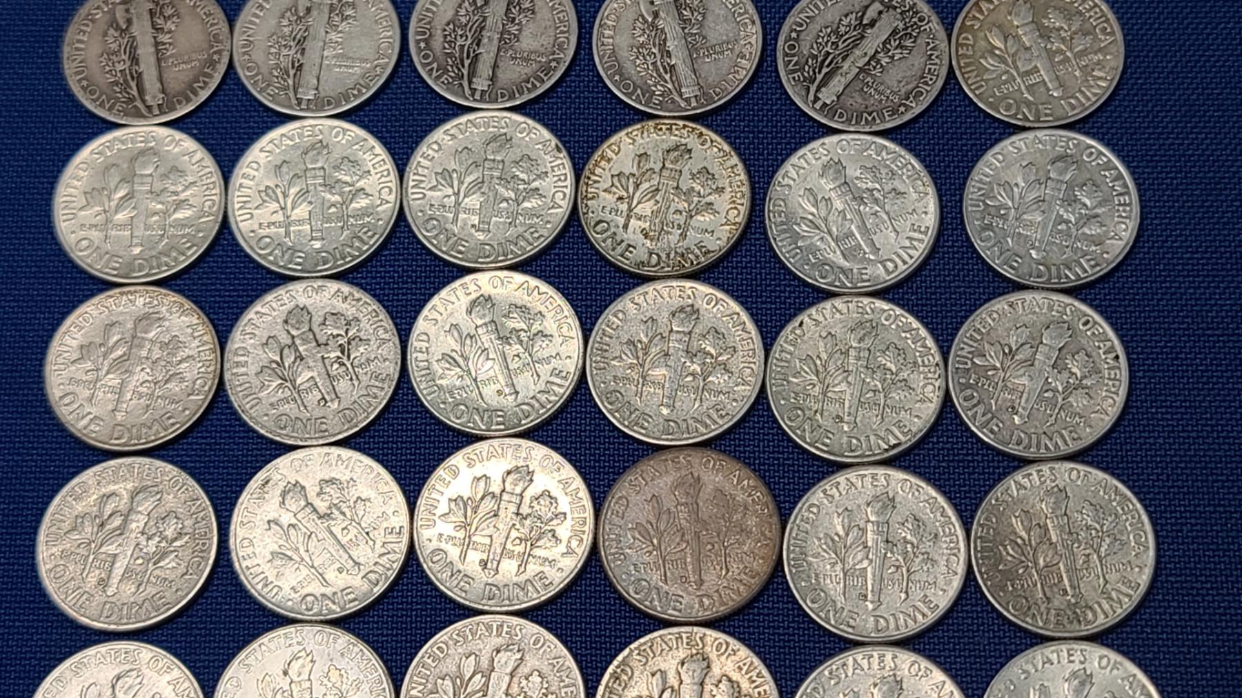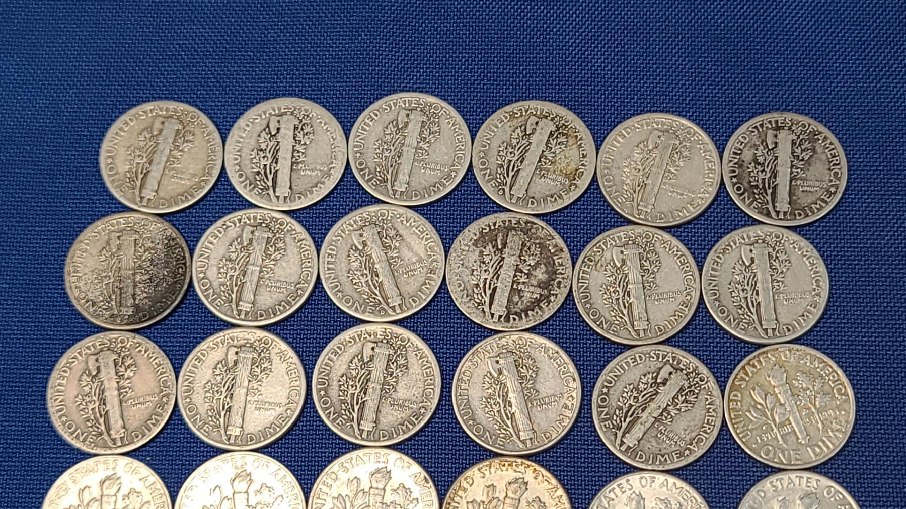Assorted Years & Mint Marks 90% Silver Mercury Head/Roosevelt Dimes - Face Value: $5.00