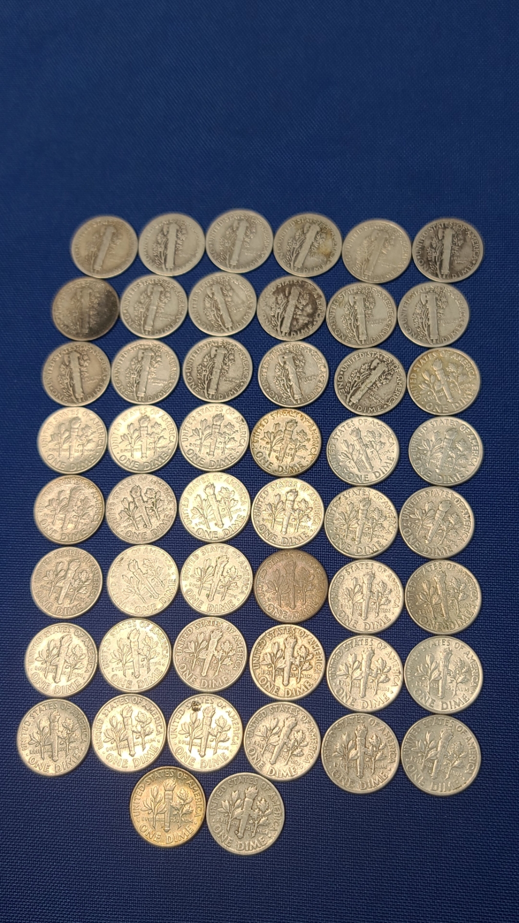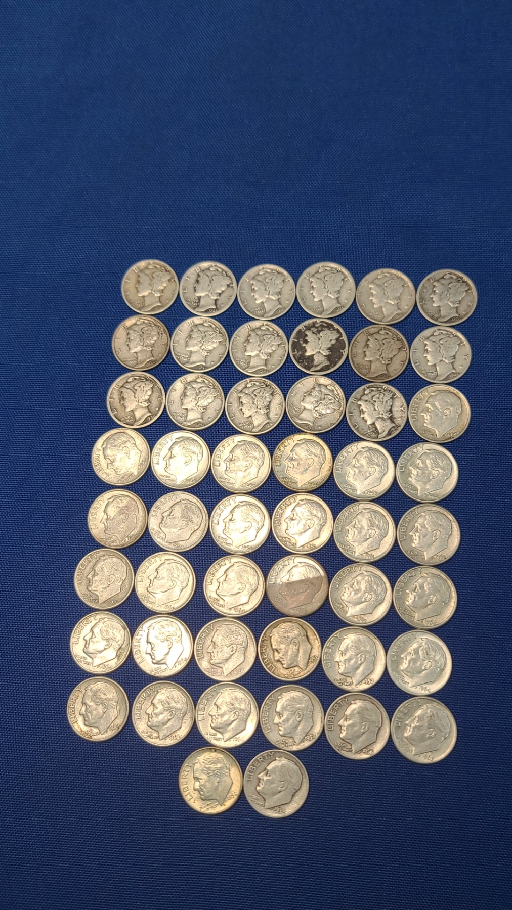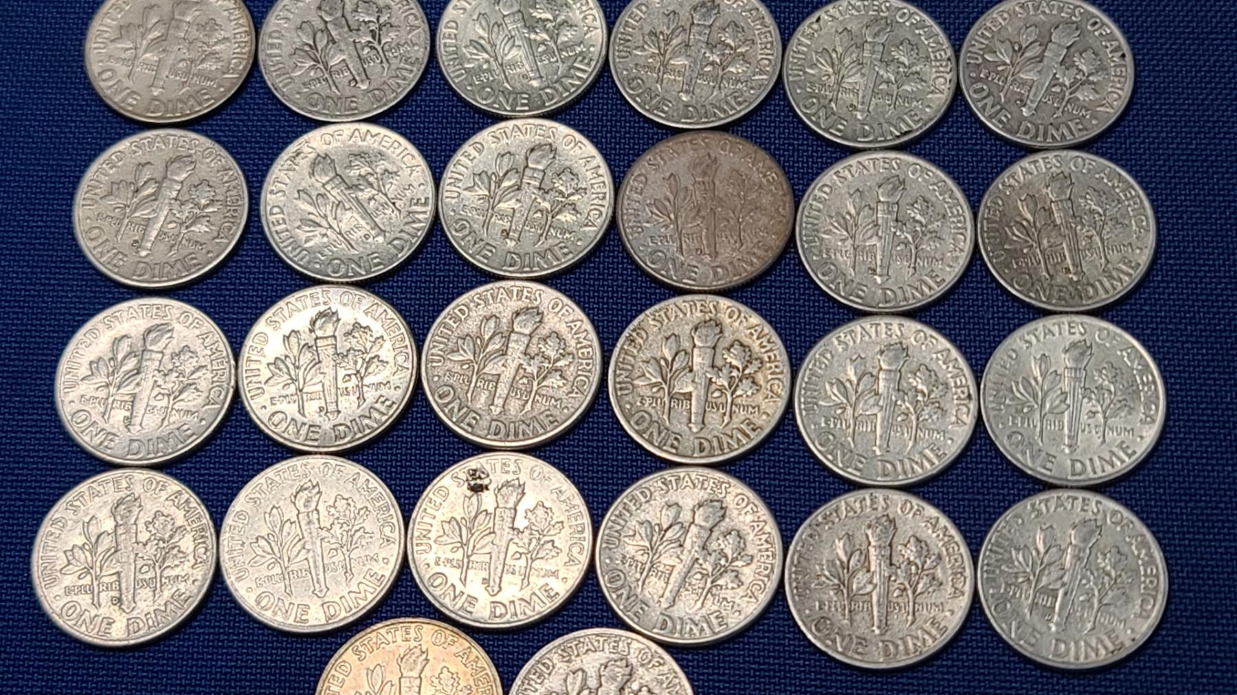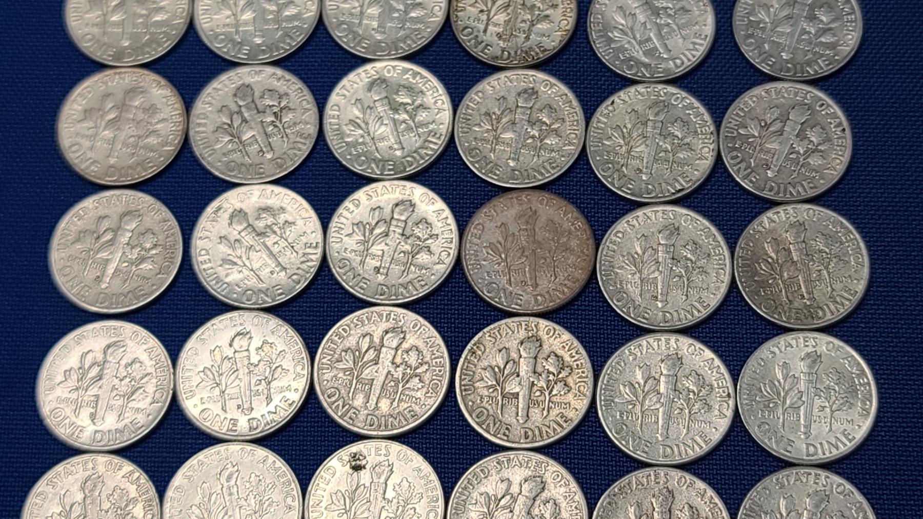 Assorted Years & Mint Marks 90% Silver Mercury Head/Roosevelt Dimes - Face Value: $5.00