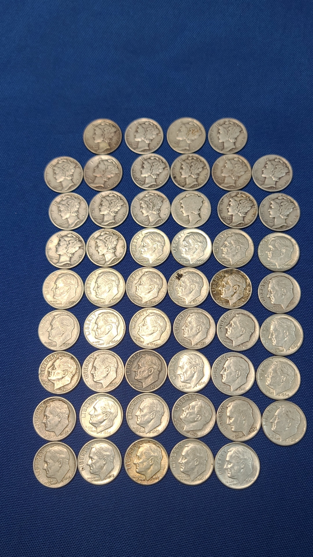 Assorted Years & Mint Marks 90% Silver Mercury Head/Roosevelt Dimes - Face Value: $5.20