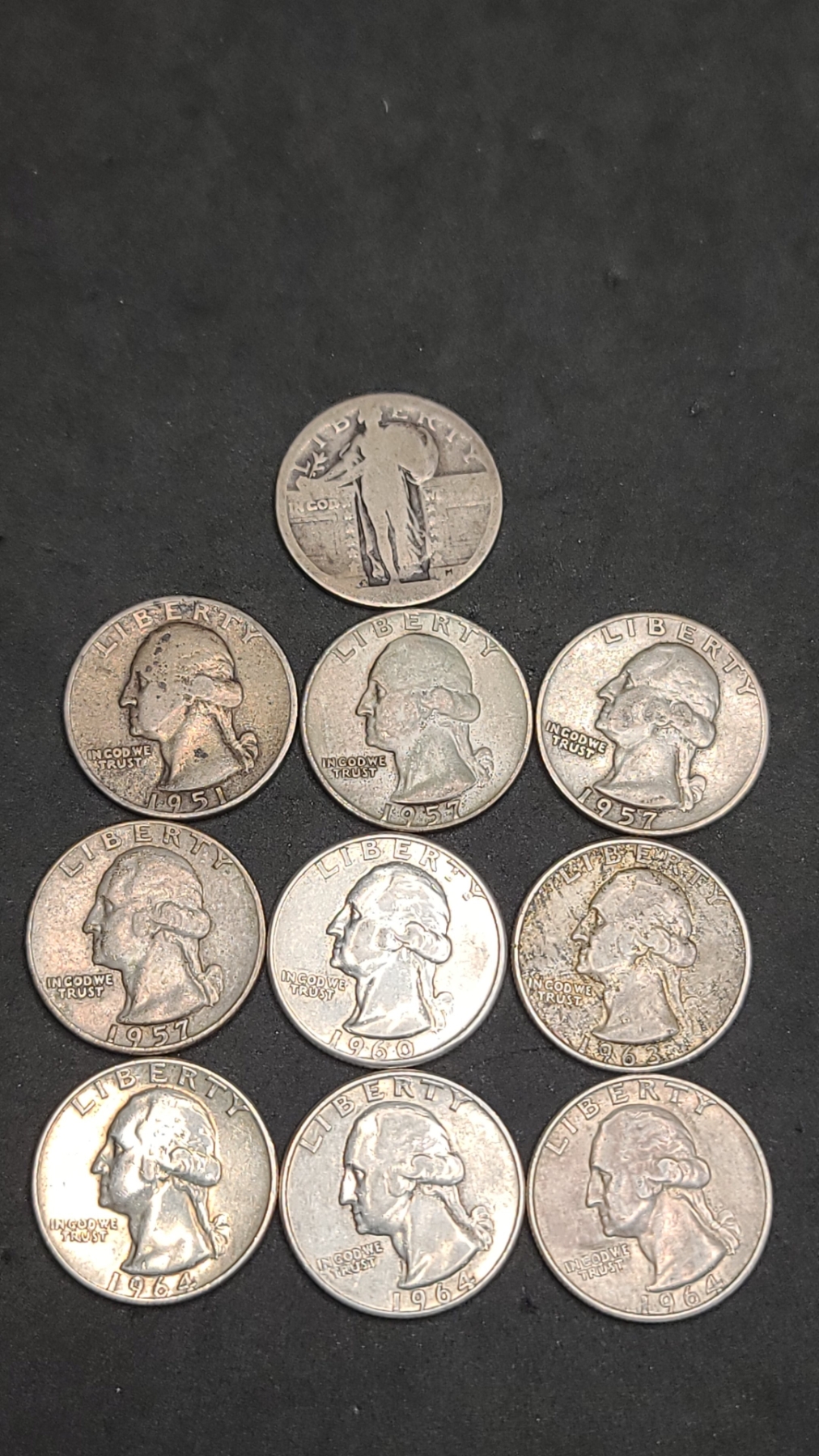 Assorted Years/Mint Marks 90% Silver Standing Liberty & Washington Head Quarters - Face Value: $2.50