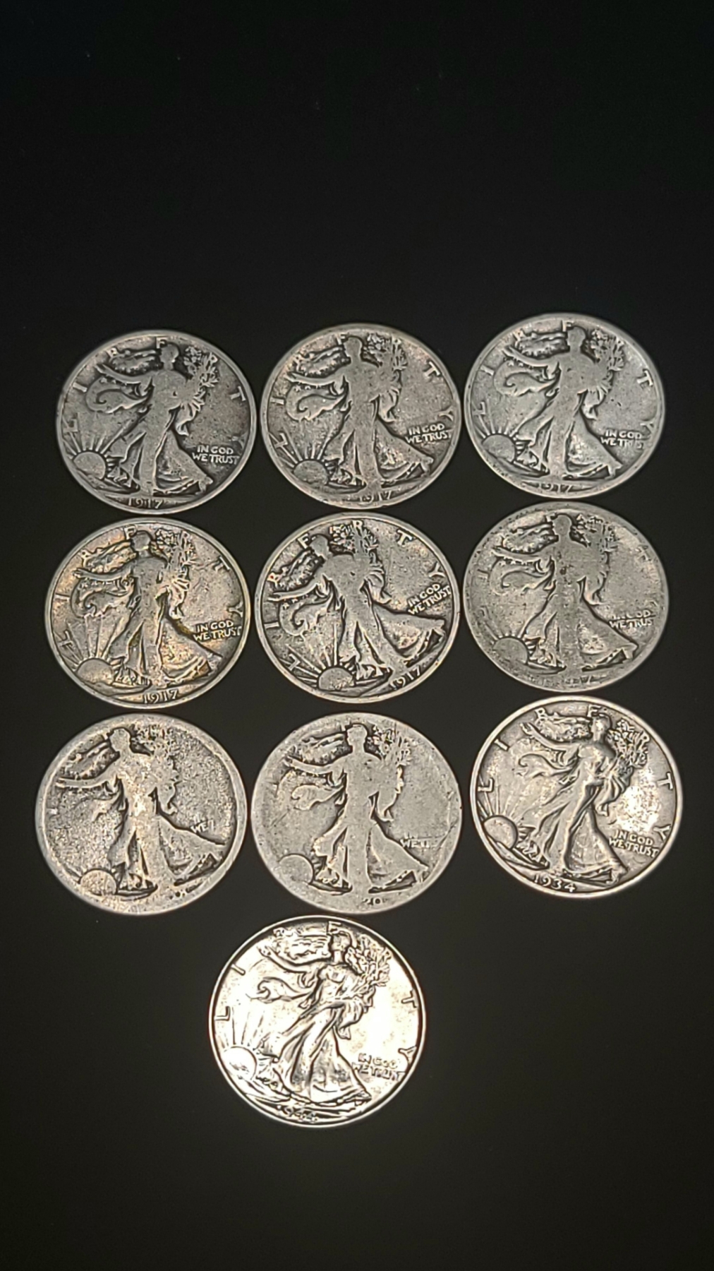 Assorted Years & Mint Marks 90% Silver Walking Liberty Half Dollars - Face Value: $5.00