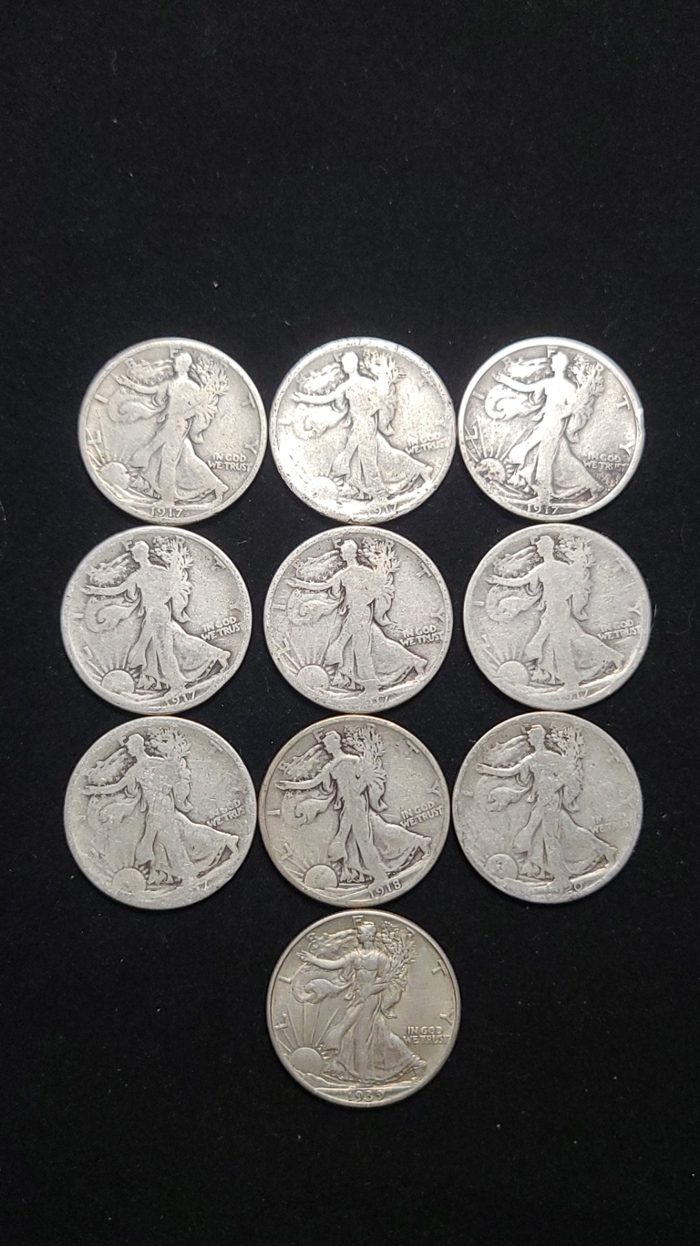 Assorted Years & Mint Marks 90% Silver Walking Liberty Half Dollars - Face Value: $5.00