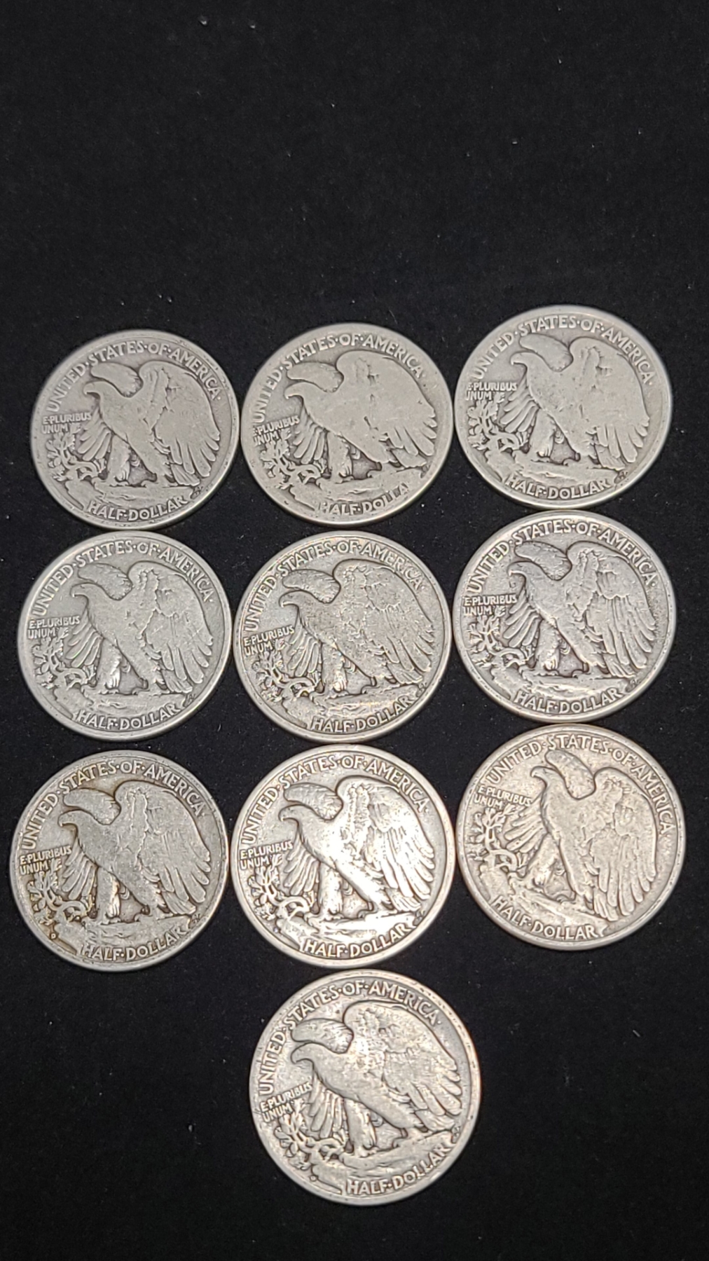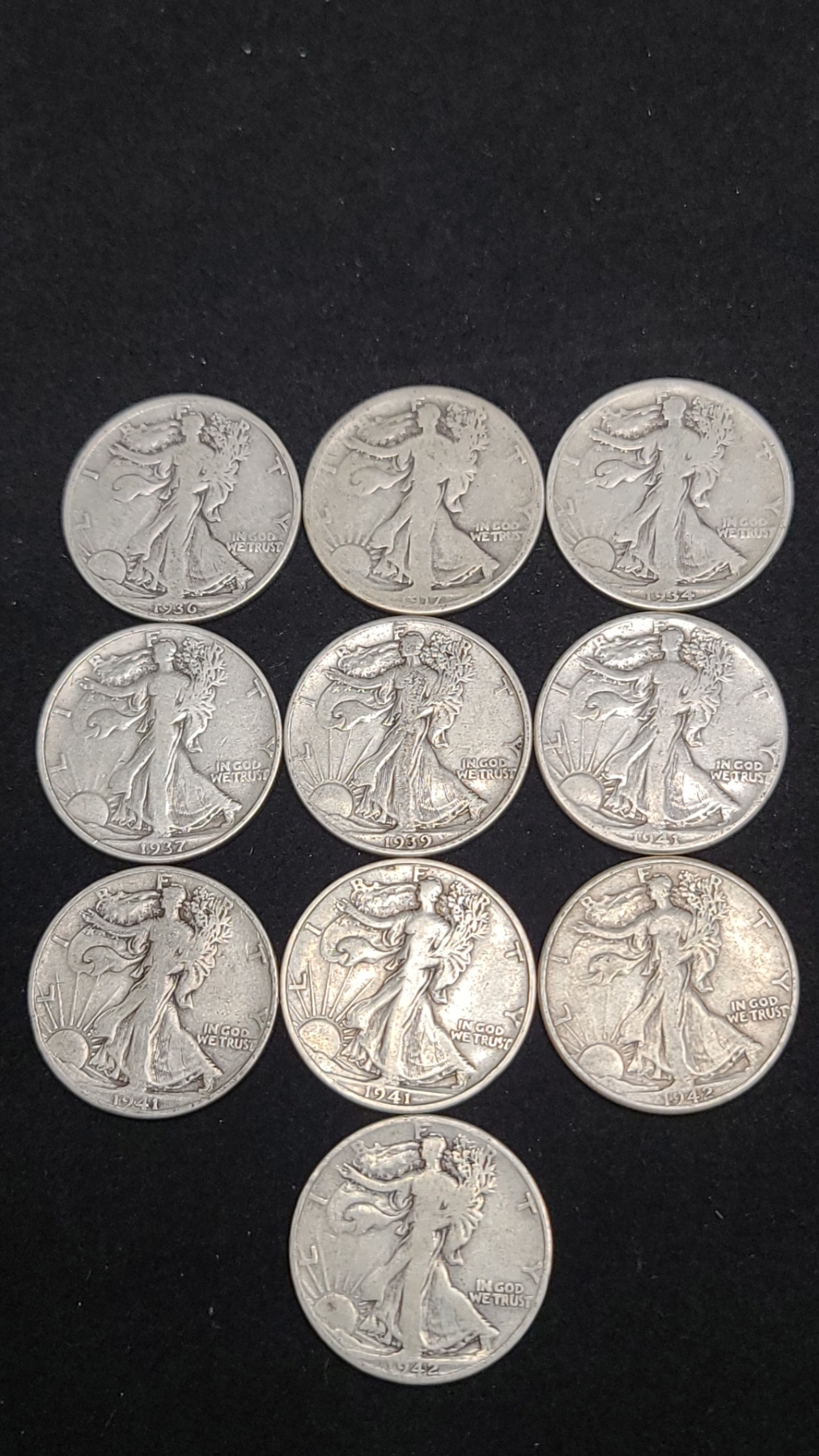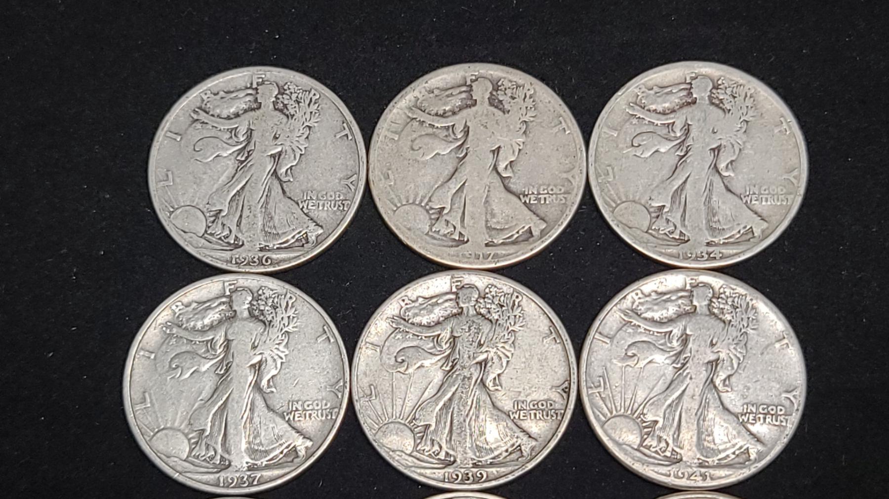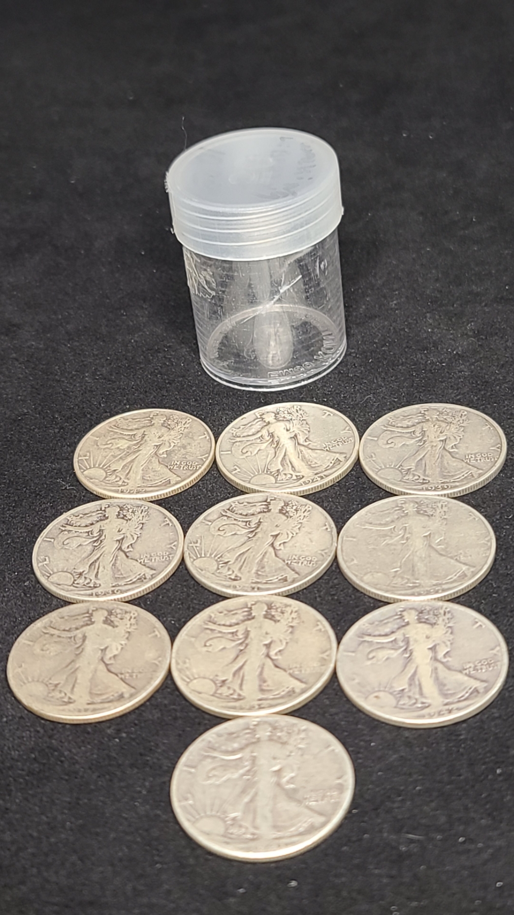 Assorted Years/Mint Marks 90% Silver Walking Liberty Half Dollars - Face Value: $5.00