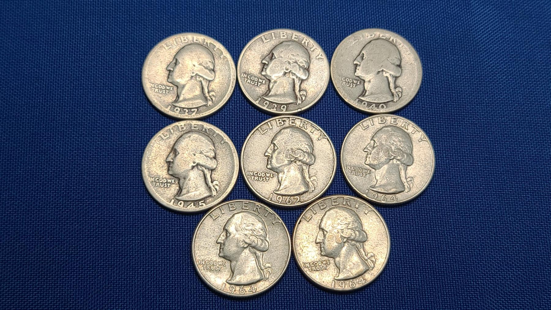 Assorted Years & Mint Marks 90% Silver Washington Head - Face Value: $2.00