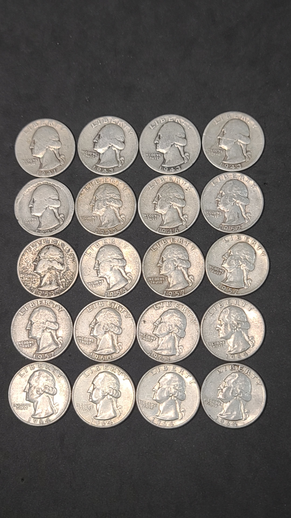 Assorted Years & Mint Marks 90% Silver Washington Head Quarters - Face Value: $5.00