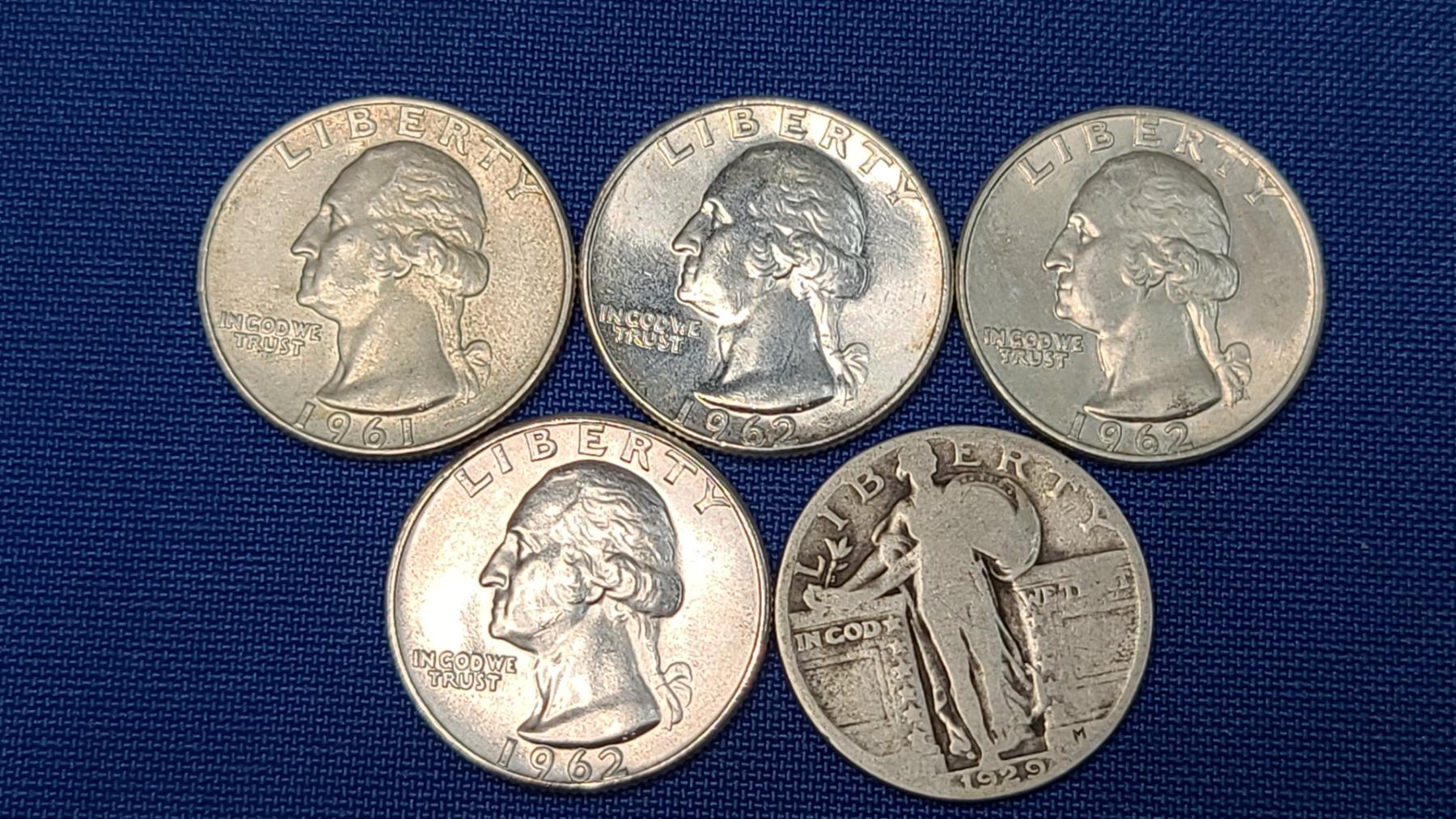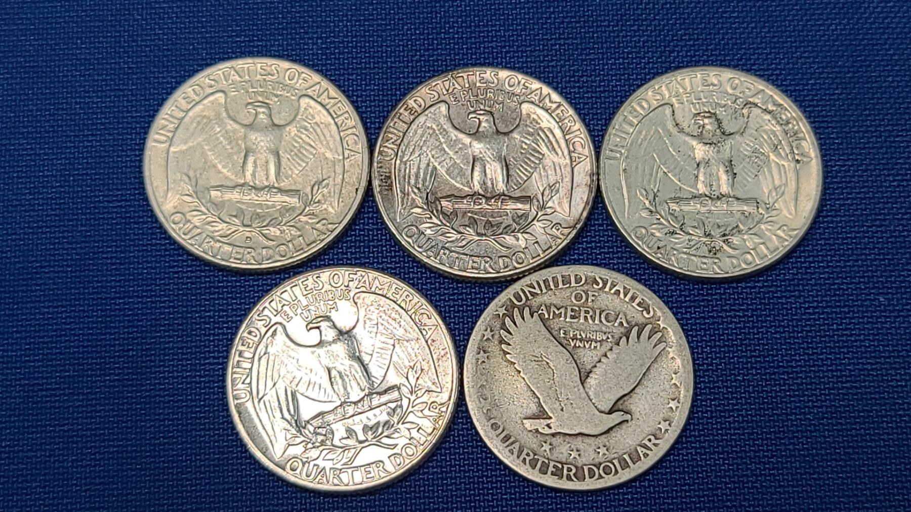 Assorted Years/Mint Marks 90% Silver Washington Head/Standing Liberty Quarters - Face Value: $1.25