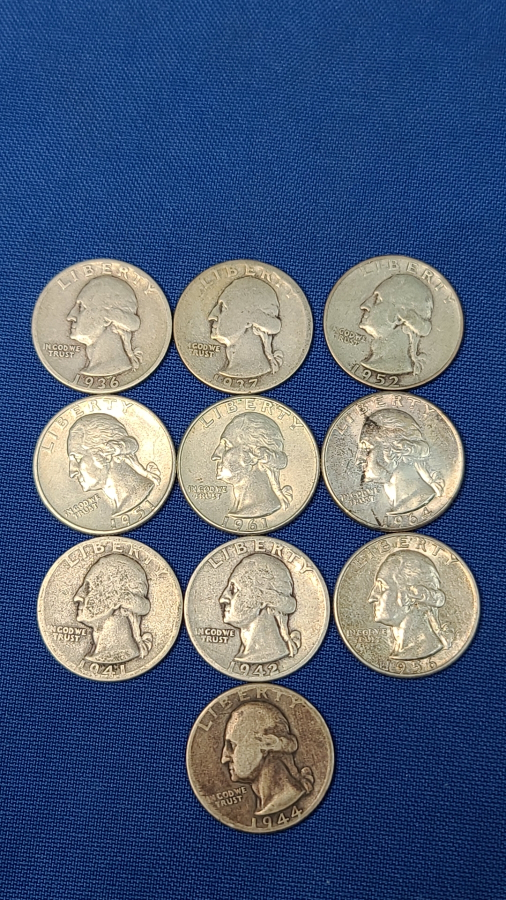 Assorted Years/Mint Marks 90% Silver Washington Head/Standing Liberty Quarters - Face Value: $2.50