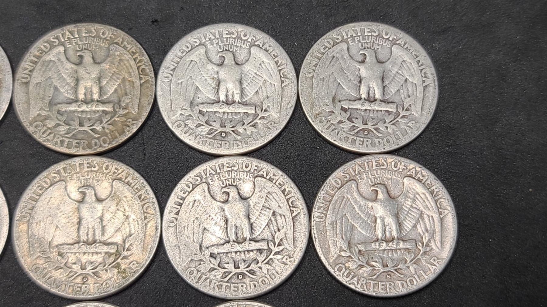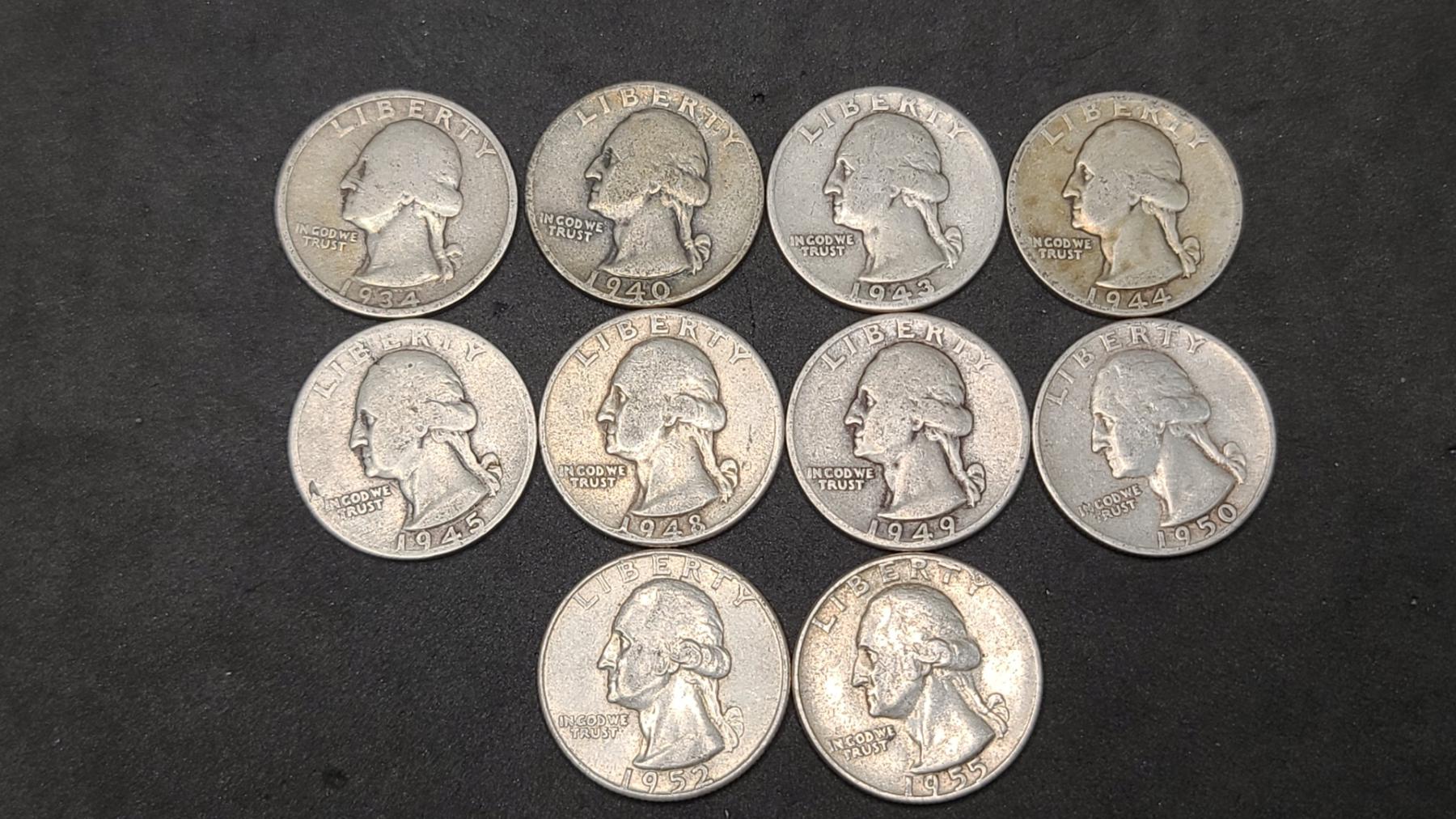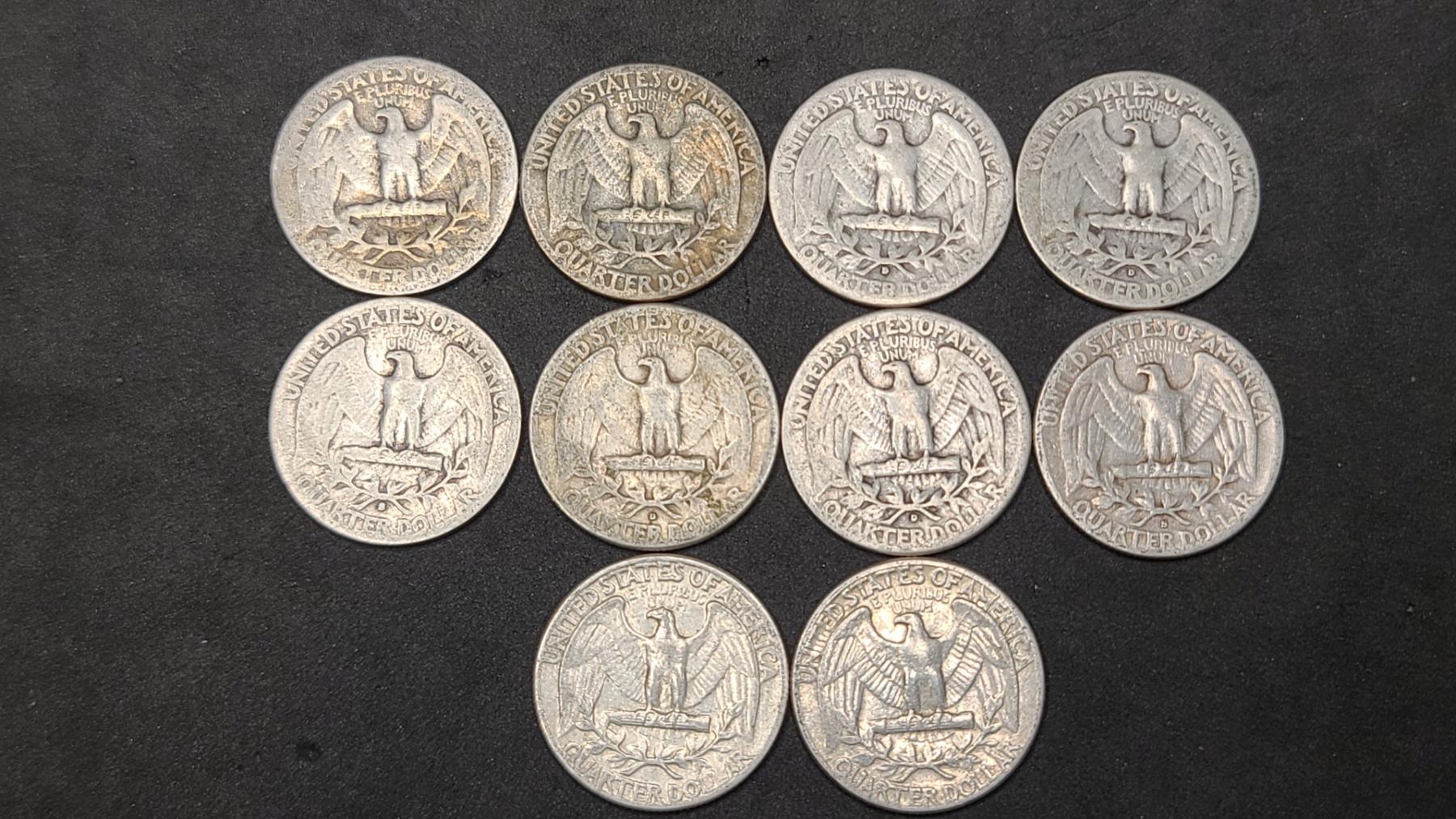 Assorted Years/Mint Marks 90% Silver Washington Quarters - Face Value: $2.50