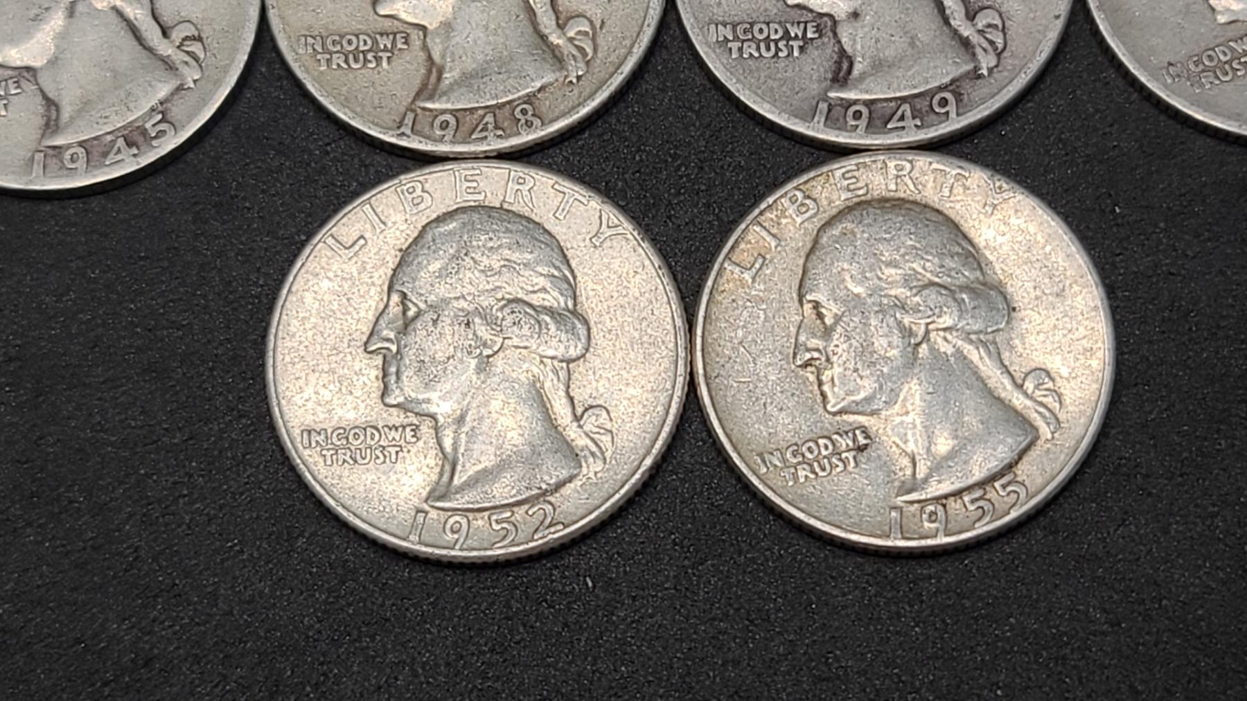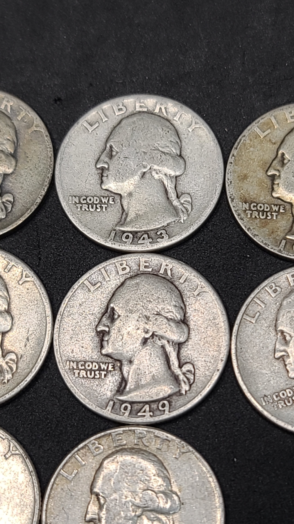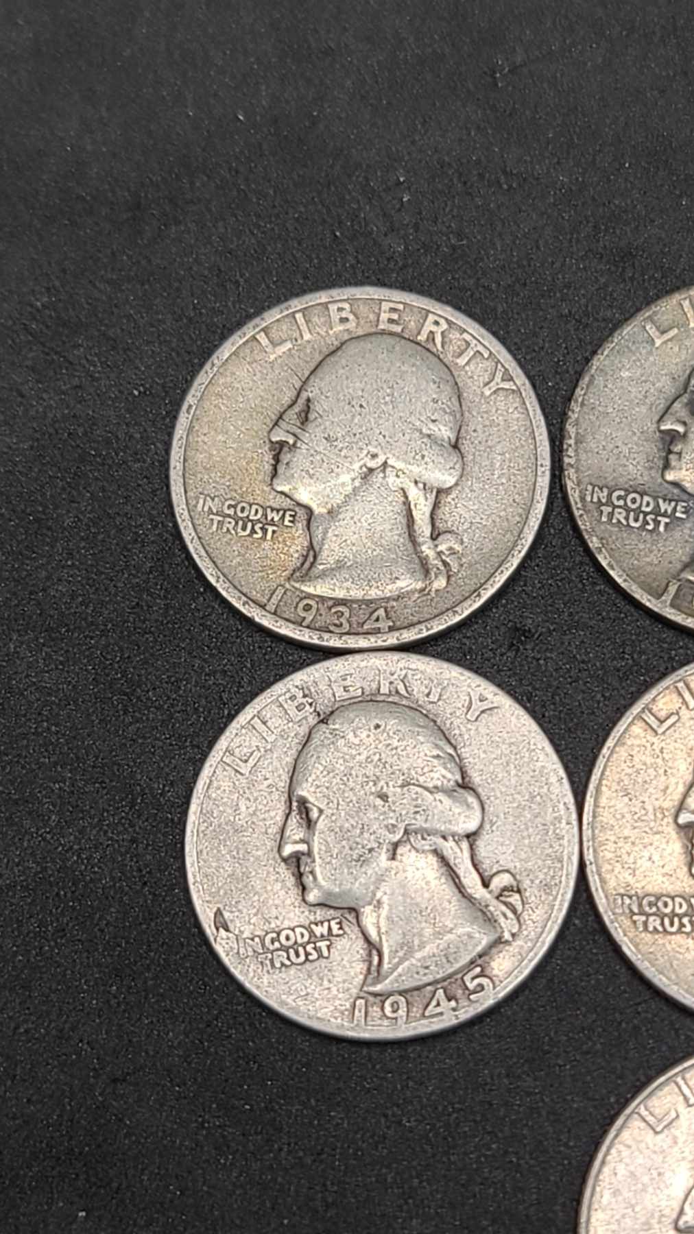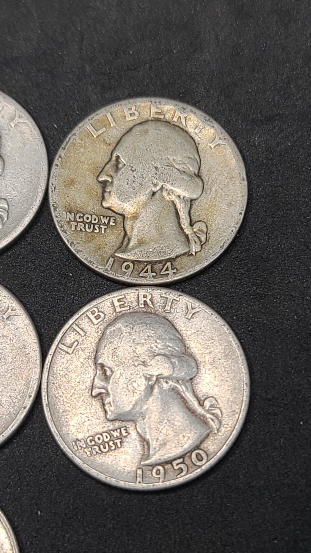 Assorted Years/Mint Marks 90% Silver Washington Quarters - Face Value: $2.50