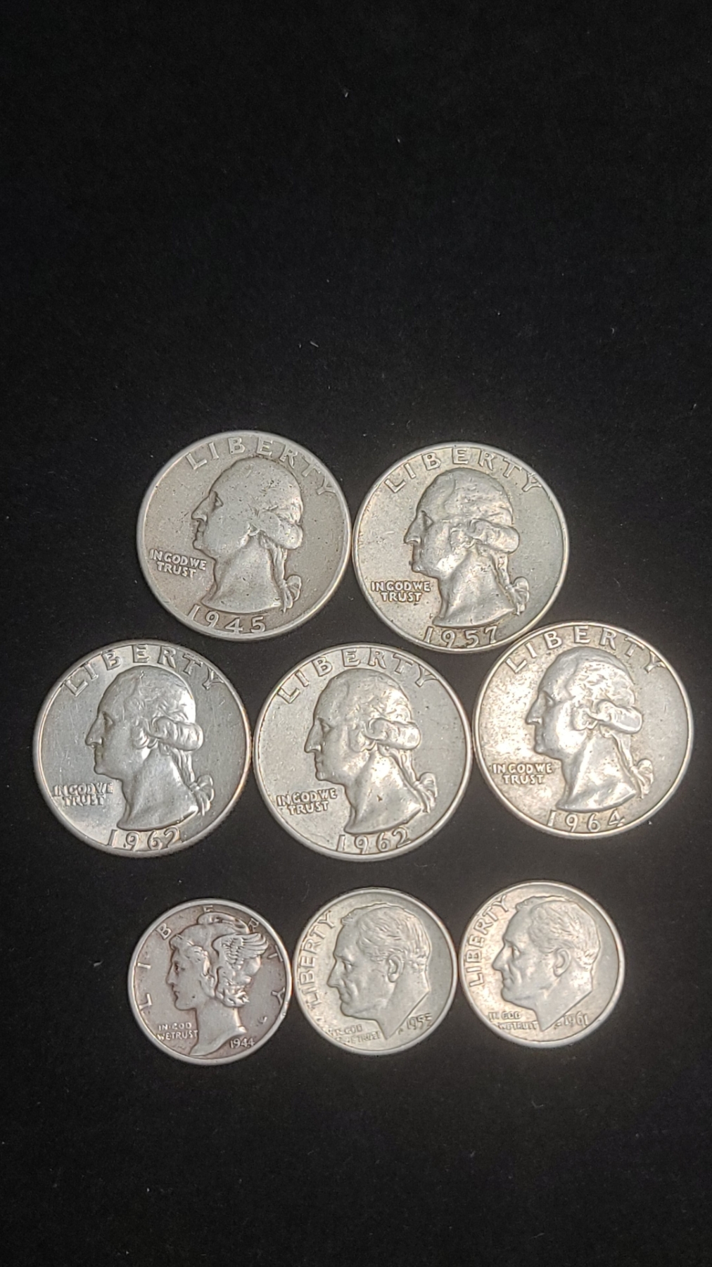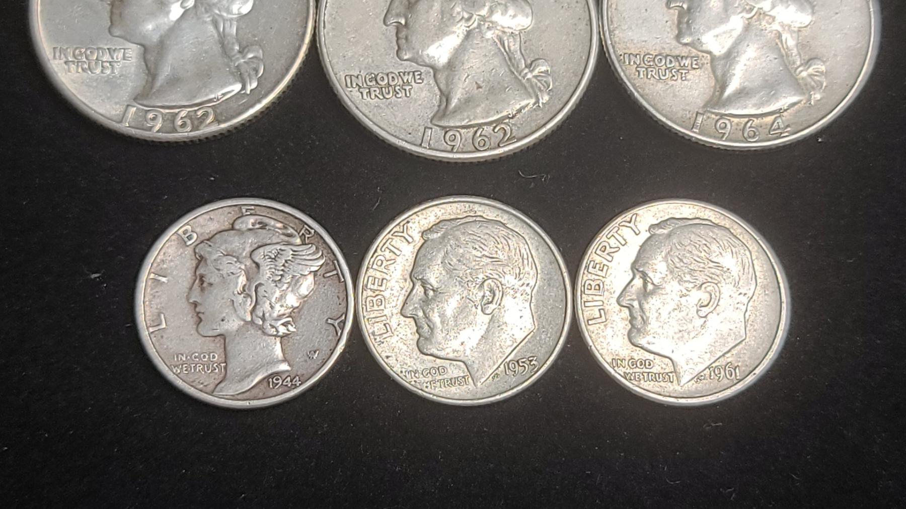 Assorted Years/Mint Marks 90% Silver Washington Quarters & Mercury/Roosevelt 90% Silver Dimes