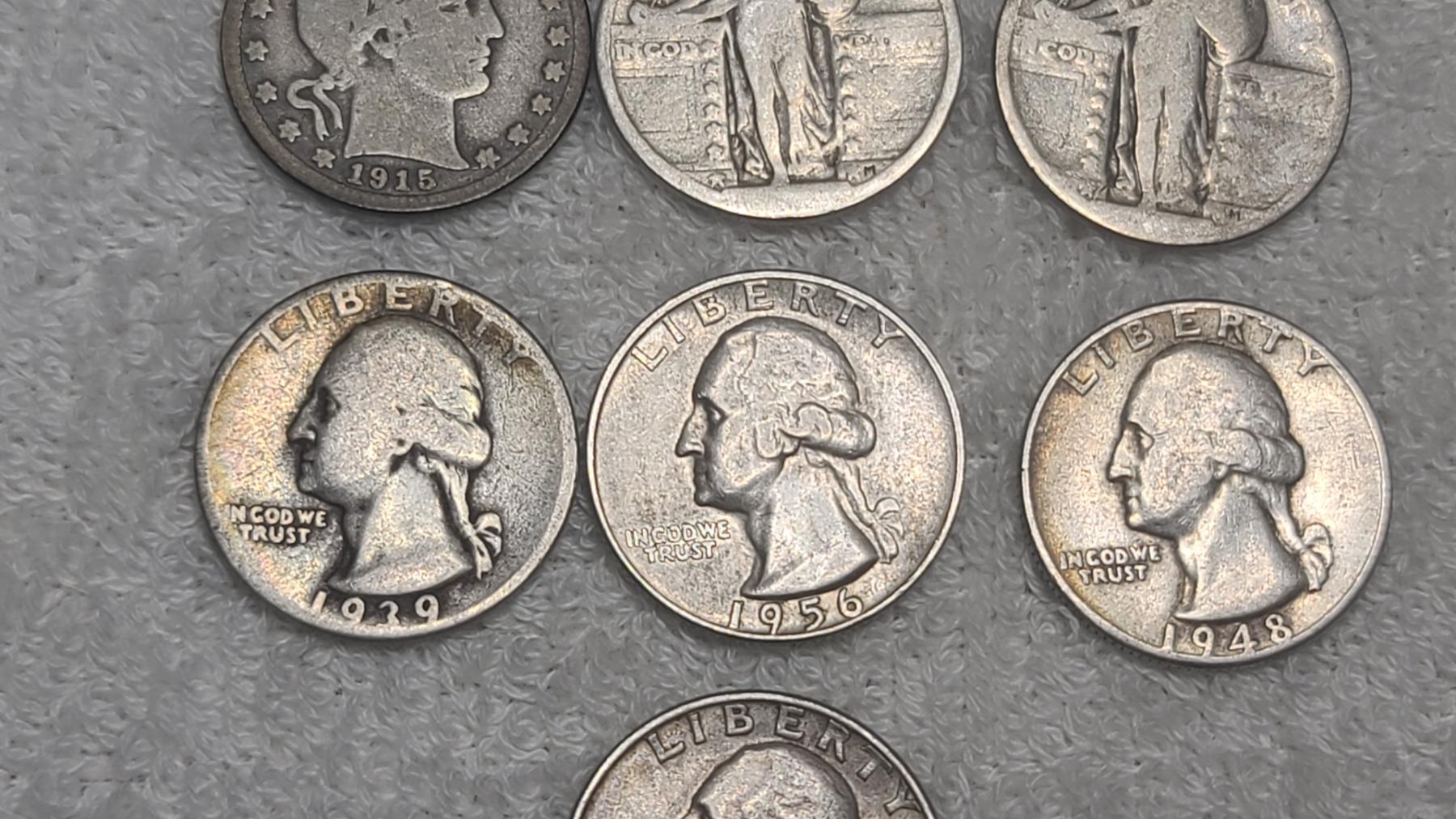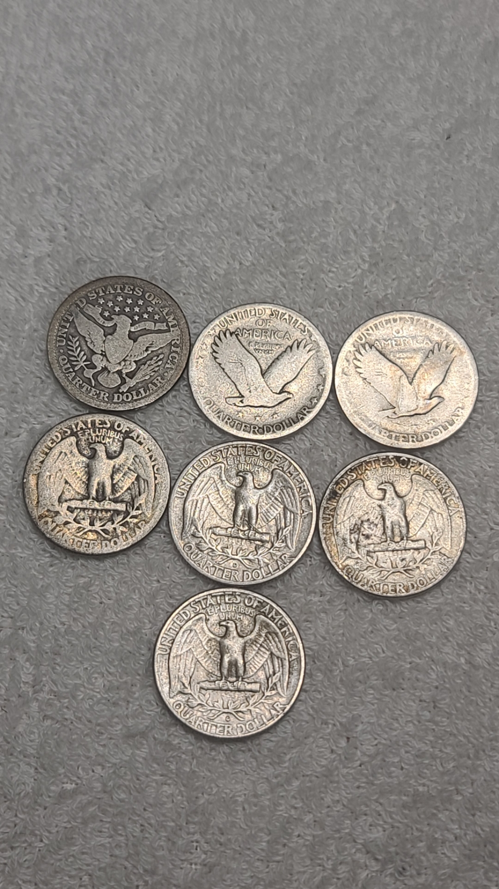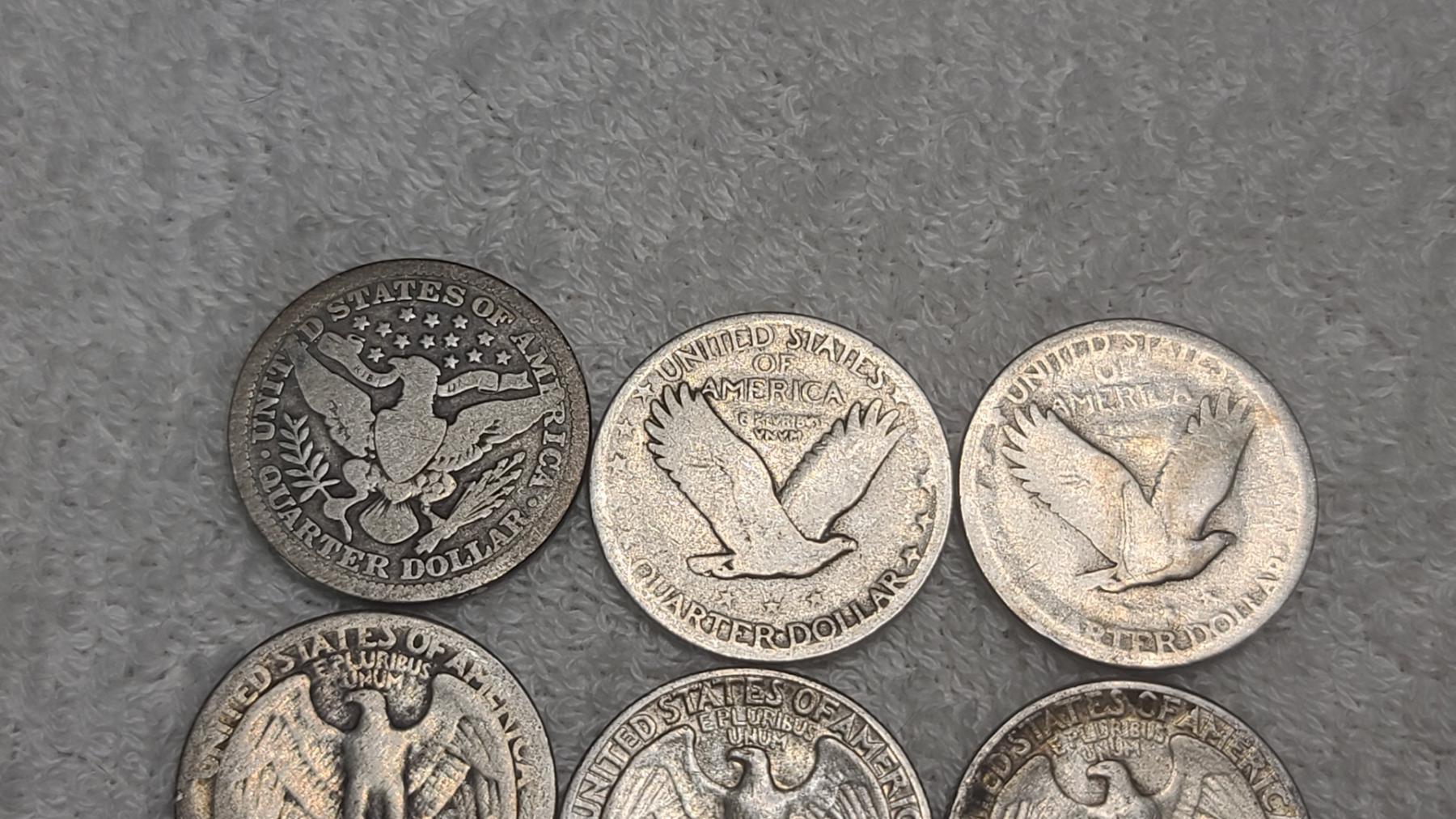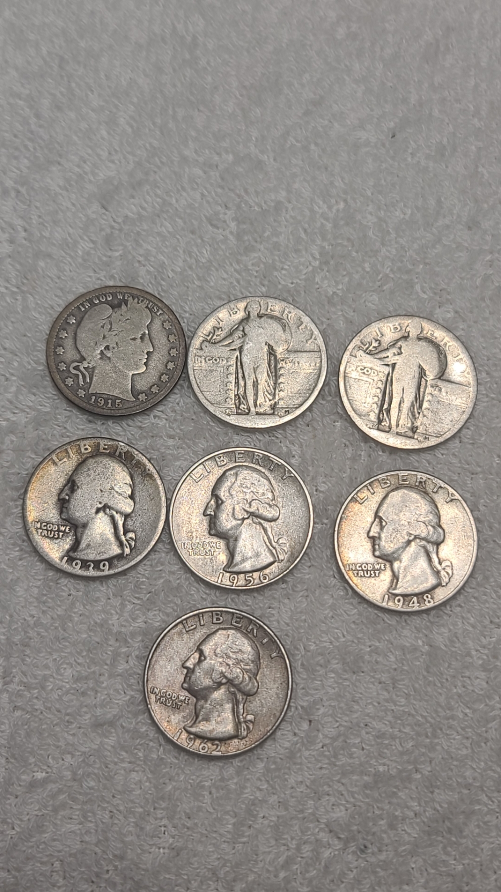 Assorted Years & Mint Marks Barber, Standing Liberty & Washington 90% Silver Quarters - Face Value $1.75
