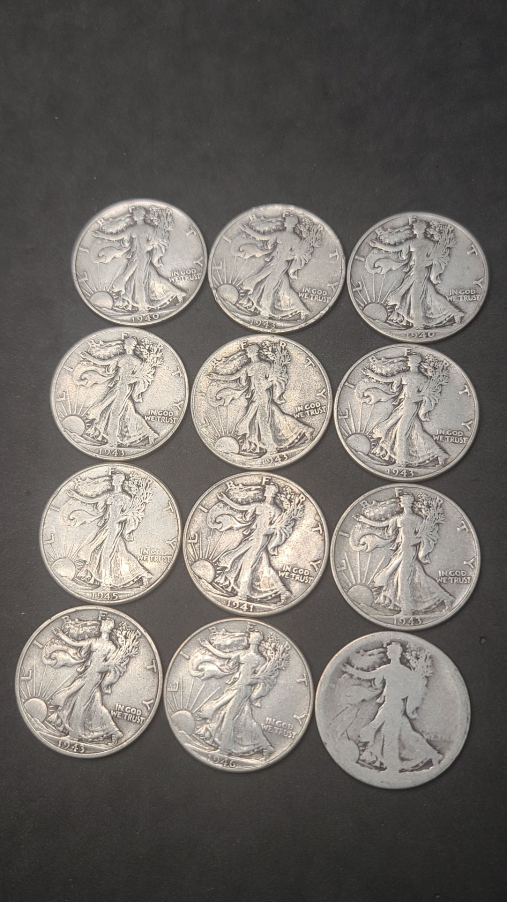 Assorted Years & Mint Marks Walking Liberty 90% Silver Half Dollars - Face Value: $6.00