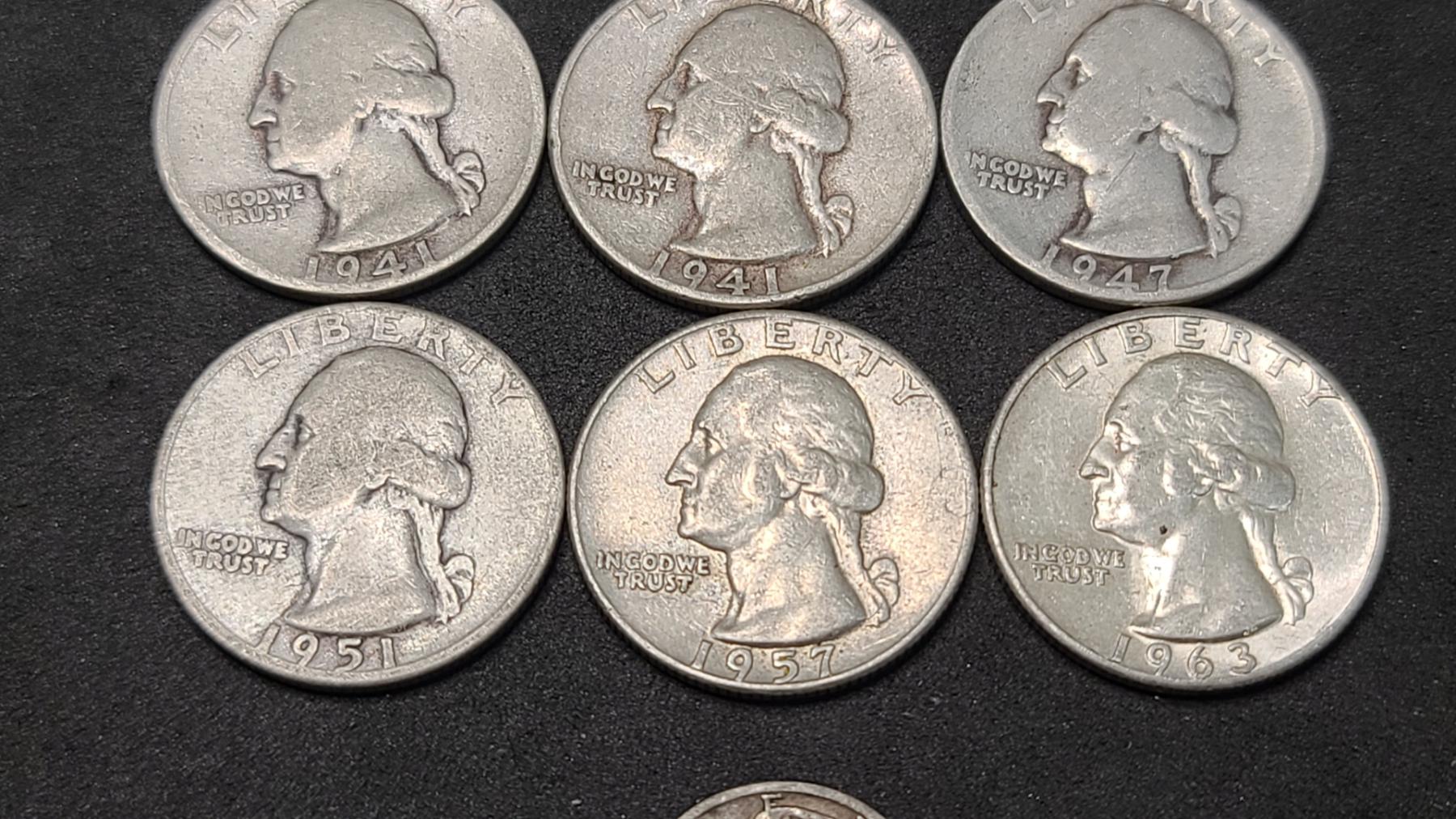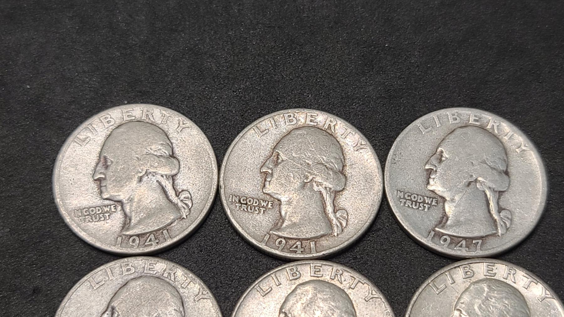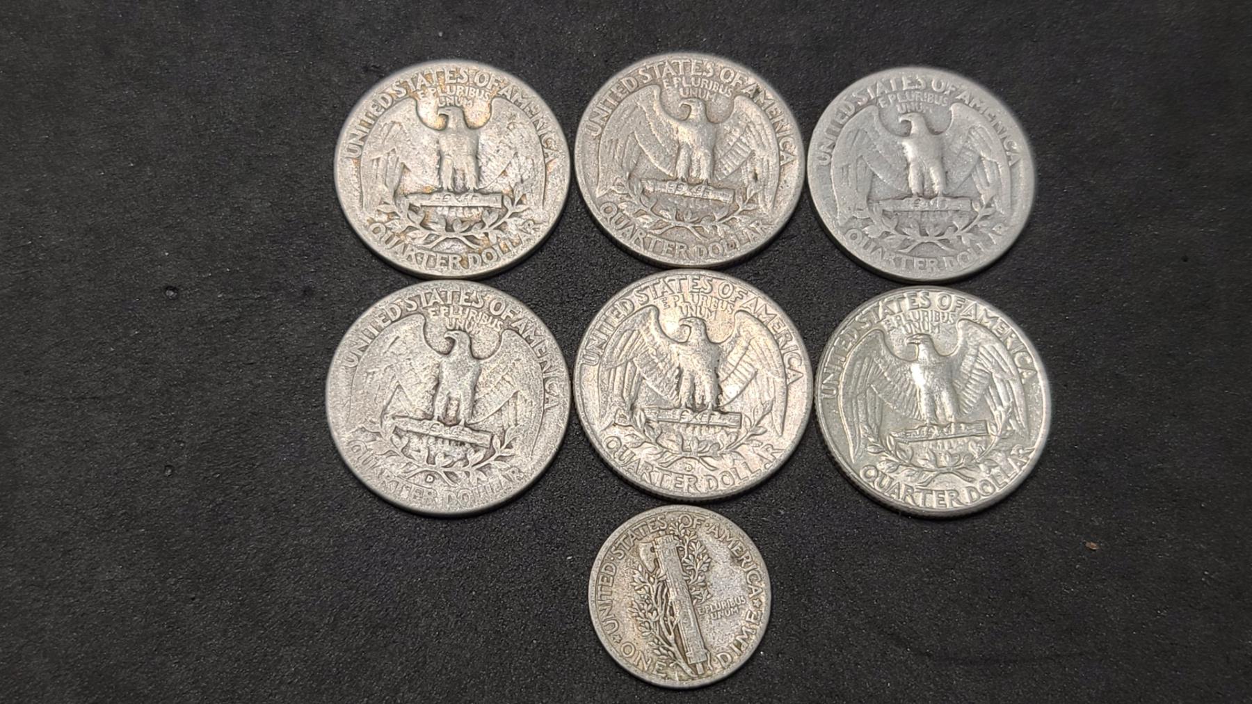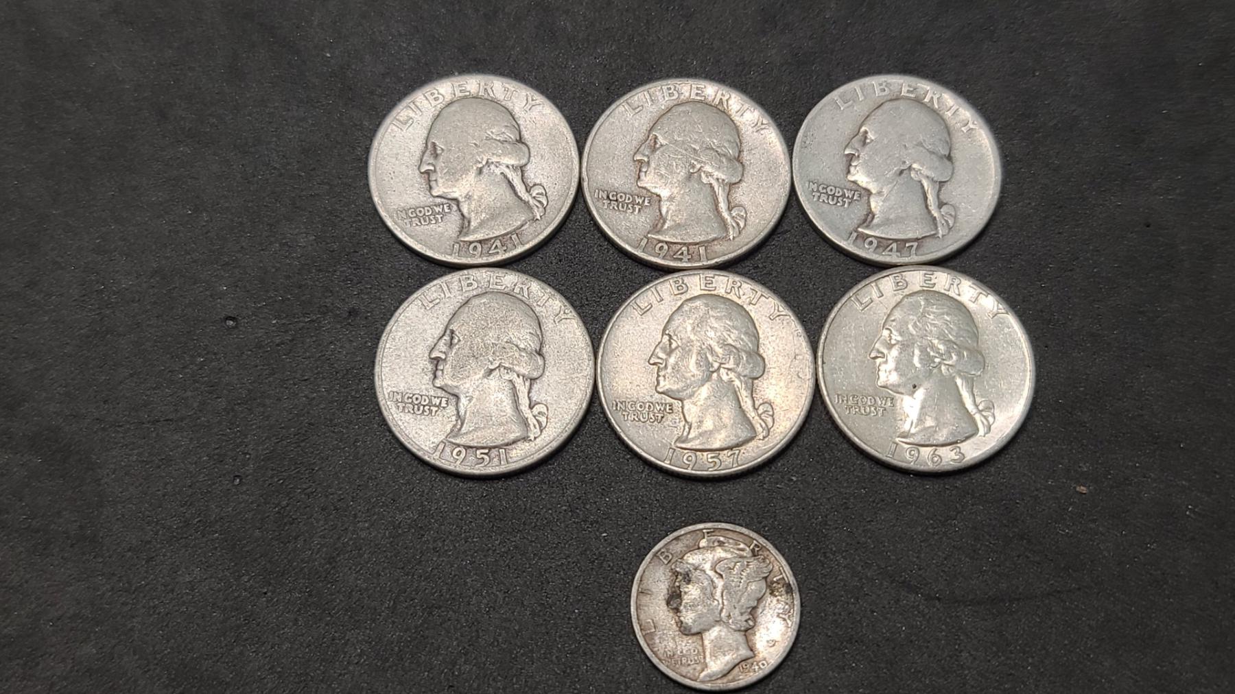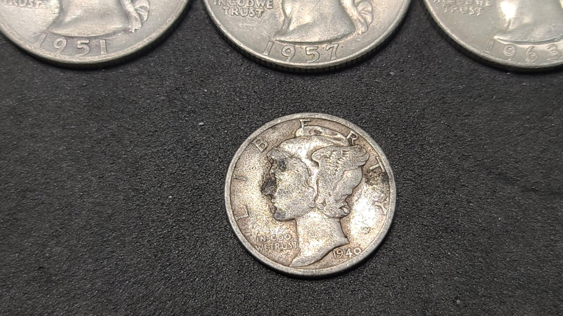 Assorted Years & Mint Marks Washington Head 90% Silver Quarters & 1940 90% Silver Mercury Dime - Face Value: $1.60