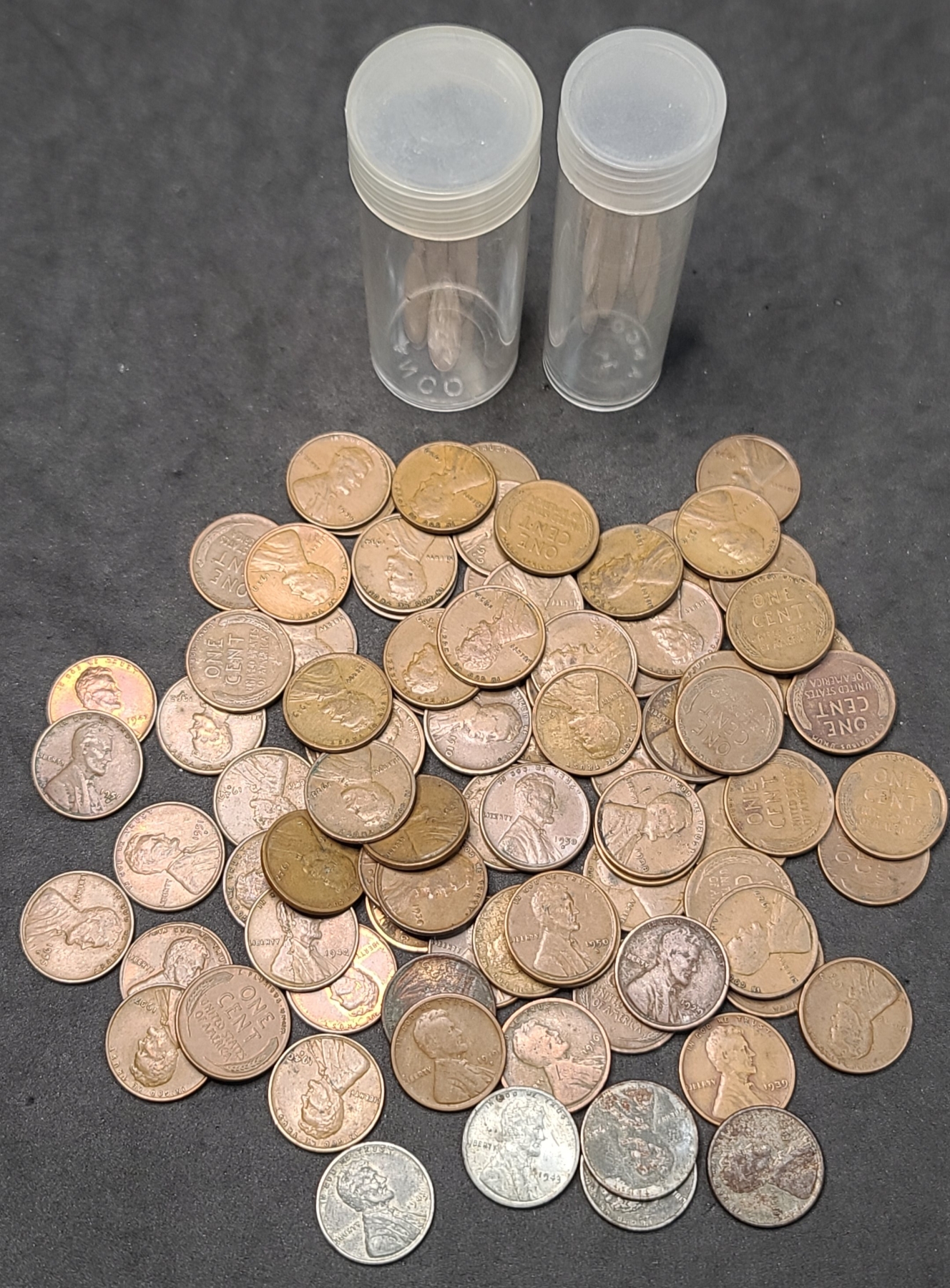 Assorted Years/Mint Marks Wheat Cents With Coin Tubes - Face Value: $0.87