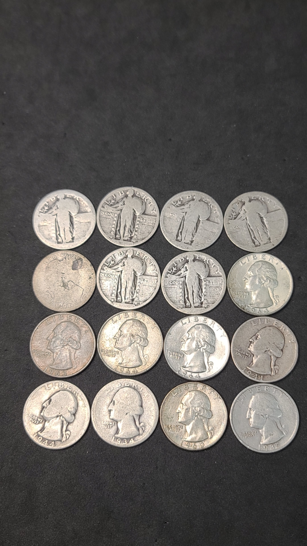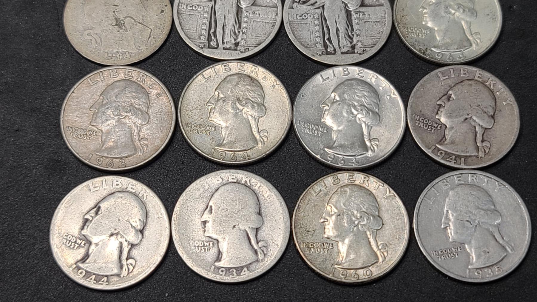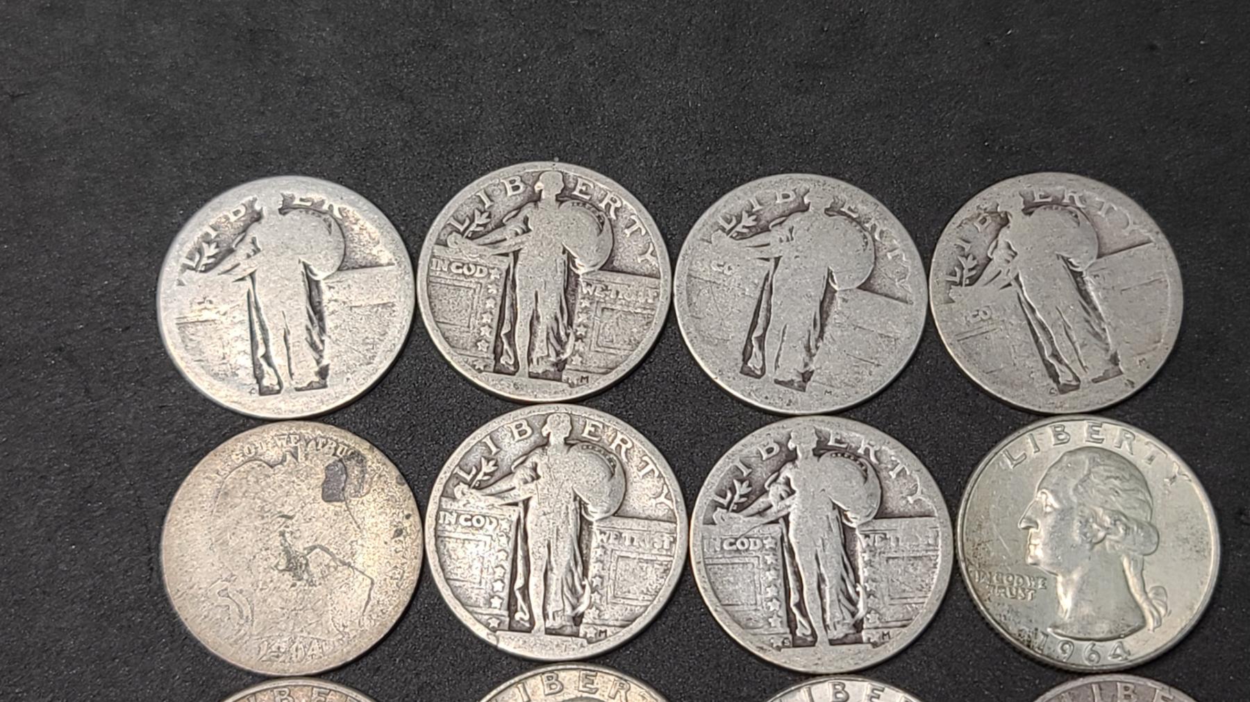 Assorted Years/Mints 90% Silver Barber, Standing Liberty & Washington Quarters - Face Value: $4.00