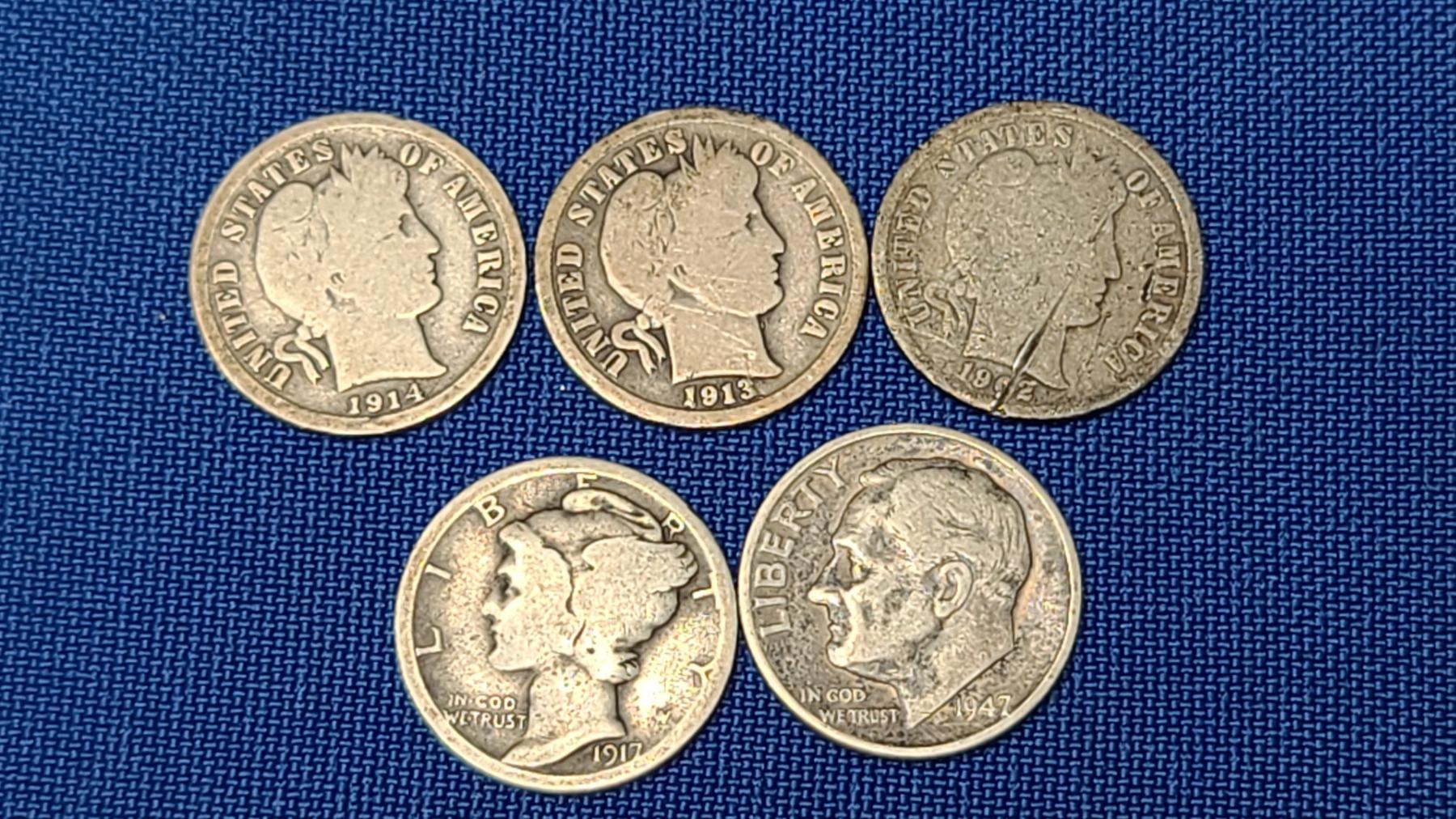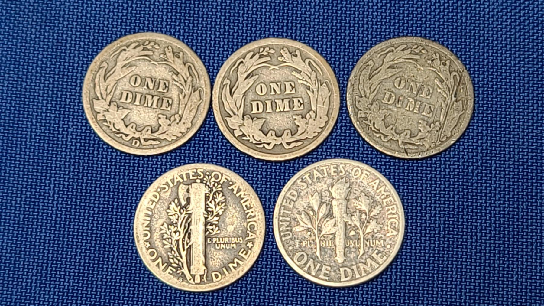 Assorted Years Silver Barber Dimes, Mercury Head Dime & Roosevelt Dimes - Face Value: $0.50